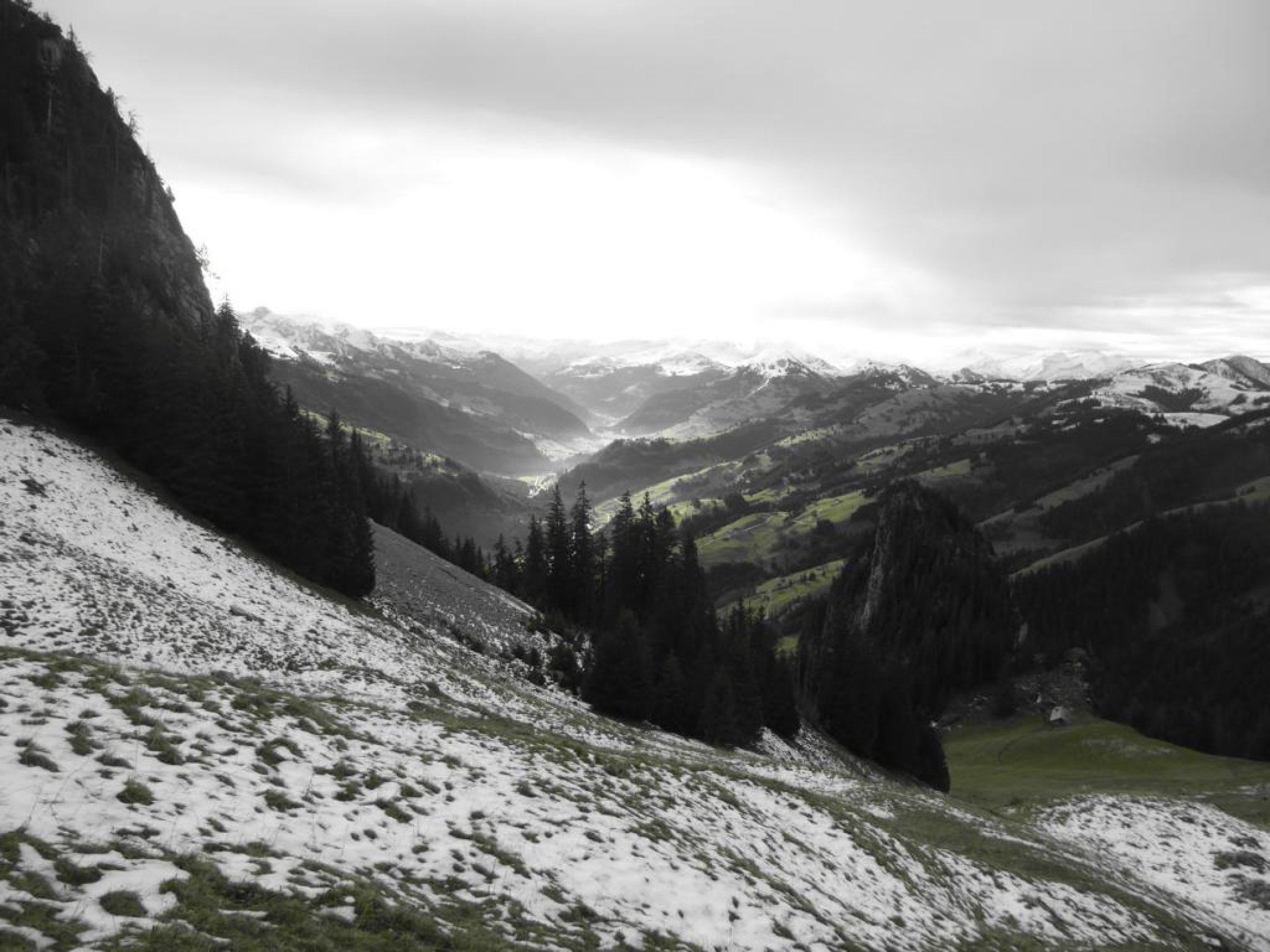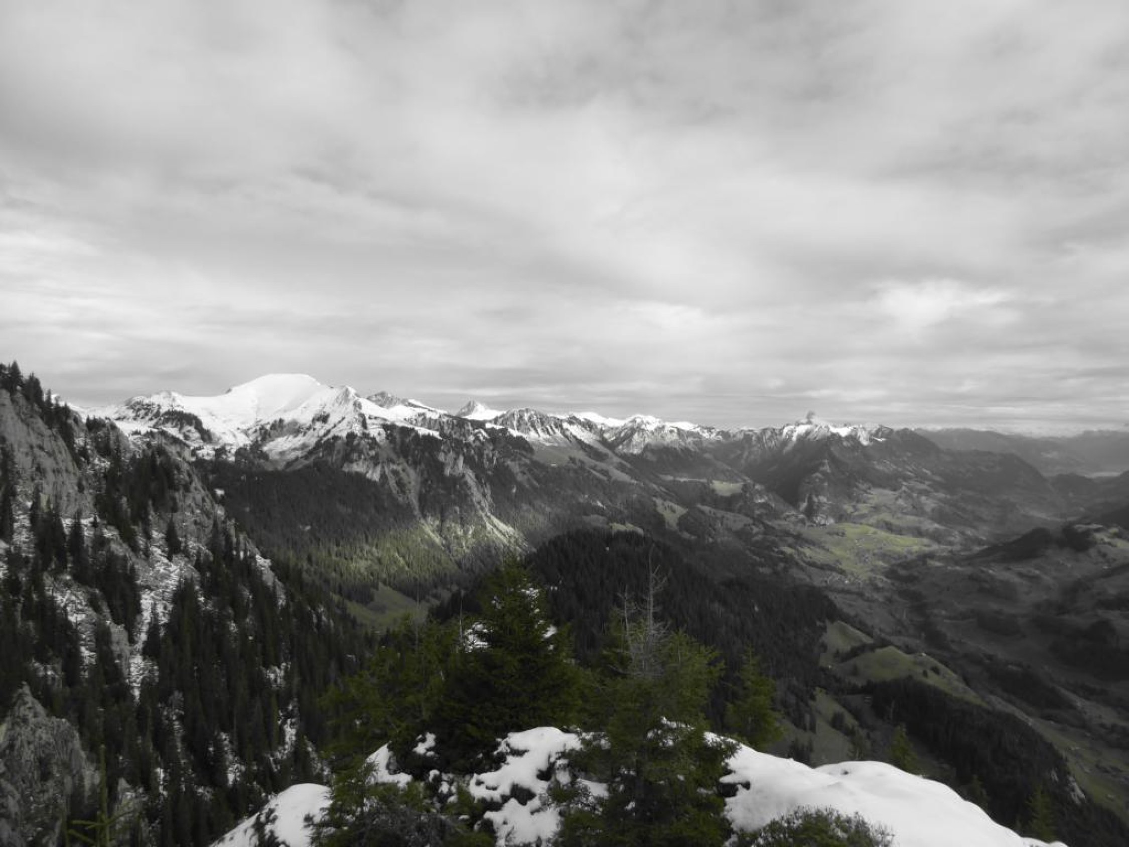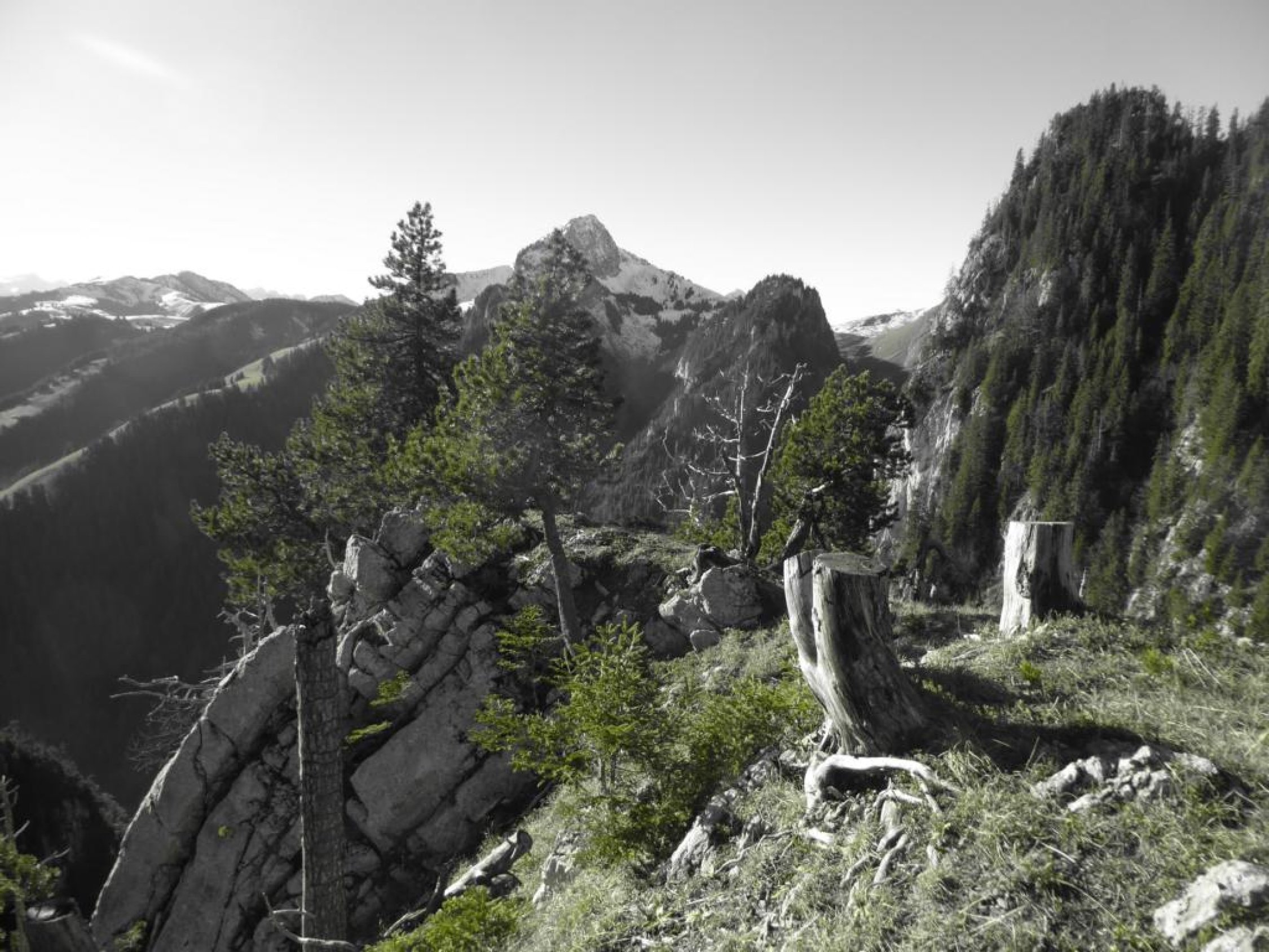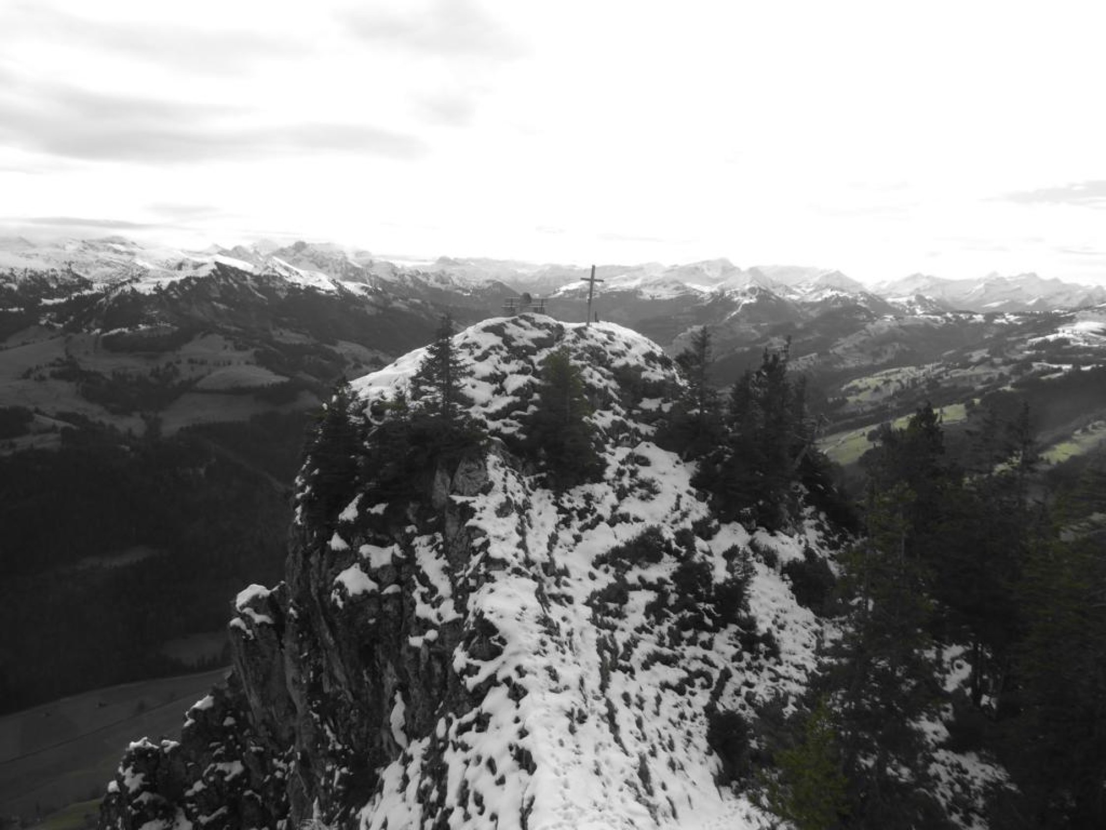 Schnee ab ca. 1700 m, aber nur wenig und weich. Im Schlussaufstieg in den steileren und ausgesetzteren Passagen sowie unter Bäumen kein Schnee. Erst kurz vor dem Gipfel etwas mehr. Auf den Nordgipfel dann 10-15cm, guter Trittschnee, alles noch ganz angenehm zu gehen.