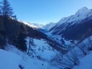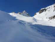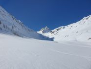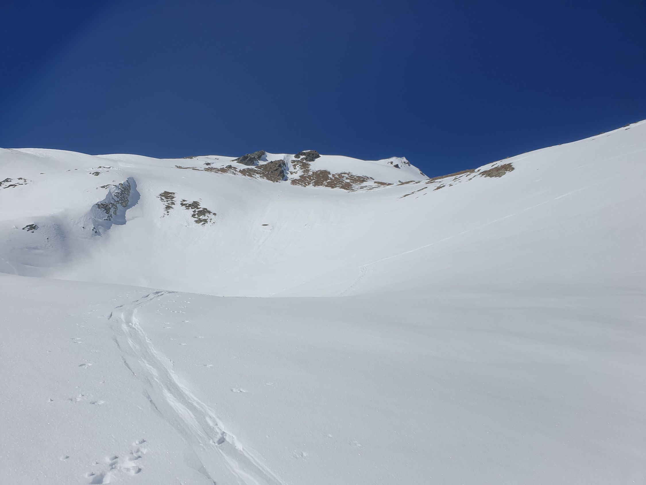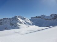 Anschliessend zuerst flach und etwas eintönig hinein auf tragendem Deckel in dem schattigen Faldumgrundtal. Zuletzt auf Sulz und Pulver über Mulden einfach mit Ski zum Loicherspitza.