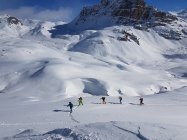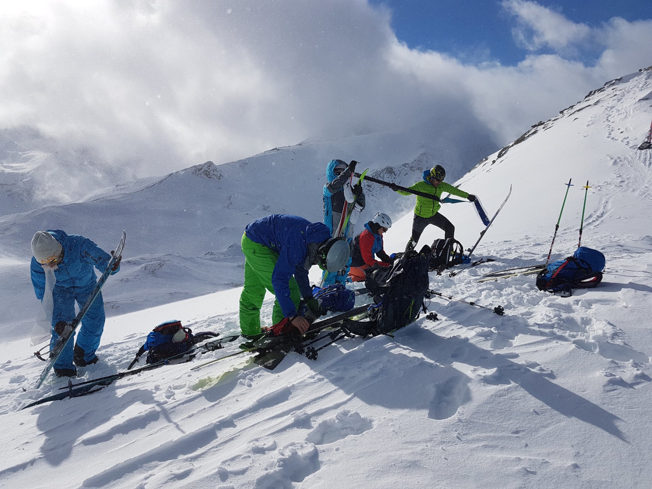 Beim Aufstieg gute Unterlage, bei Abfahrt Schneeart wechselnd zwischen Pulver, Bruchharsch und Triebschnee. Sehr spassig. Ein Kollege leider mit Steinkontakt.
