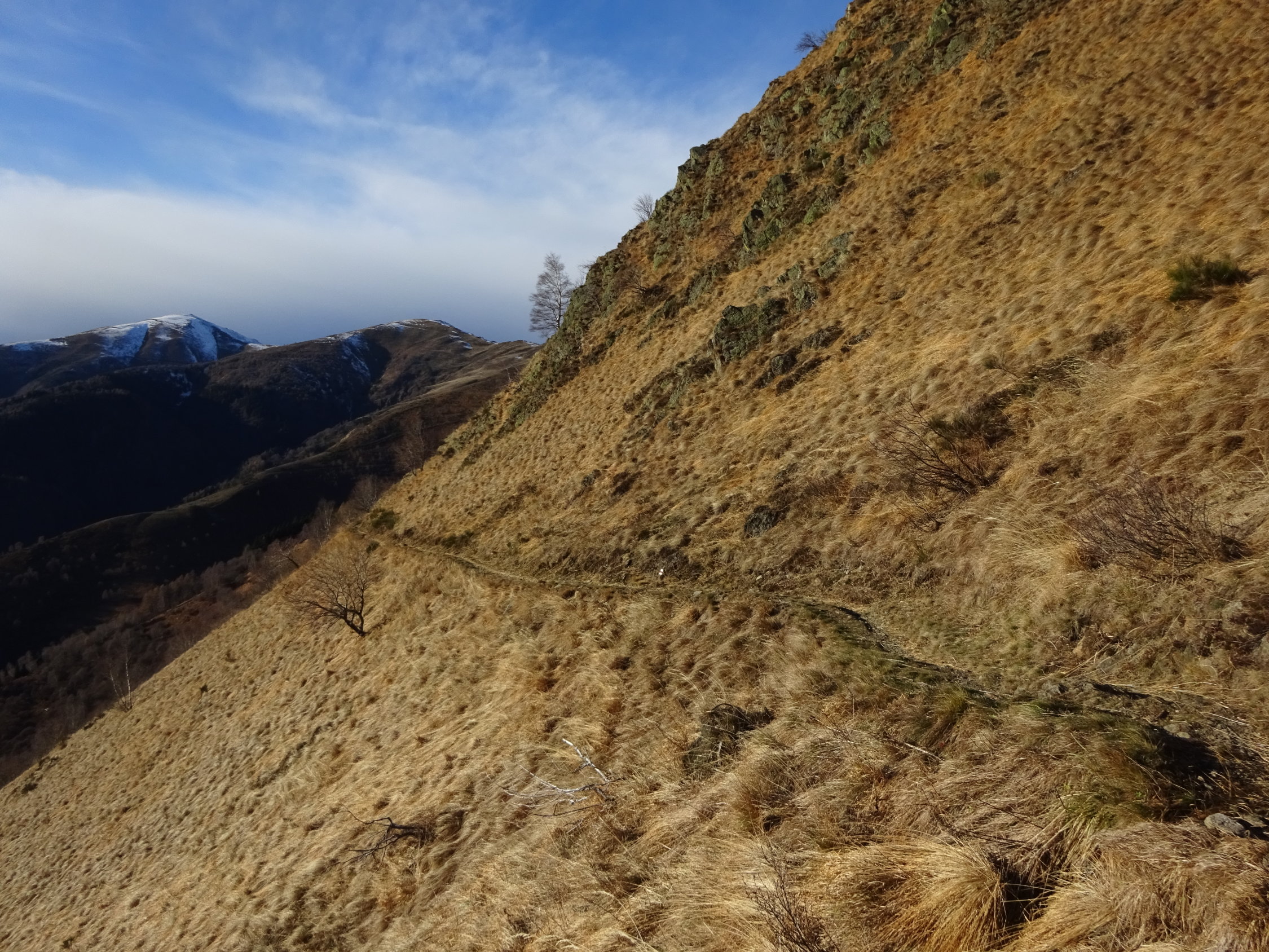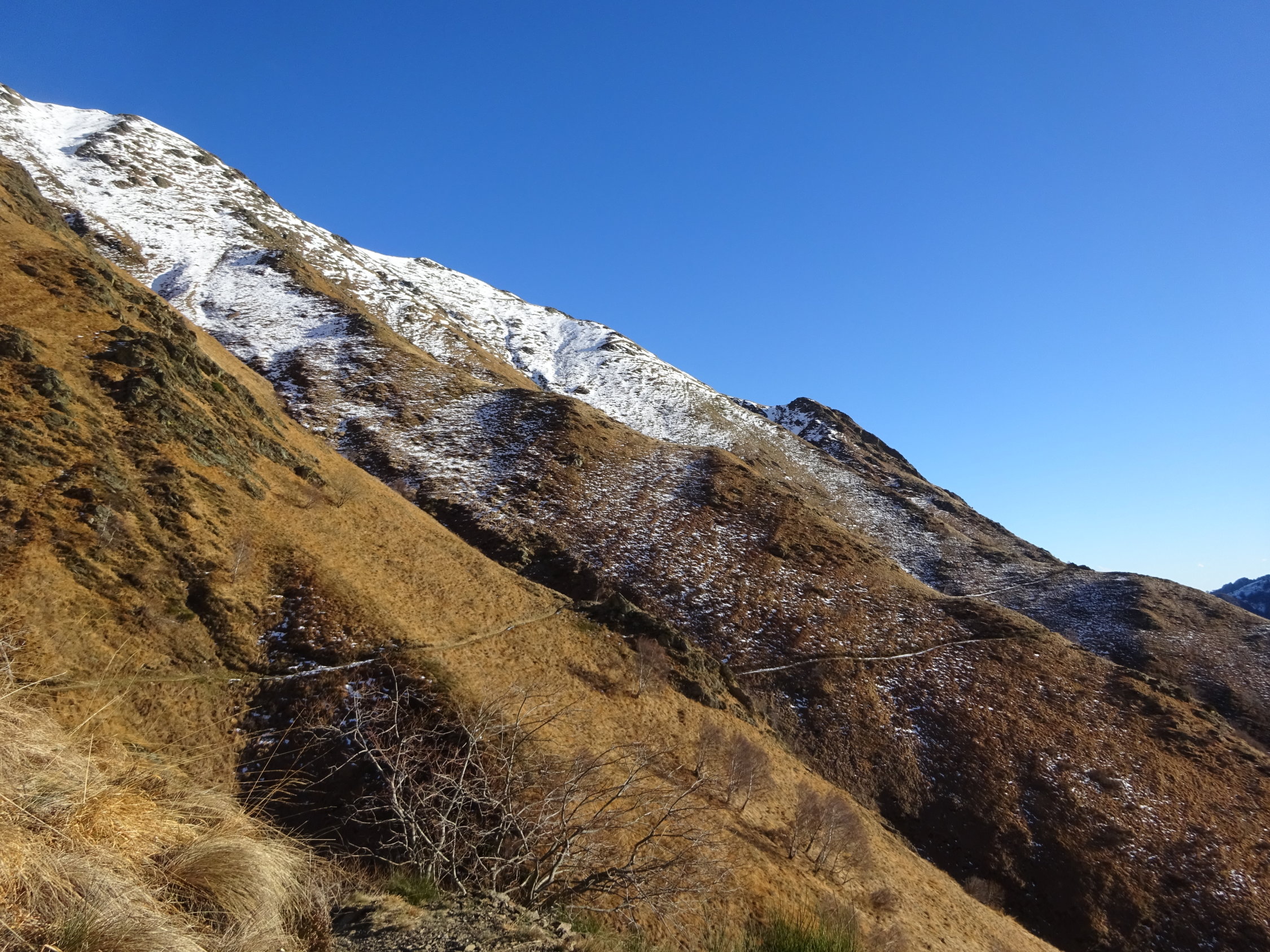 Sehr gute Verhältnisse für den Dezember. Kaum Schnee, erst in den Passagen zwischen 1500 und 1600m etwas Altschnee. Auf dem Singletrail teilweise etwas feucht, aber meist gut fahrbar. Vereistes Strässchen vom Passo di San Lucio bis leicht unter 1400m, da im Schatten. Viel Laub und Steinblöcke sind dort ebenfalls vorhanden.