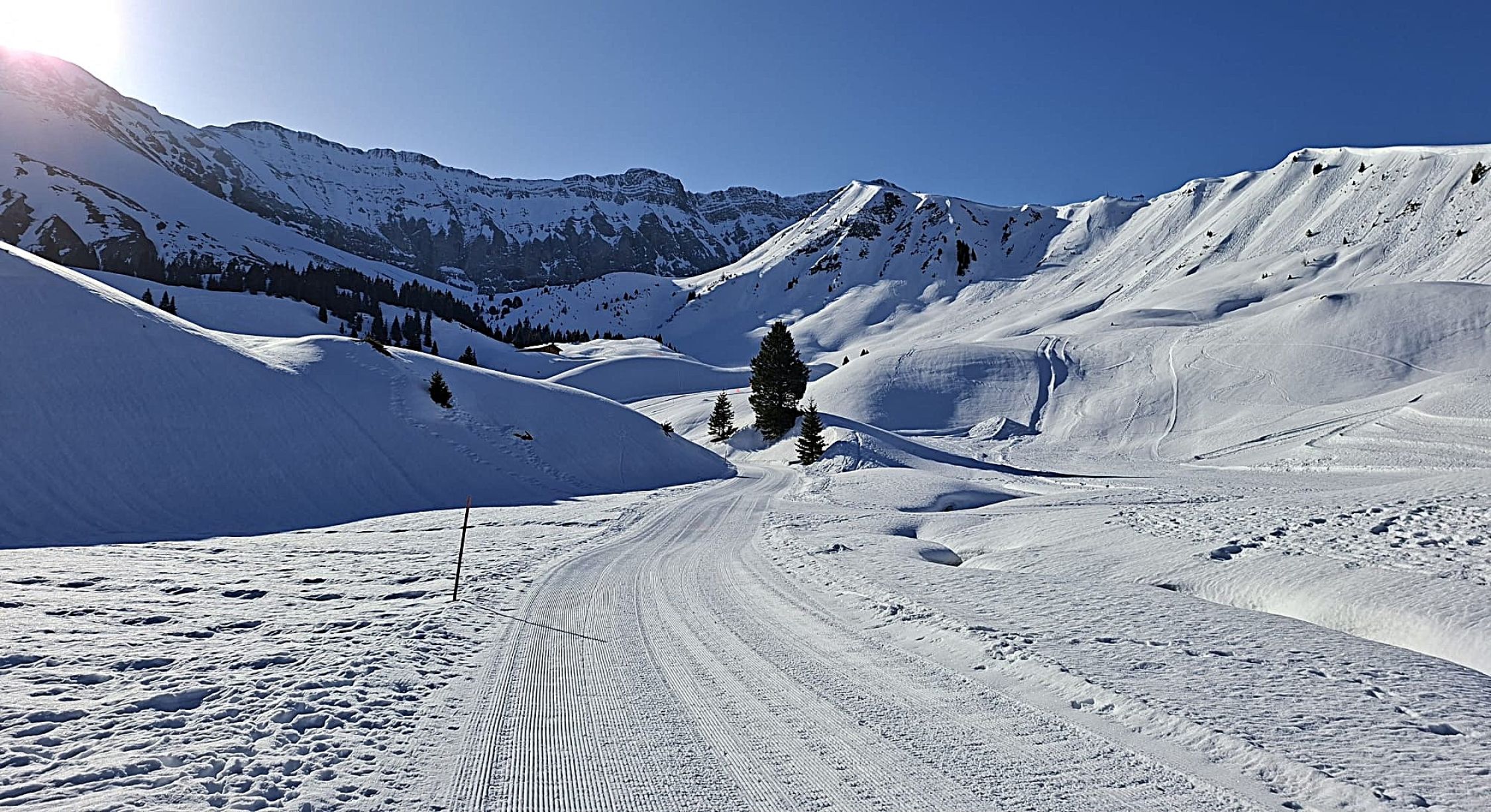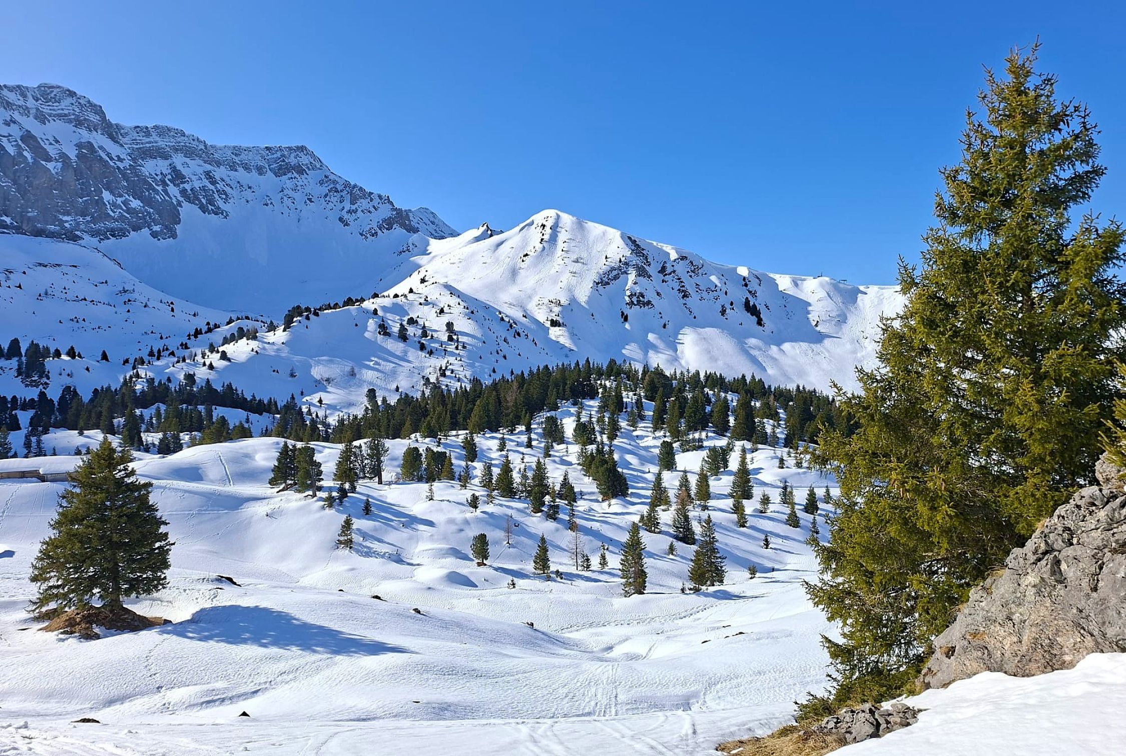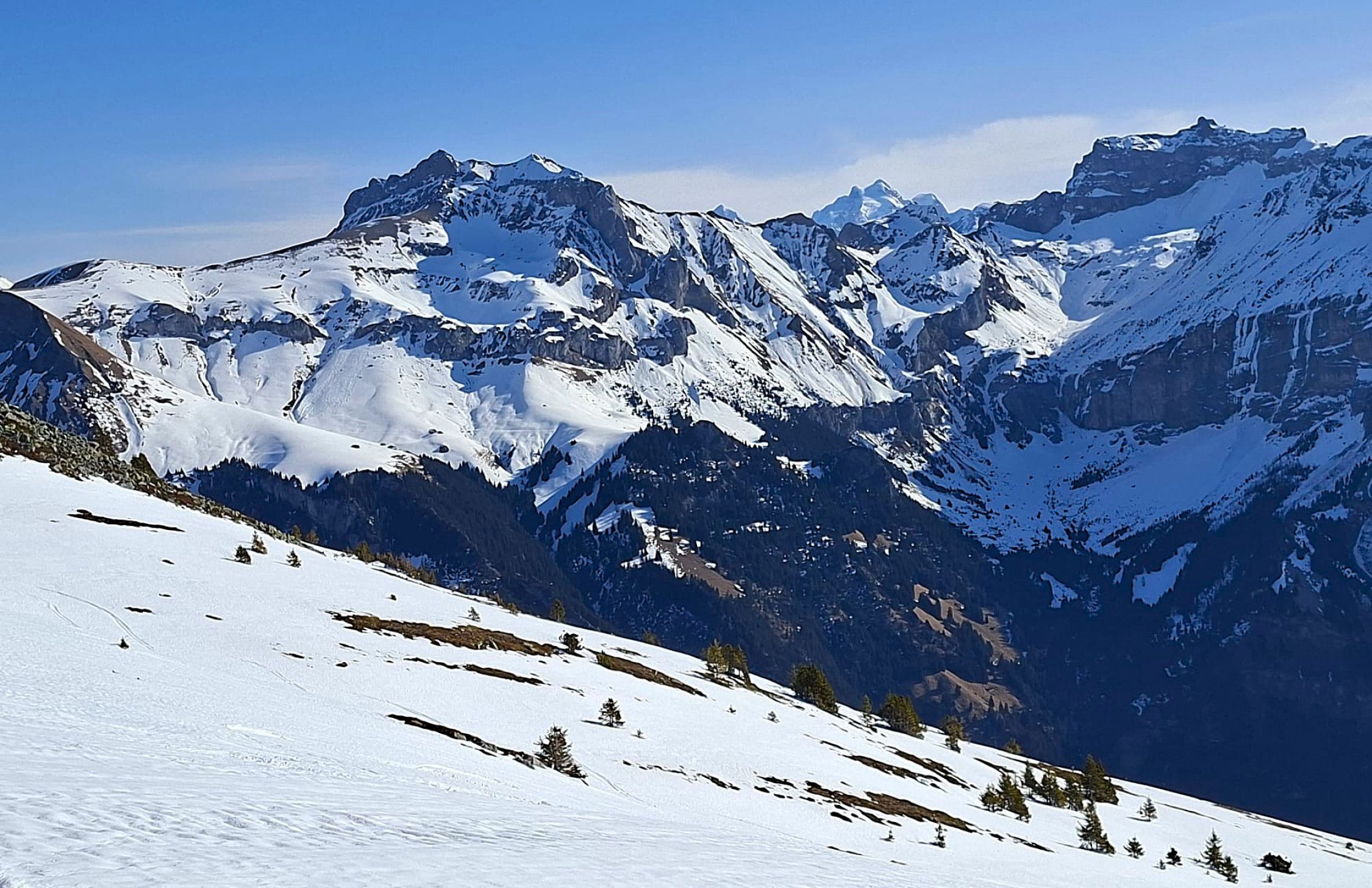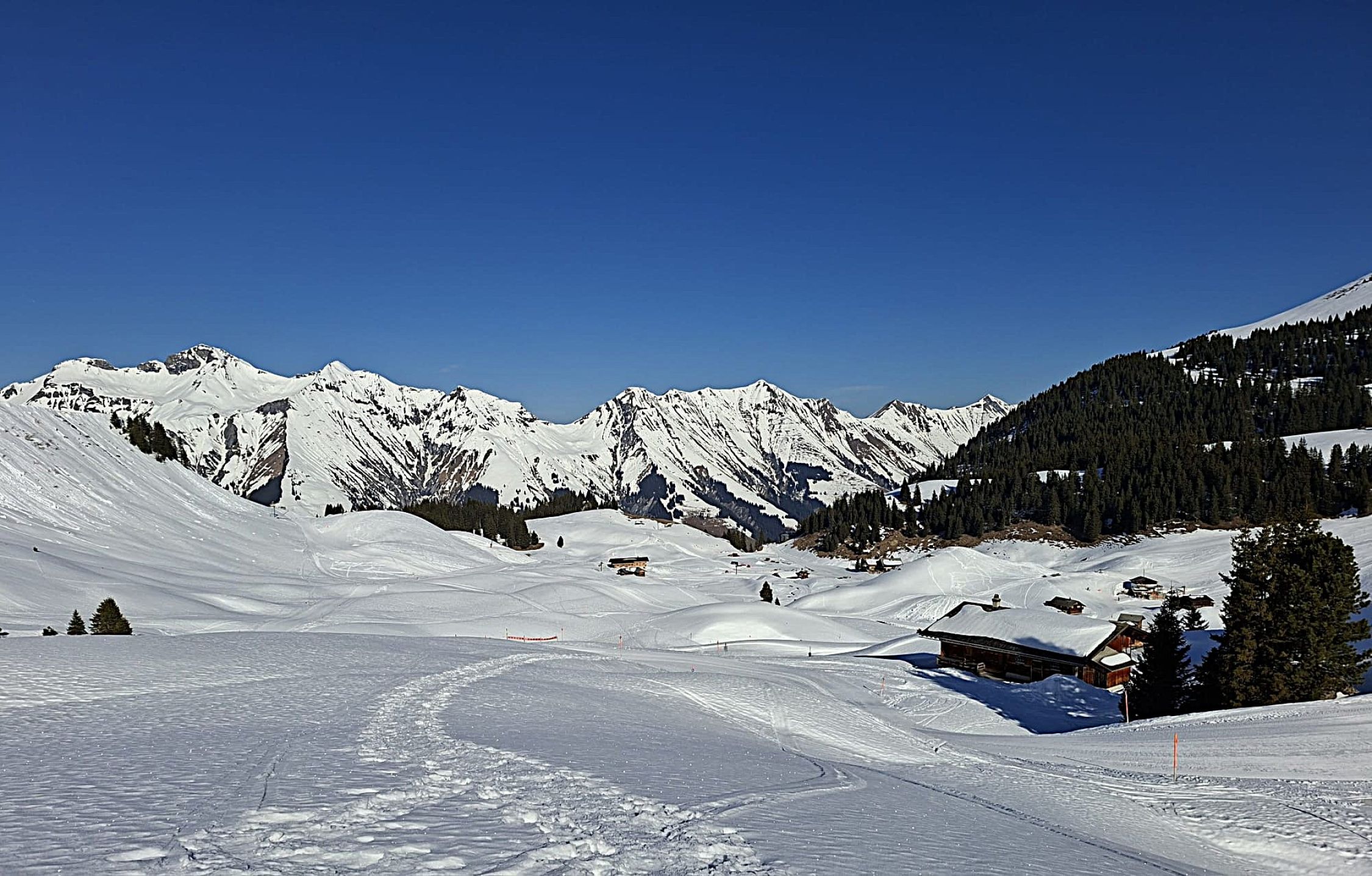 ab Elsigenalp Bergstation https://www.globaltrail.ch/de/schneeschuhwanderung/elsighorn_trail.html