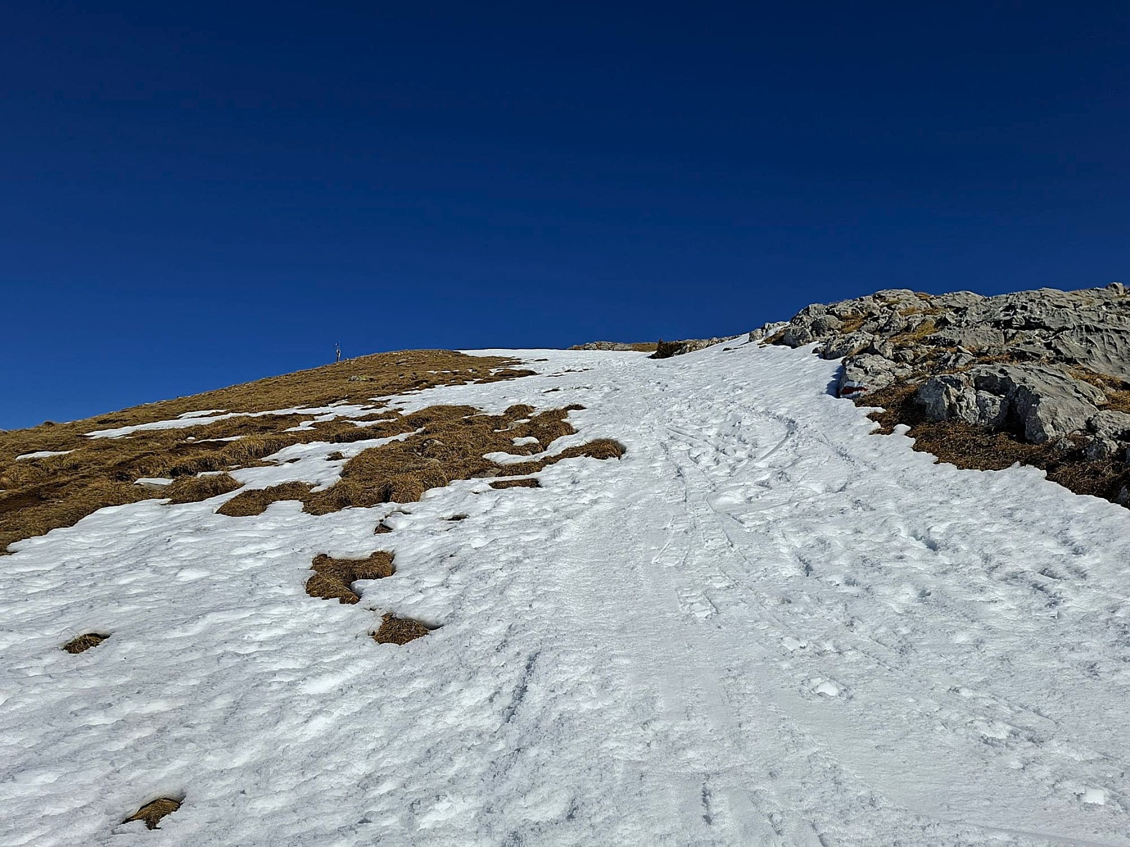 perfekter Wintertag. Am Morgen kalt. Der Trail und die Pisten hart. Dann zunehmend mild. Die einstündige Gipfelrast angenehm inkl. prächtiger Aussicht. Landschaftlich empfehlenswerter Trail.