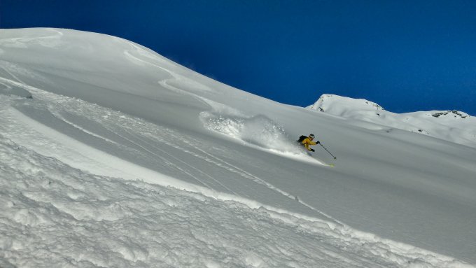 Es hat bereits überall viel Schnee, kein Steinkontakt. Super Pulver!!