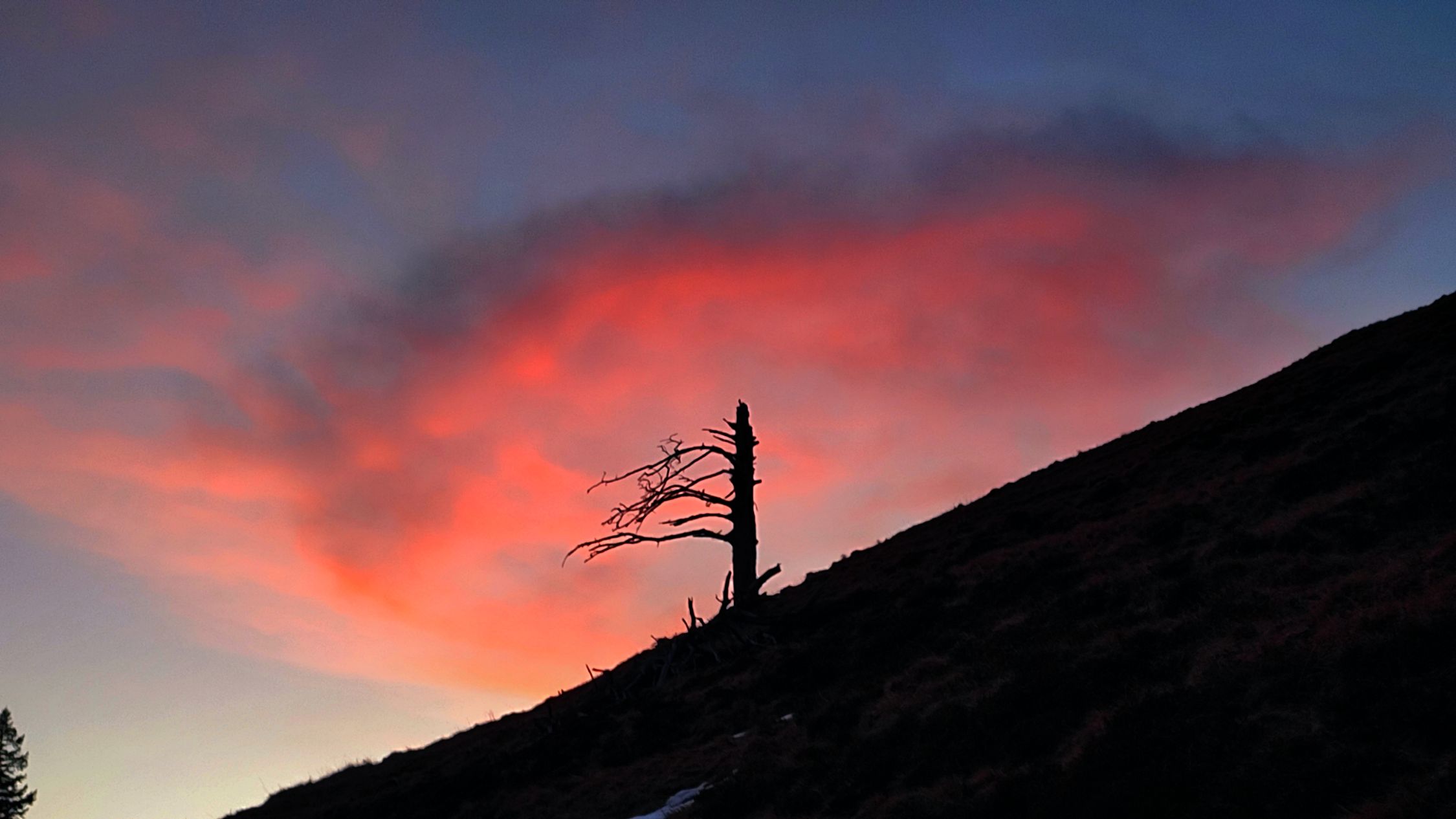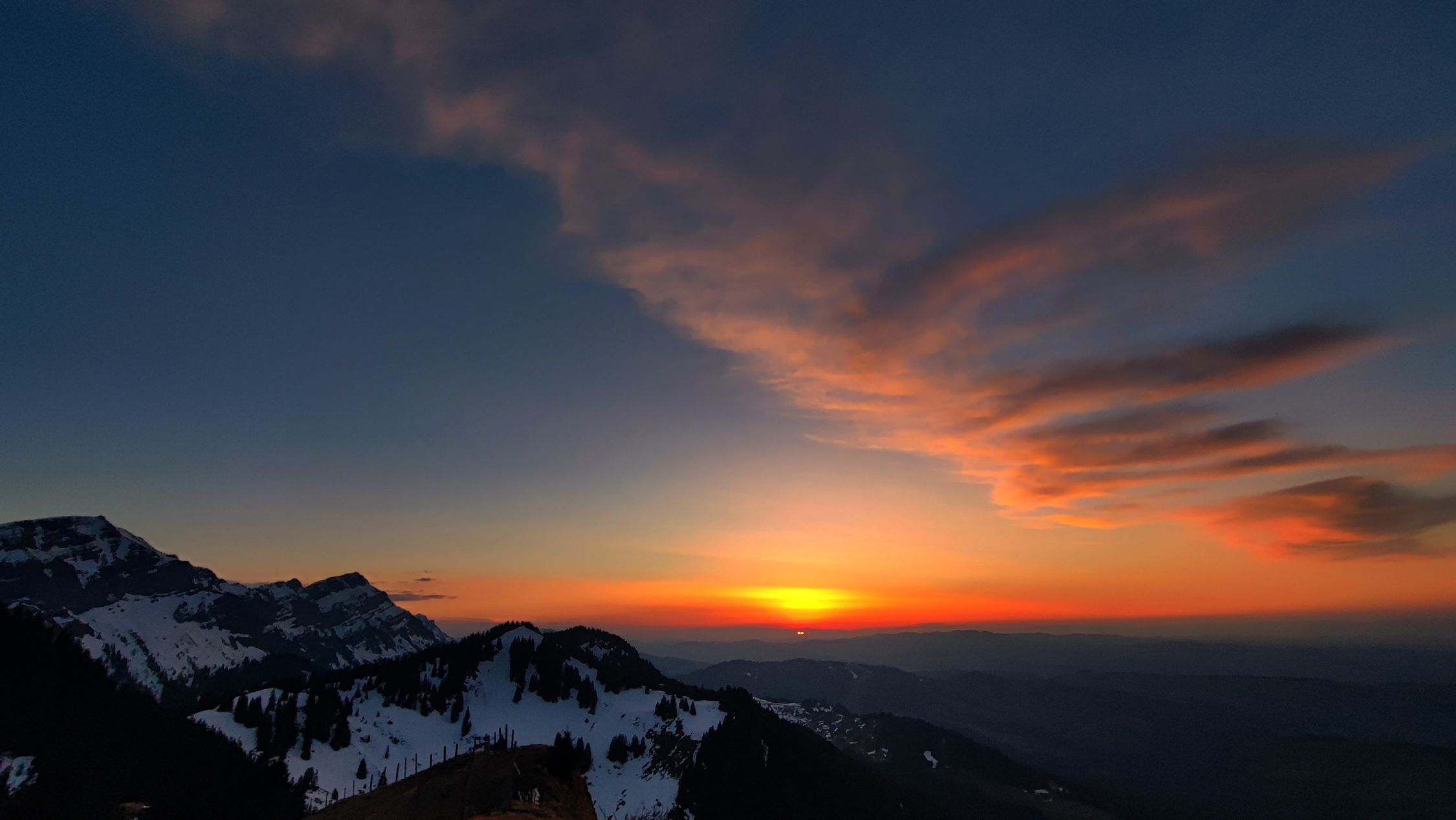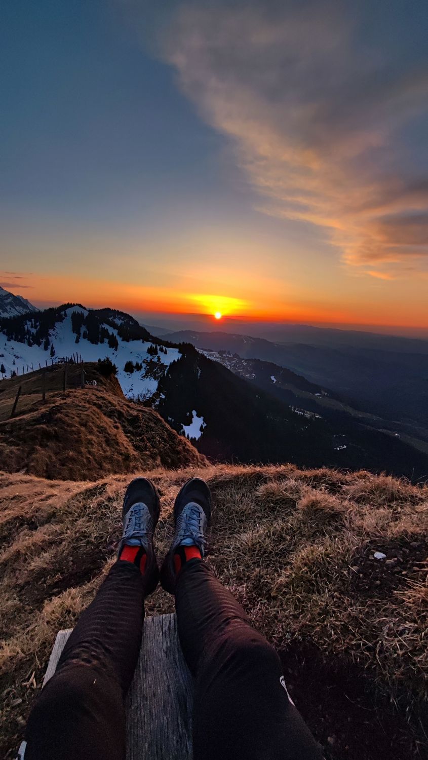 Ab unter Honegg Schnee, aber immer mal wieder schneefreie Flächen. Gipfelflanke praktisch aper. Grödel frühmorgens kônnen helfen, heute Abend nicht nötig.