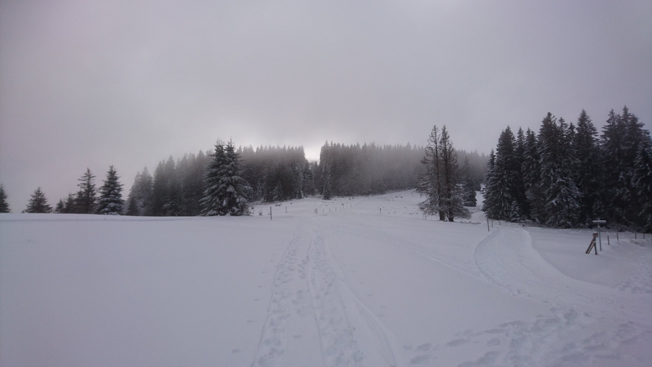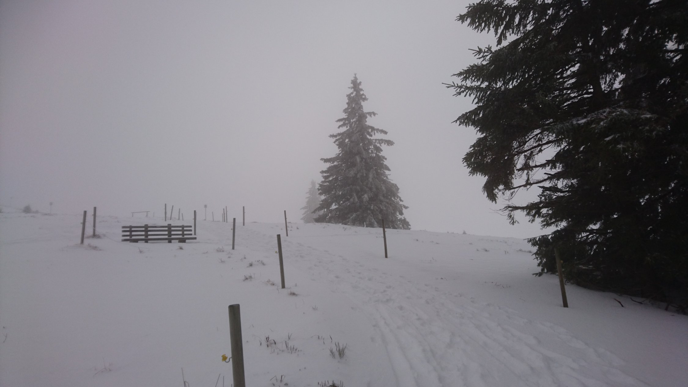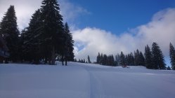 Ab Passhöhe genügend Schnee bis auf das Herzogenhorn. Von der Schwedenschanze auf dem Sommerweg auf den Gipfel, so kann für die Abfahrt das Gelände rekognosziert werden. Für die dünne Schneelage sehr gute Verhältnisse da die Temperatur konstant unter Null. Mit ein bisschen Vorsicht kein Feindkontakt.