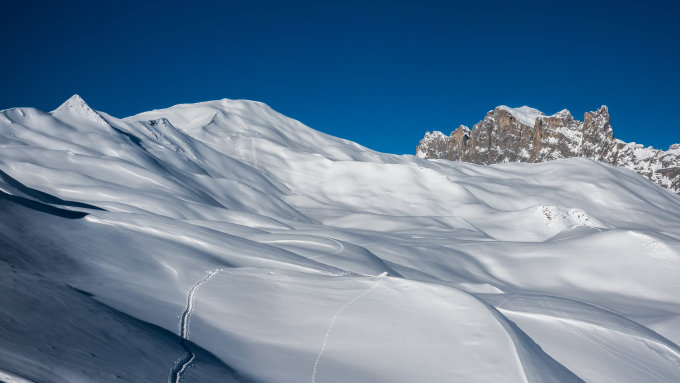 Start 10 Uhr beim letzten Parkplatz vor Partnun bei -12°. Wolkenlos und windstill. Ab Mittelsäss bis zum Gipfel zeitweise kalter Südwind, Schnee aber noch kaum windbearbeitet. Überall noch Traumpulver, nirgends Steine.