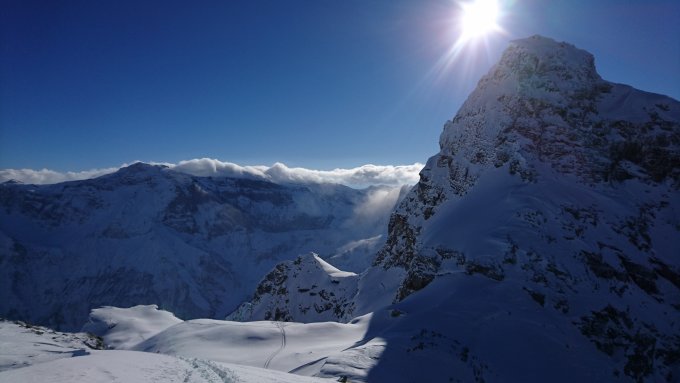 Genug Schnee, im Schatten pulvrig. Heute ziemlicher Föhn -> tlws Winddeckel. Südseitig morgen whs bitzli Bruchharsch. Trotz Kälte.