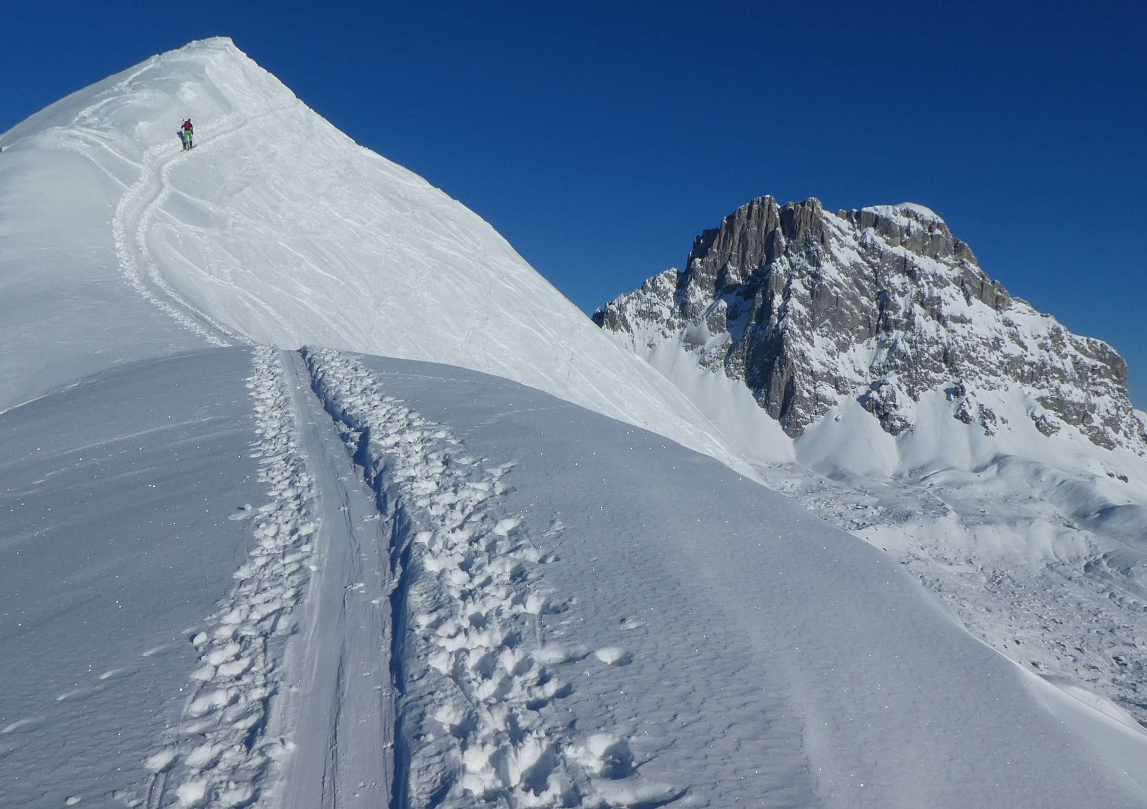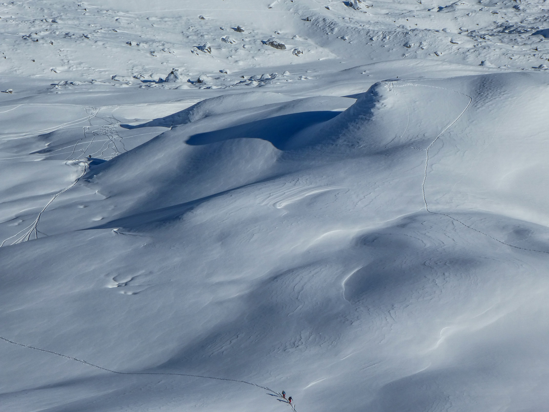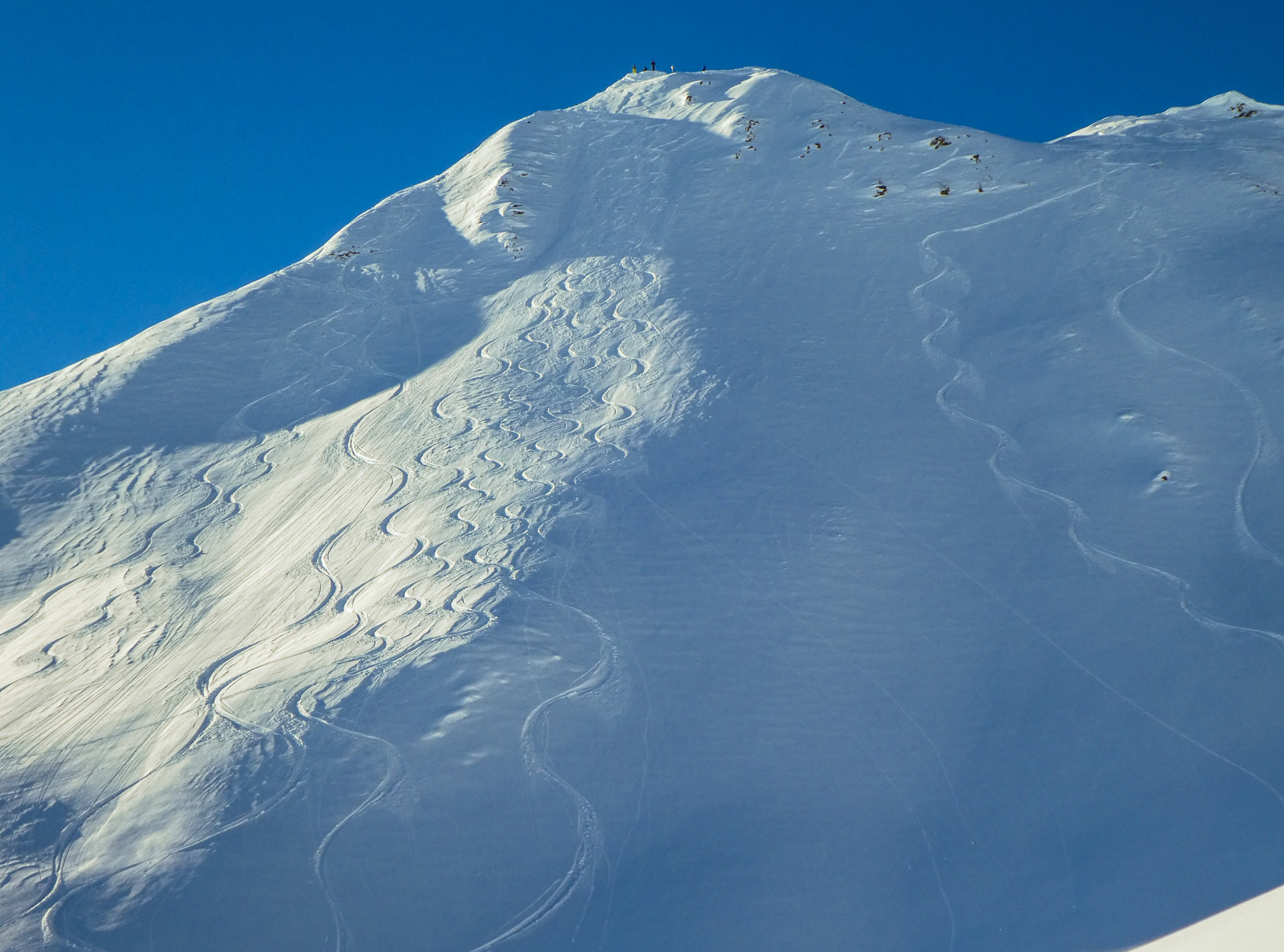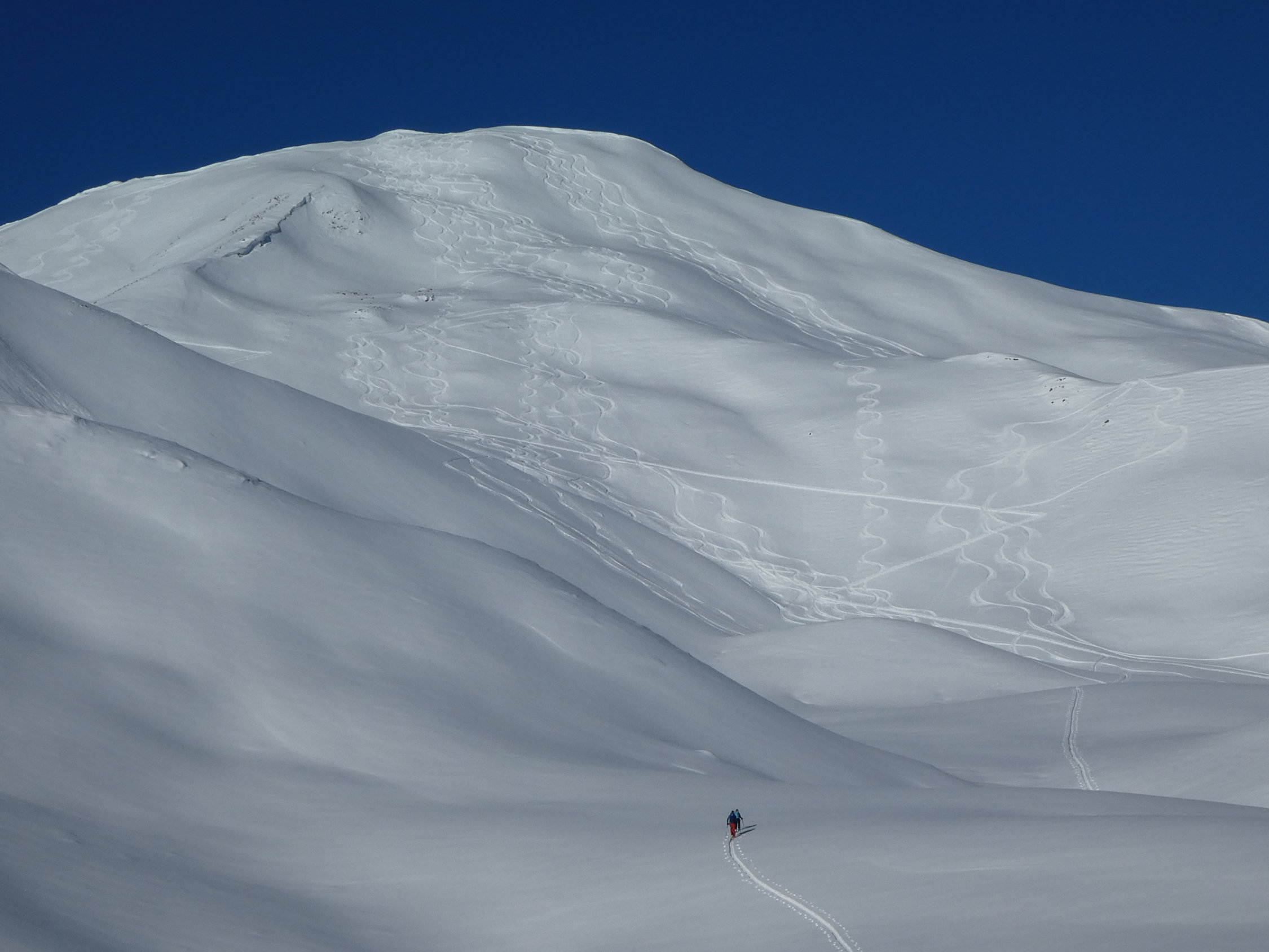 Steilhang direkt vom Gipfel abgefahren - beste Verhältnisse. Kein Steinkontakt auf der ganzen Abfahrt. Den Schafberg kann man gut anhängen (siehe Bilder).