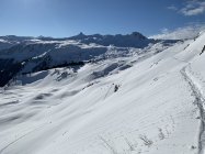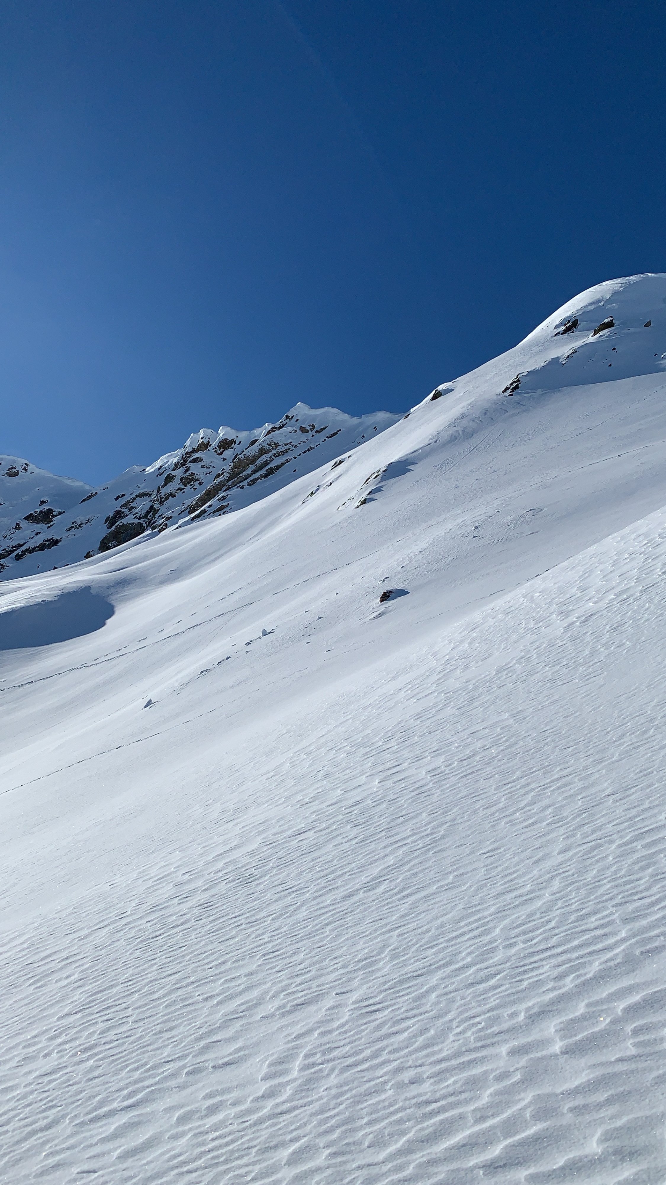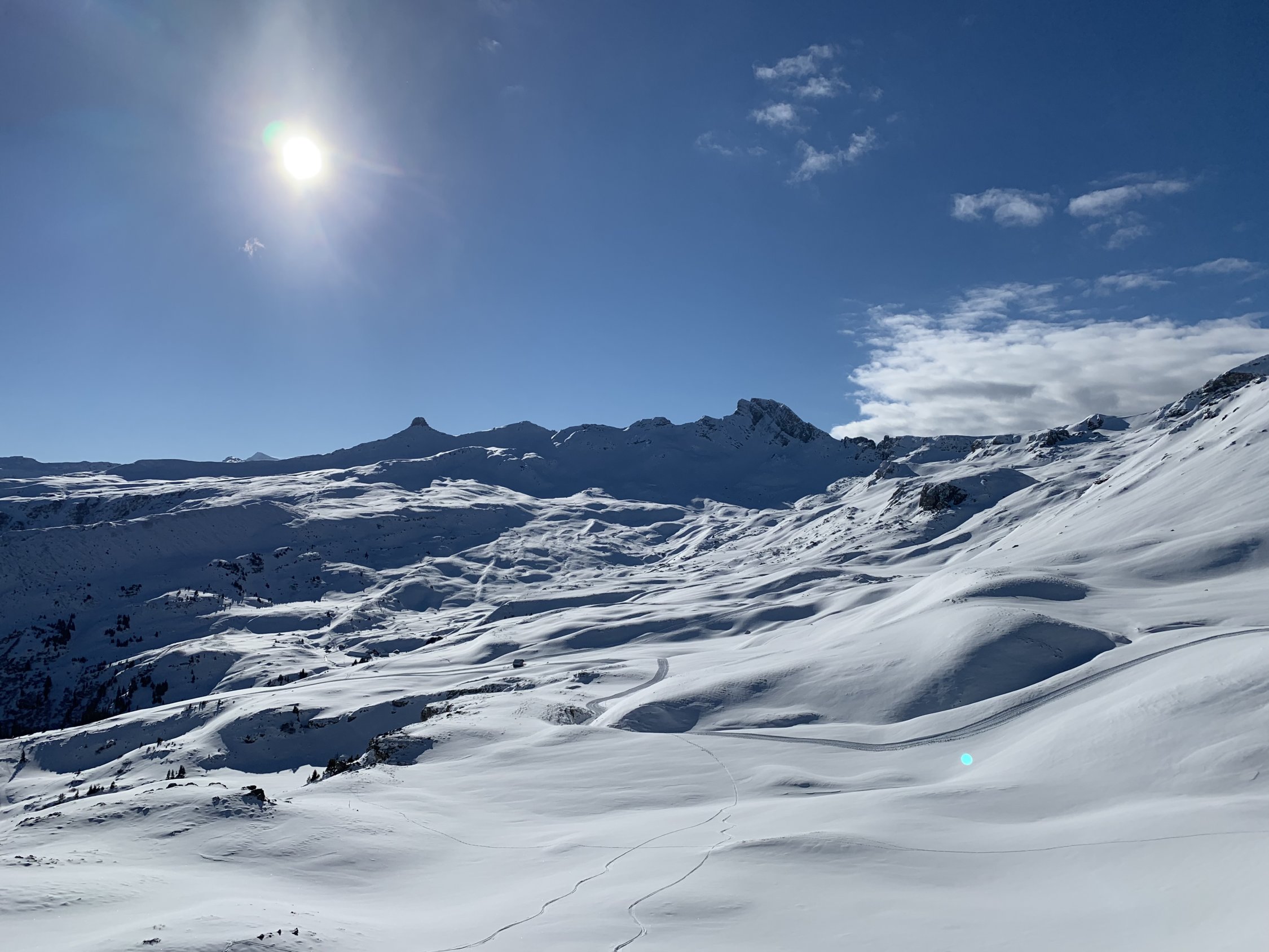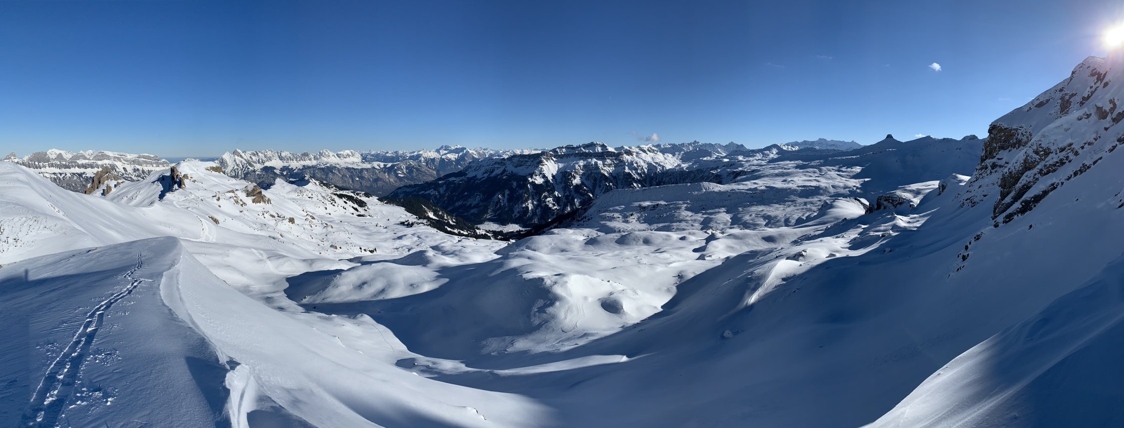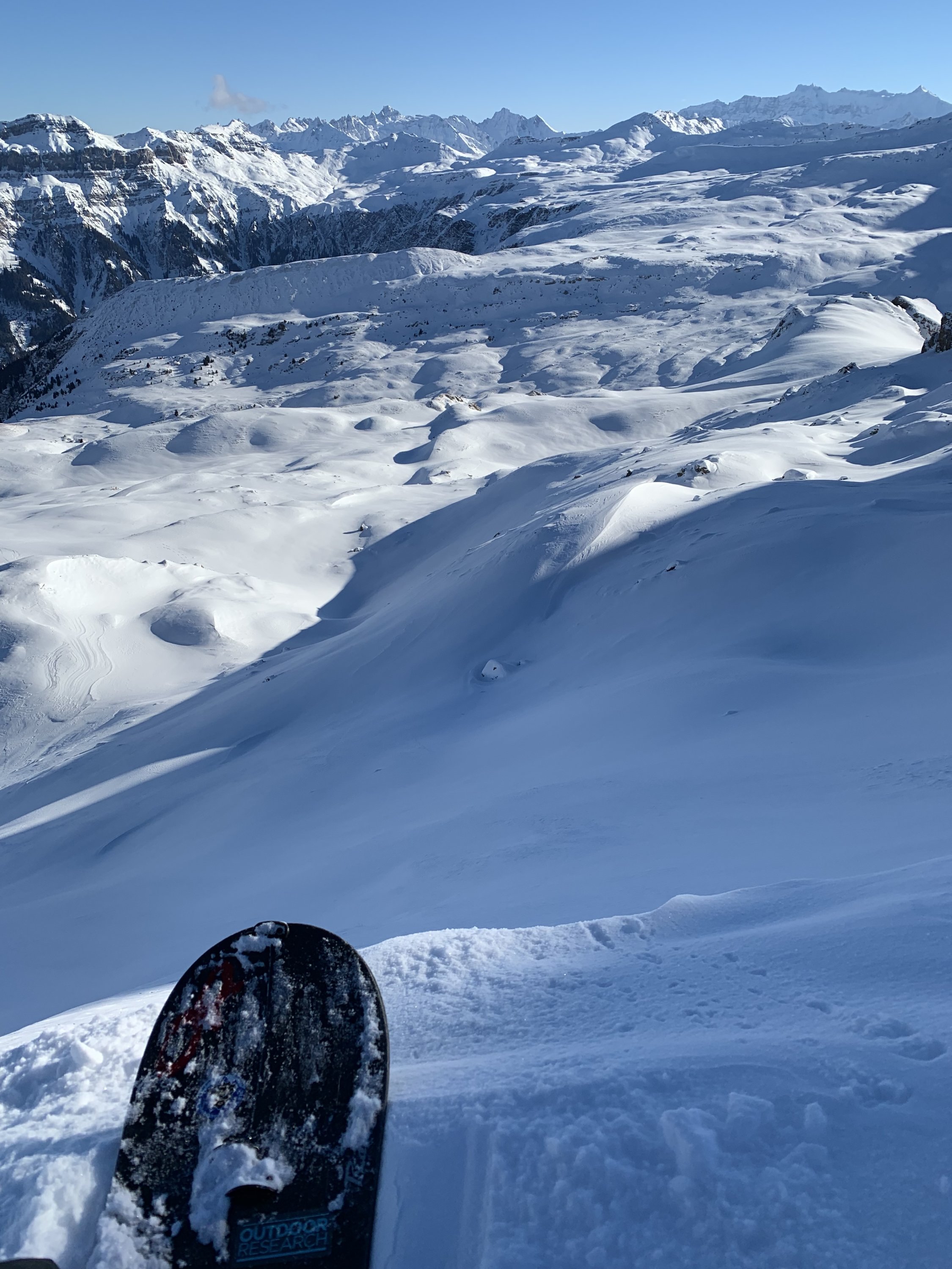 Kalt aber kaum Wind. Pulverschnee mit wenig Unterlage. Zum Teil Bruchharst auf den Kuppeln. Allgemein gute Verhältnisse. Abfahrt geht sehr gut bis Tannenbodenalp