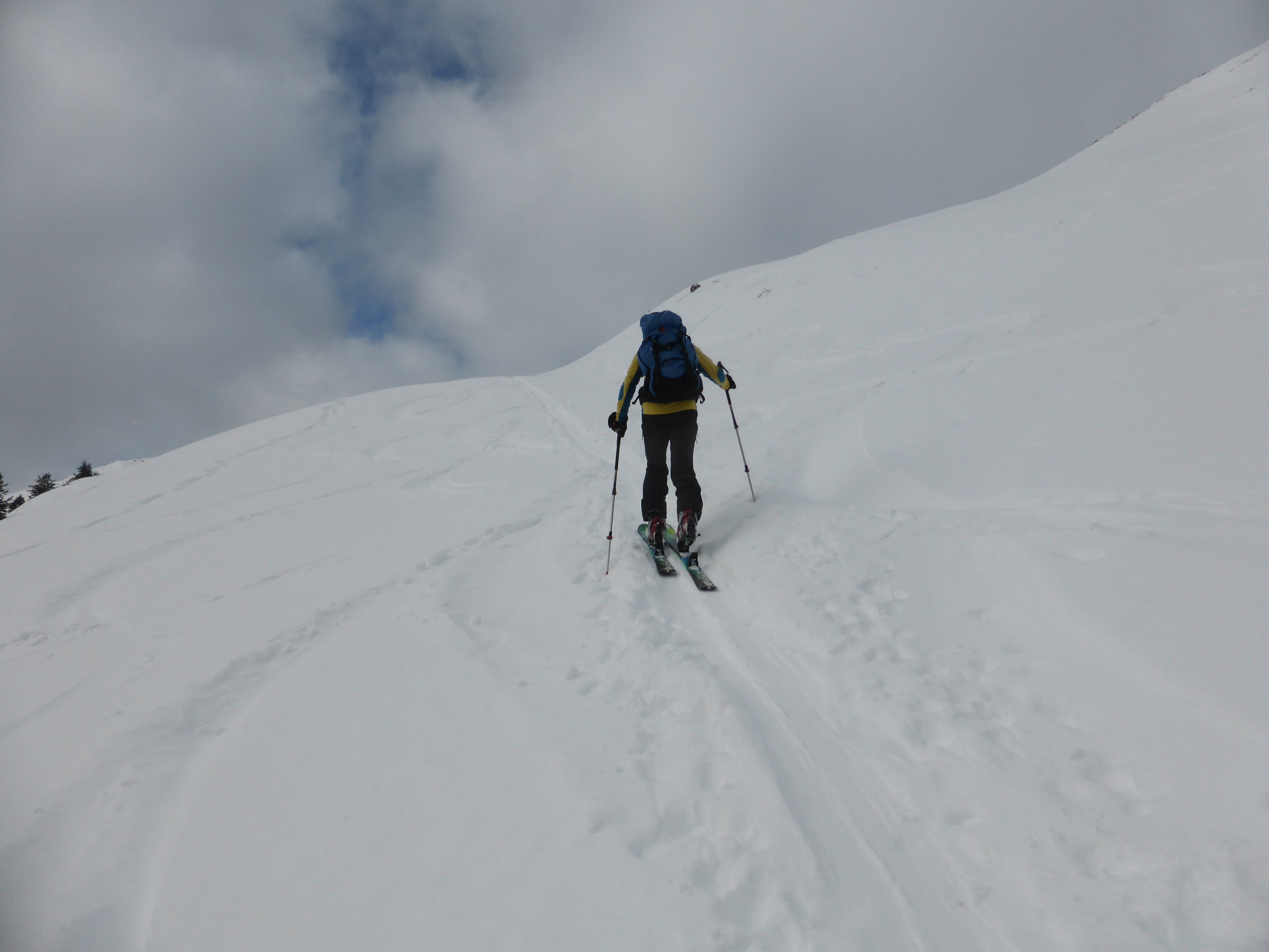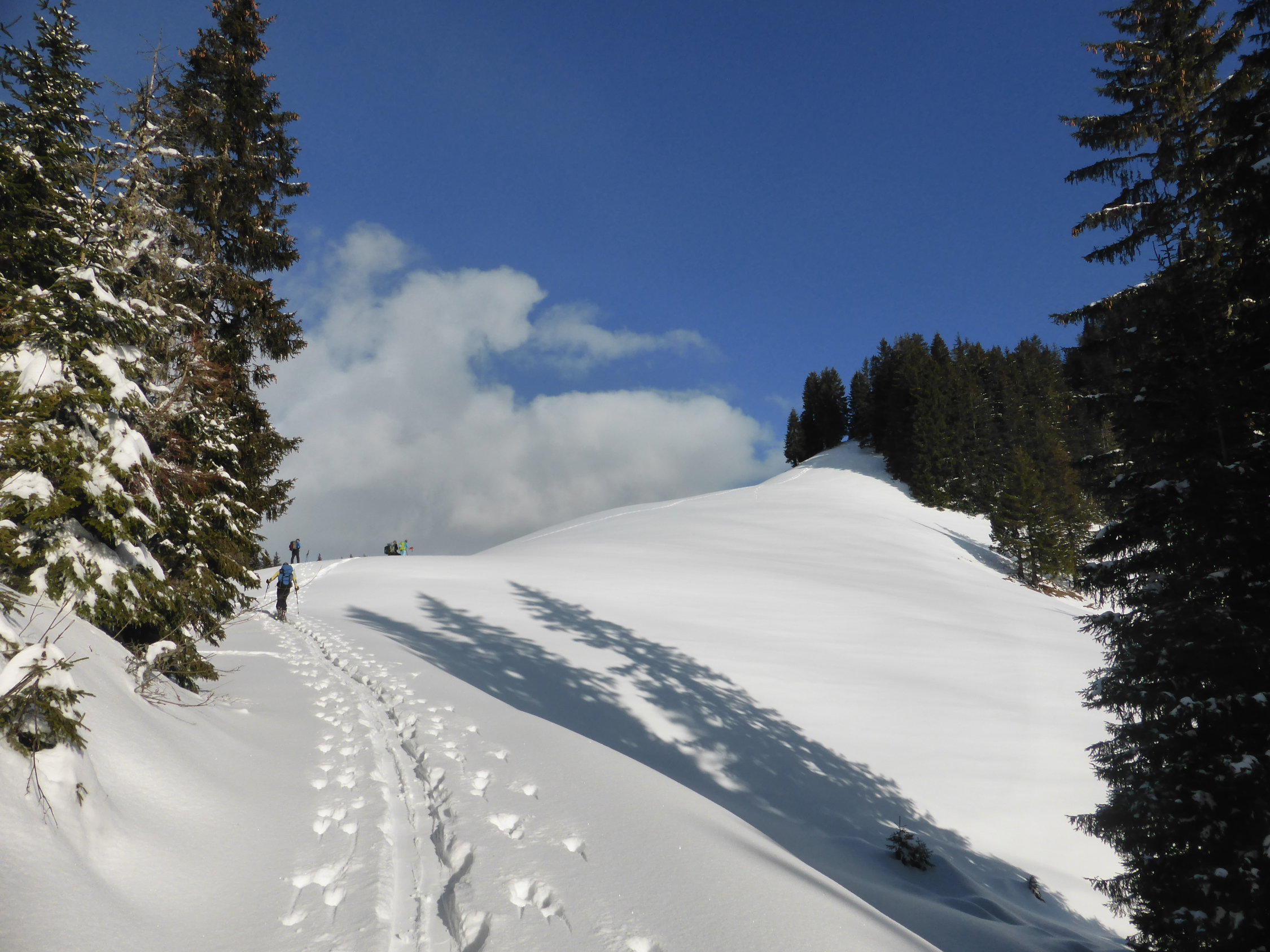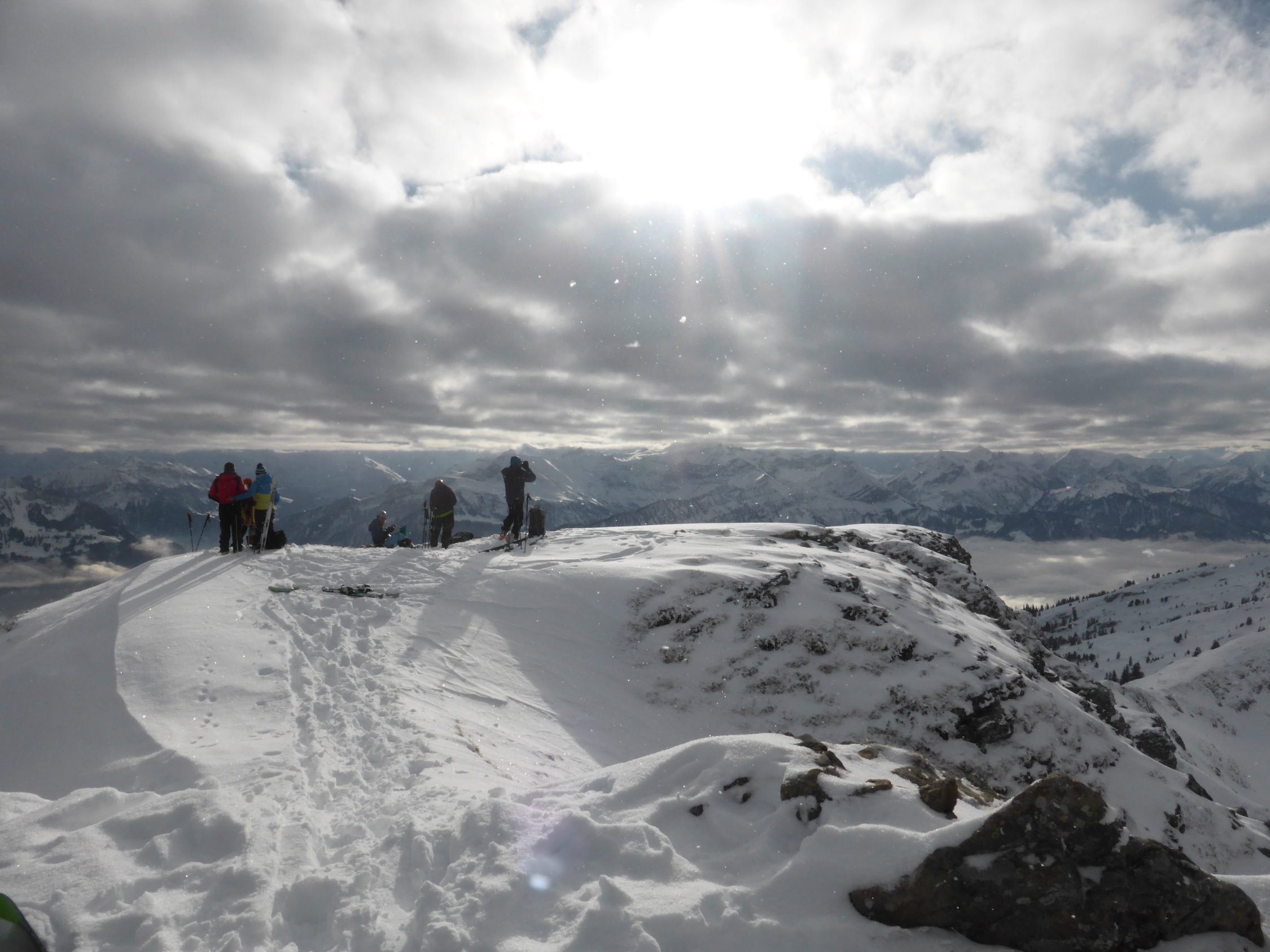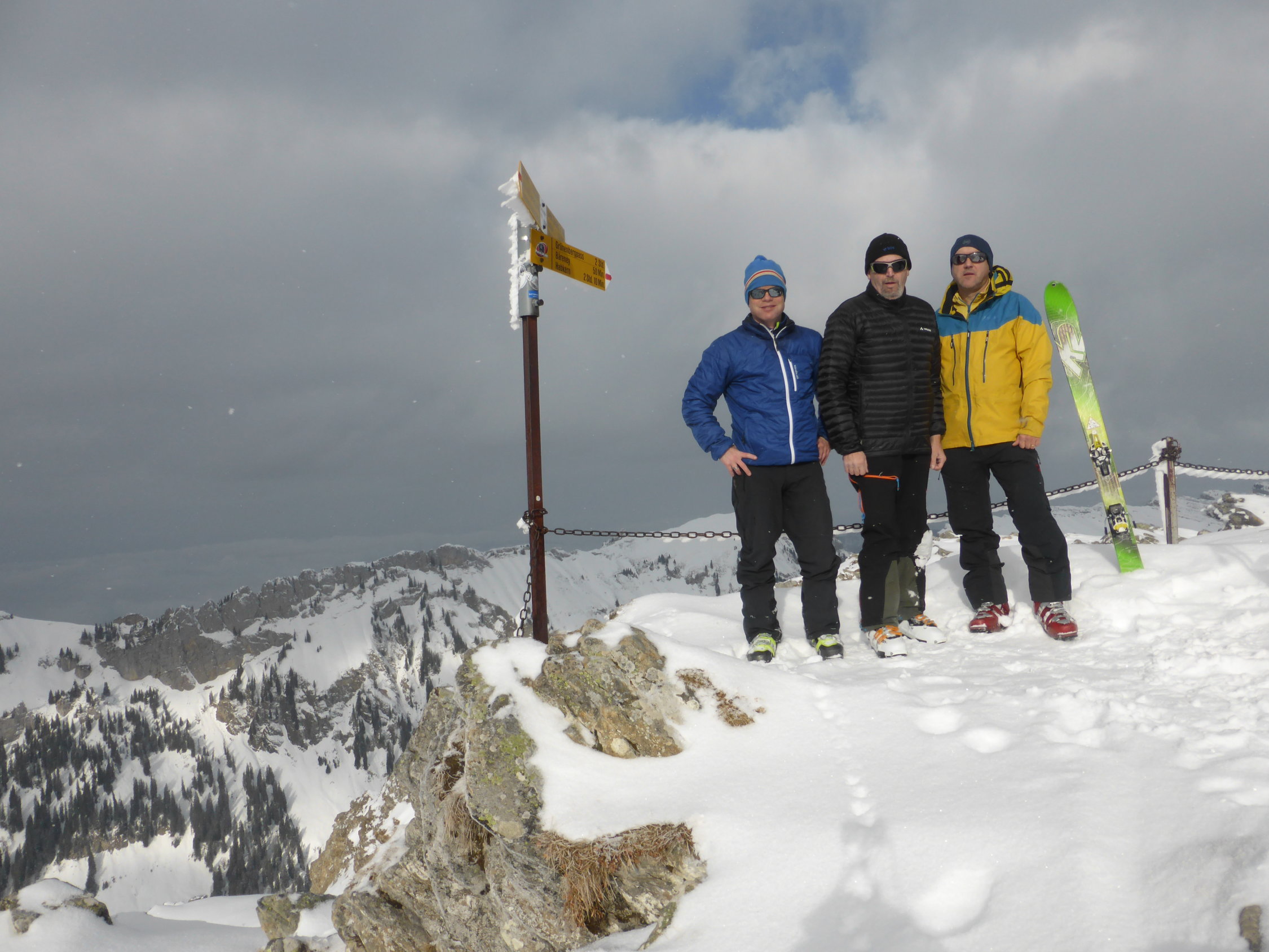 Wetter: zuerst sonnig dann begann es rasch mit Bewölkung, auf dem Gipfel und bei der Abfahrt anschliessend wieder sonnig, grundsätzlich schwachwindig bzw. leichter Südwind, Temperatur sehr angenehm zum Gehen und Abfahren