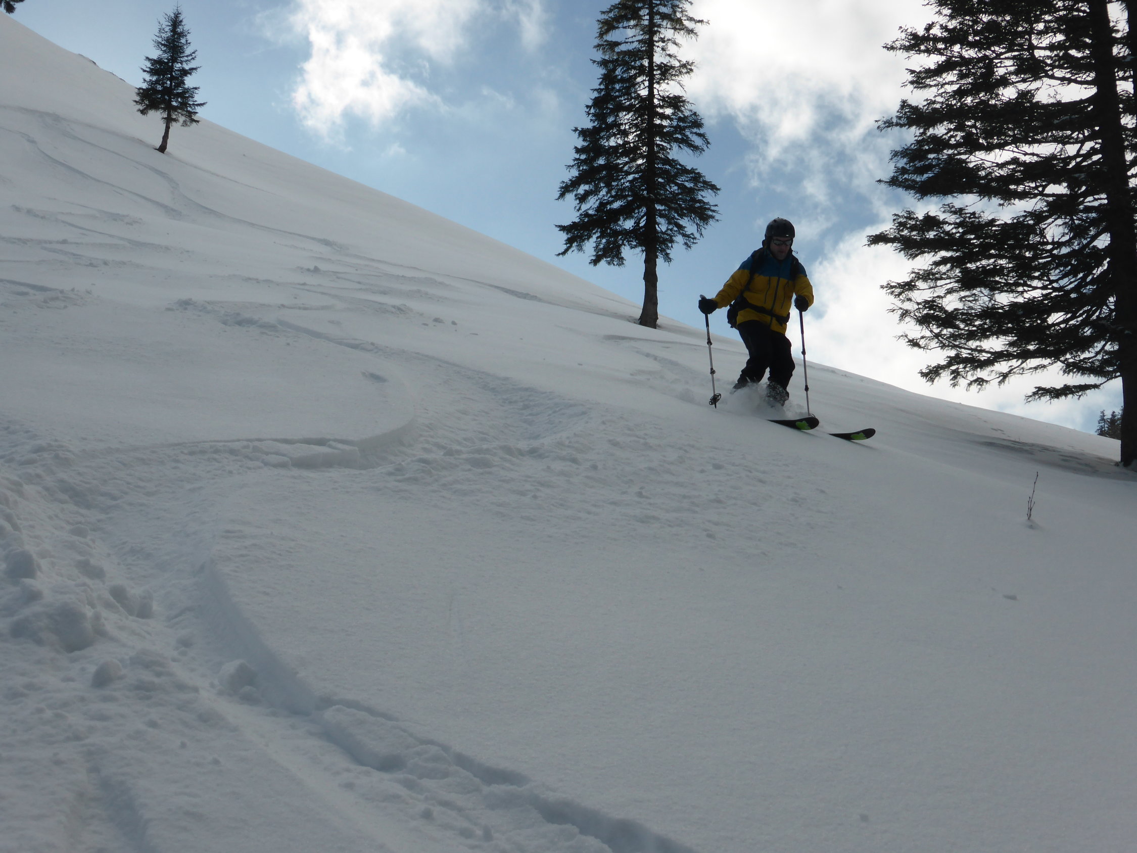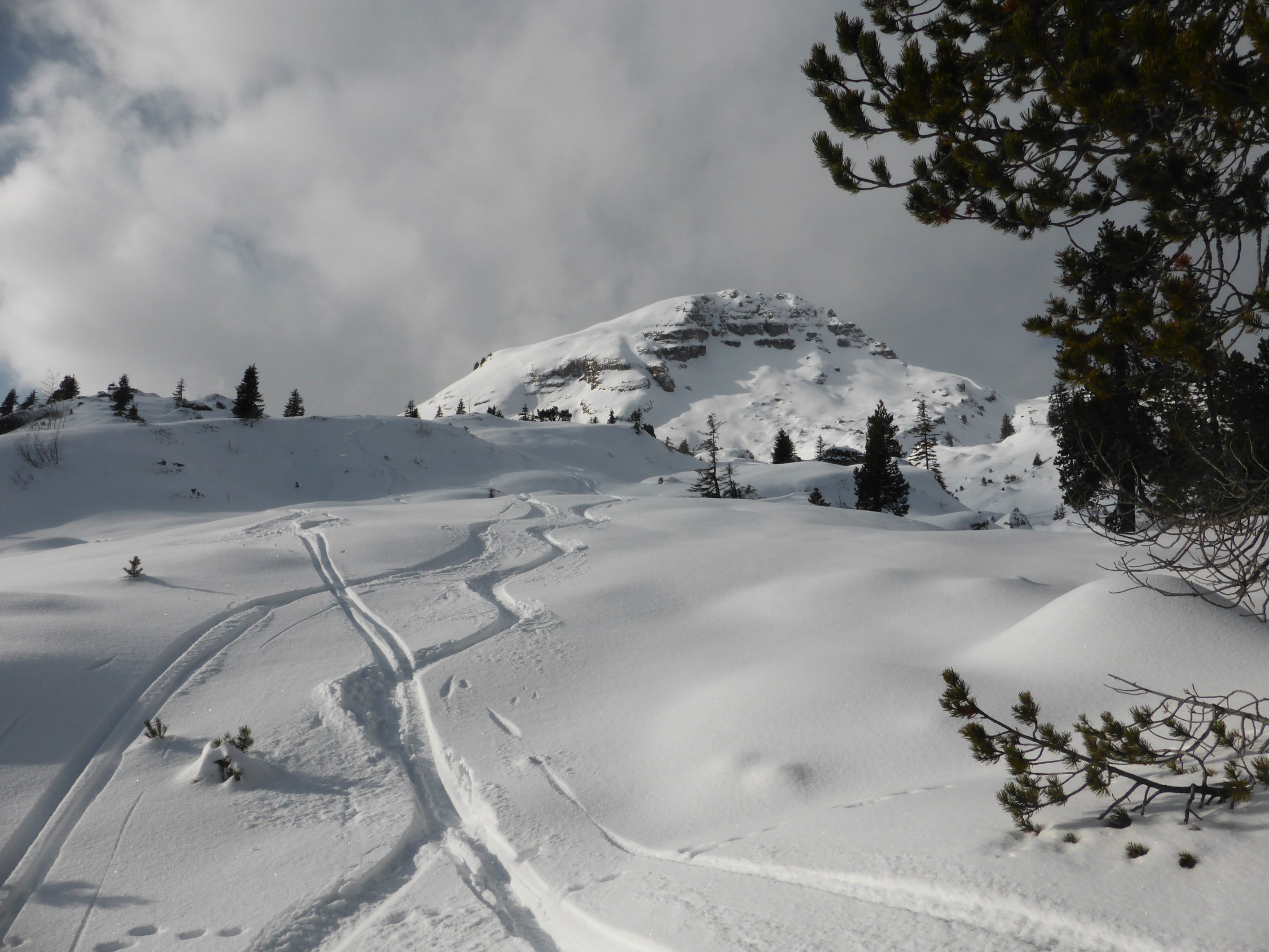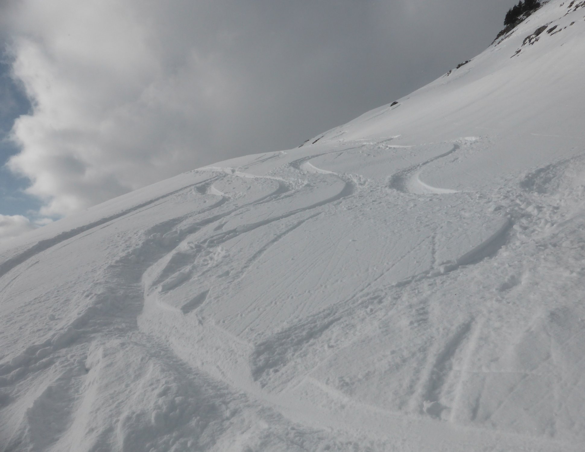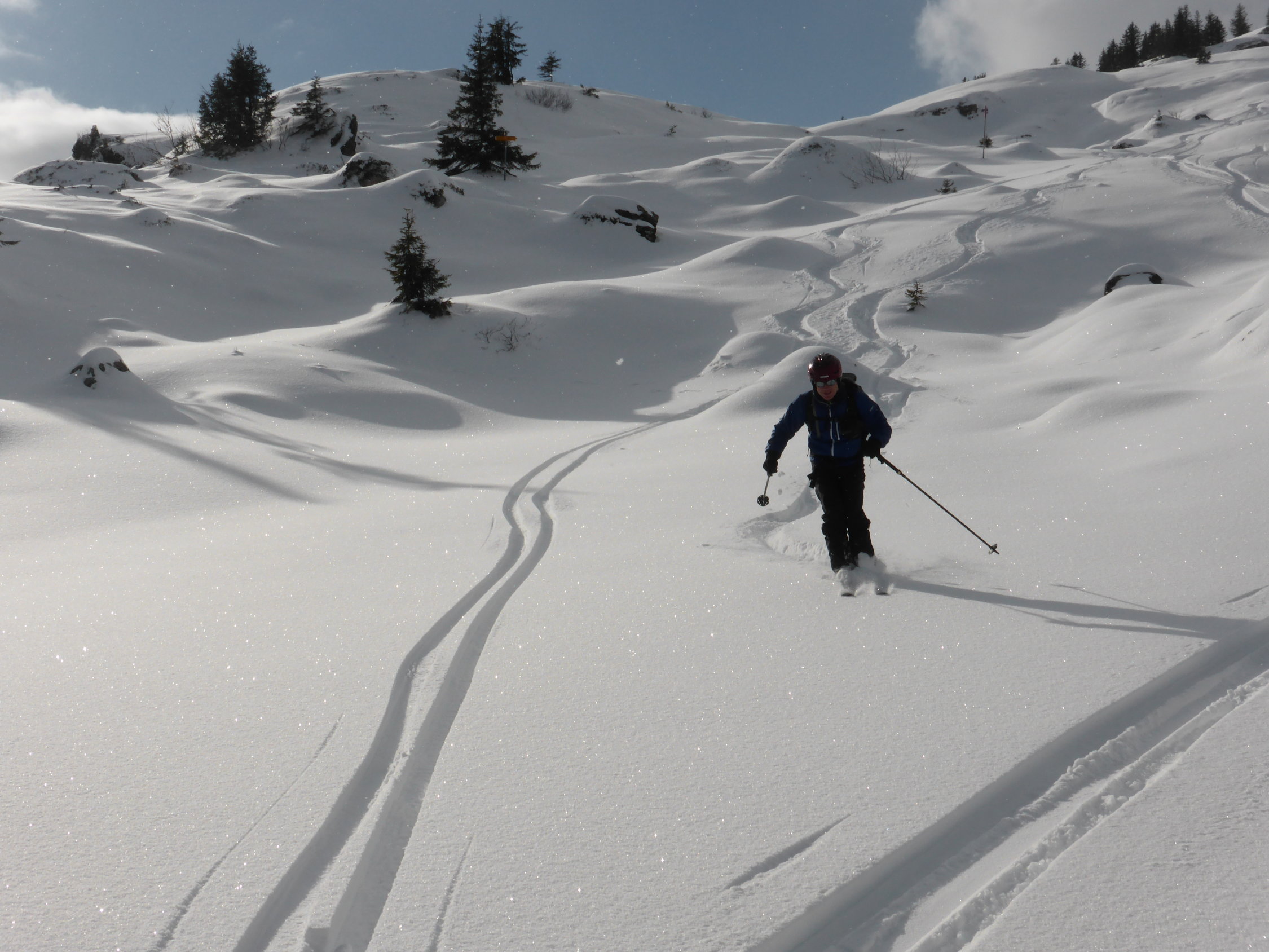 Schnee: zu Beginn ca.20cm ohne Unterlage, ab 1400m rasch zunehmend mit Unterlage, in der Abfahrt super Pulver bis am Schluss(1130m), auch in der Abfahrt die letzten 100Hm ohne Unterlage, ganze Tour kein Steinkontakt