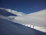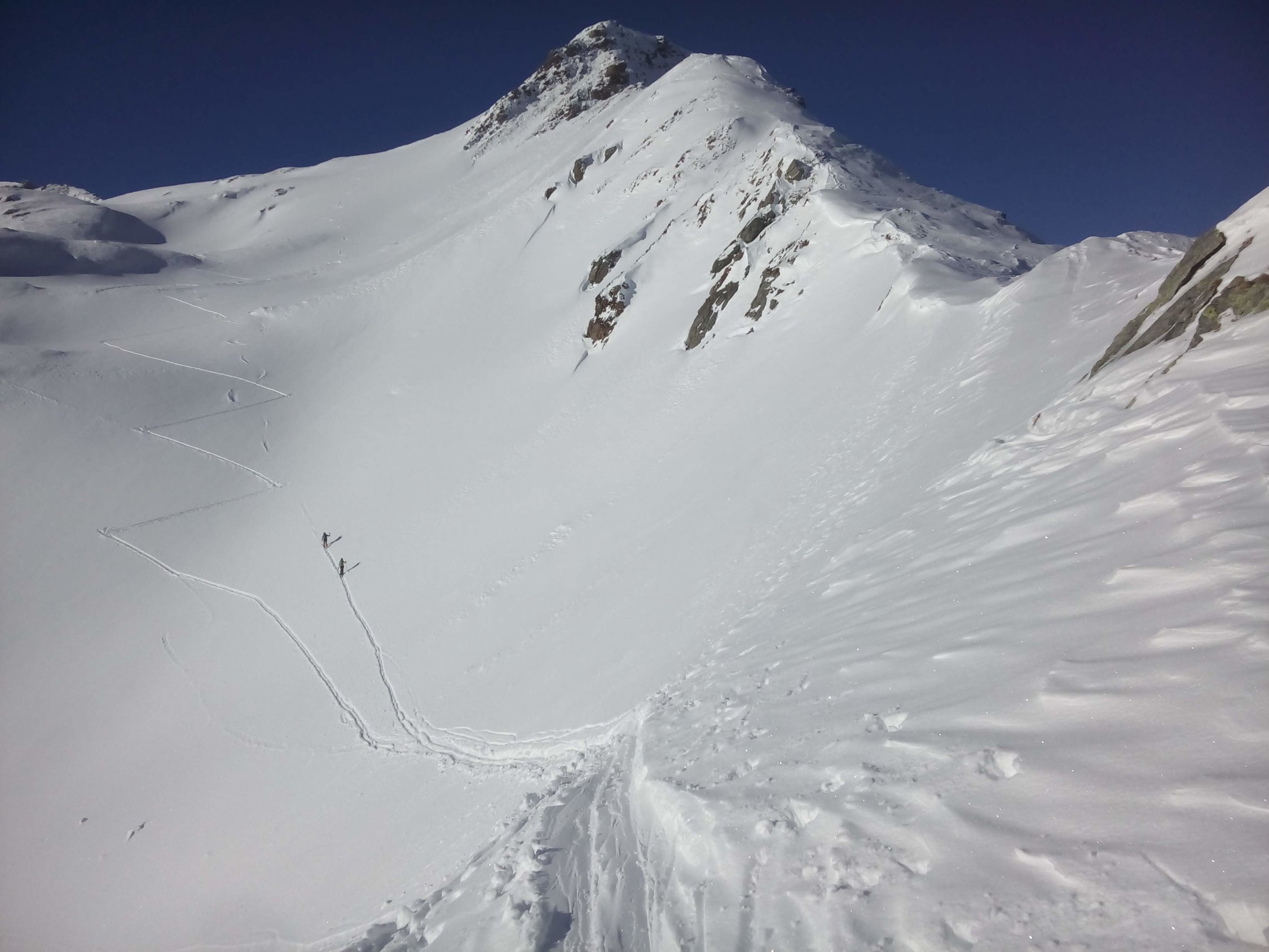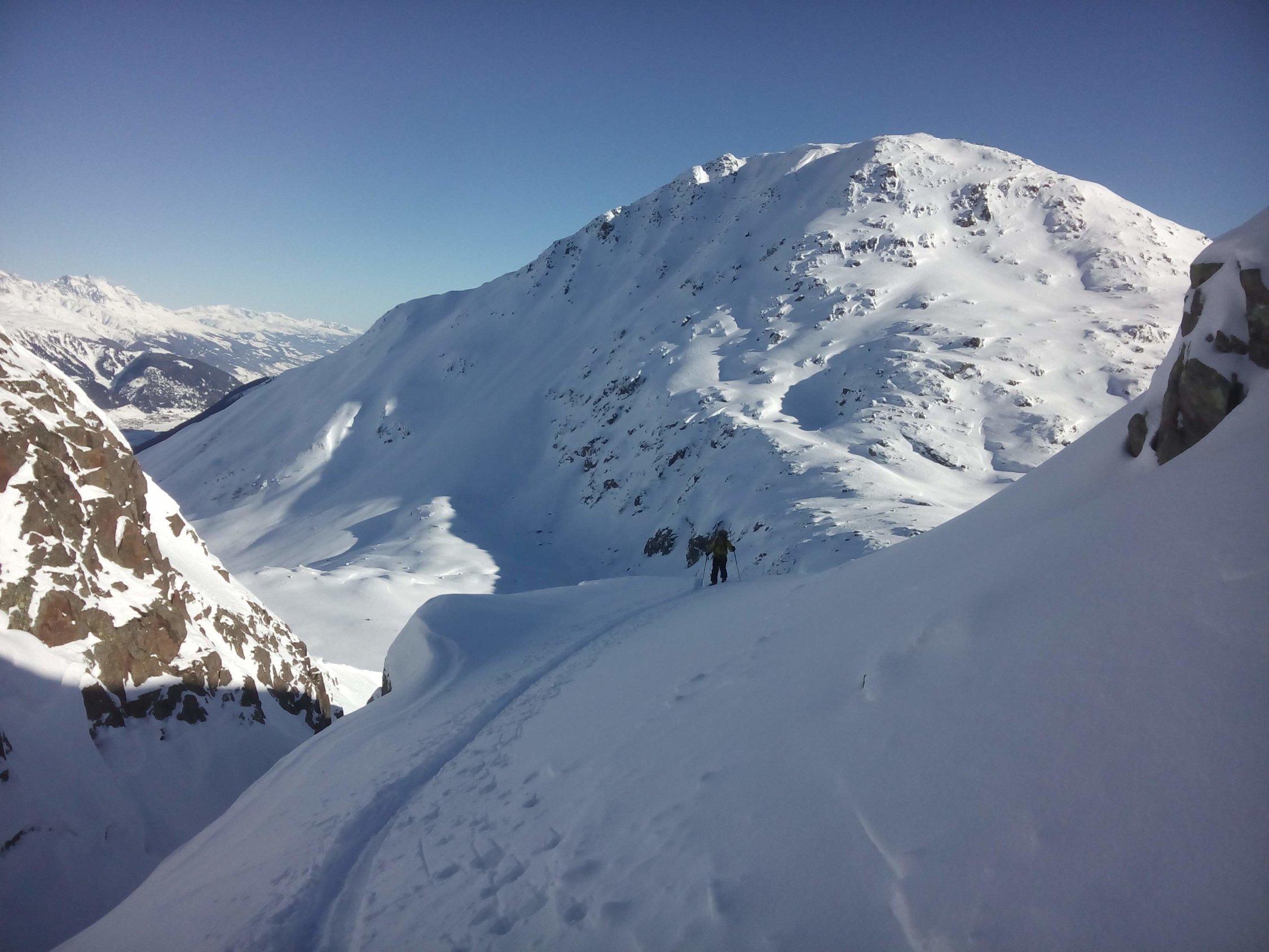 Wir sind von Plidutscha wieder aufgestiegen zur Martschallücke. Wunderschön und gut eingeschneit. Abfahrt von Martschallücke bis nach Andermatt war gut möglich. Die Querung von Riederen nach Graben (Hütte) war etwas durchwachsen (Erlengestrüppe zu queren). Unterster Teil ohne Unterlage aber ca. 30-40 cm gesetzter Pulverschnee.