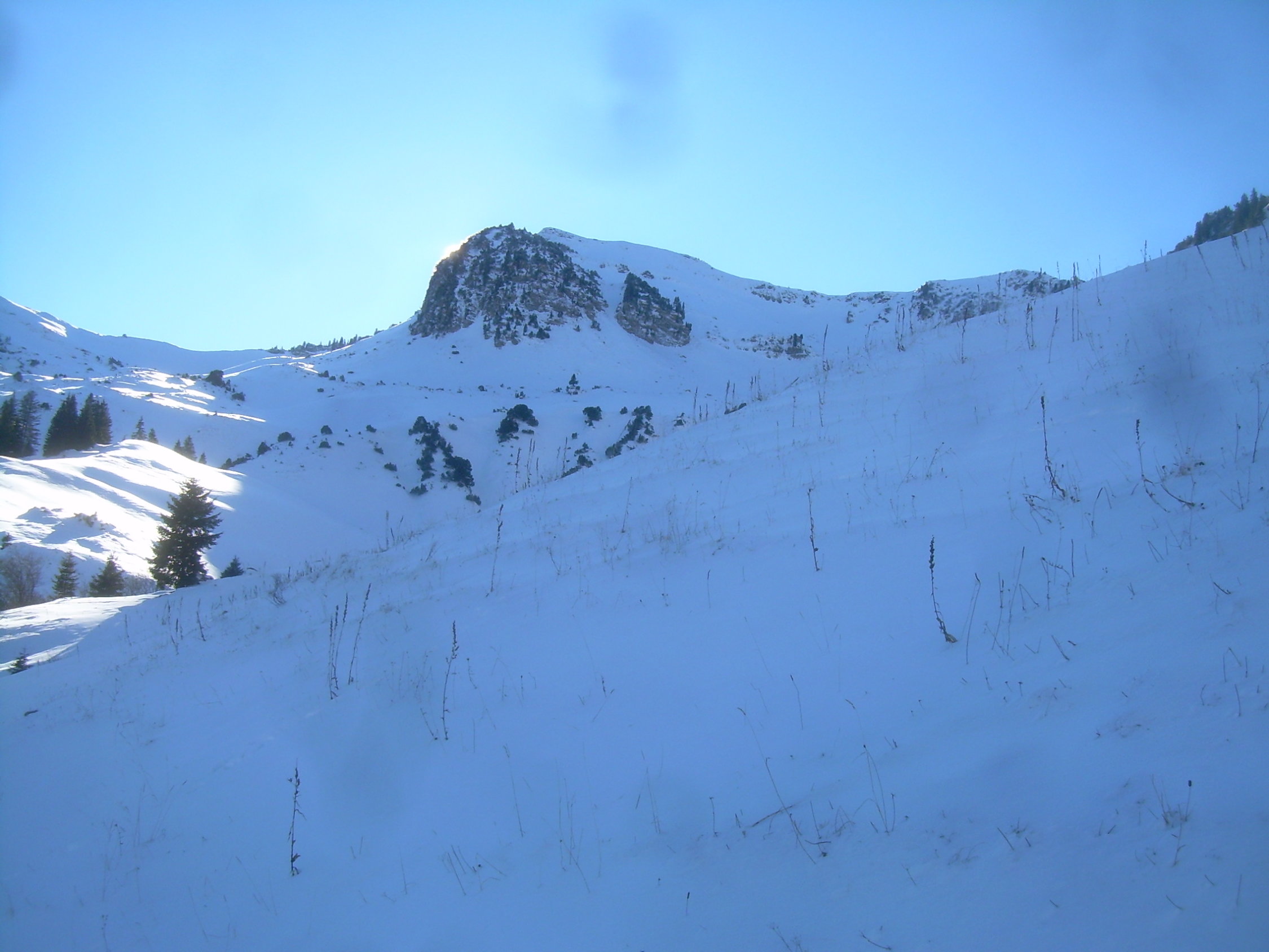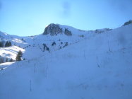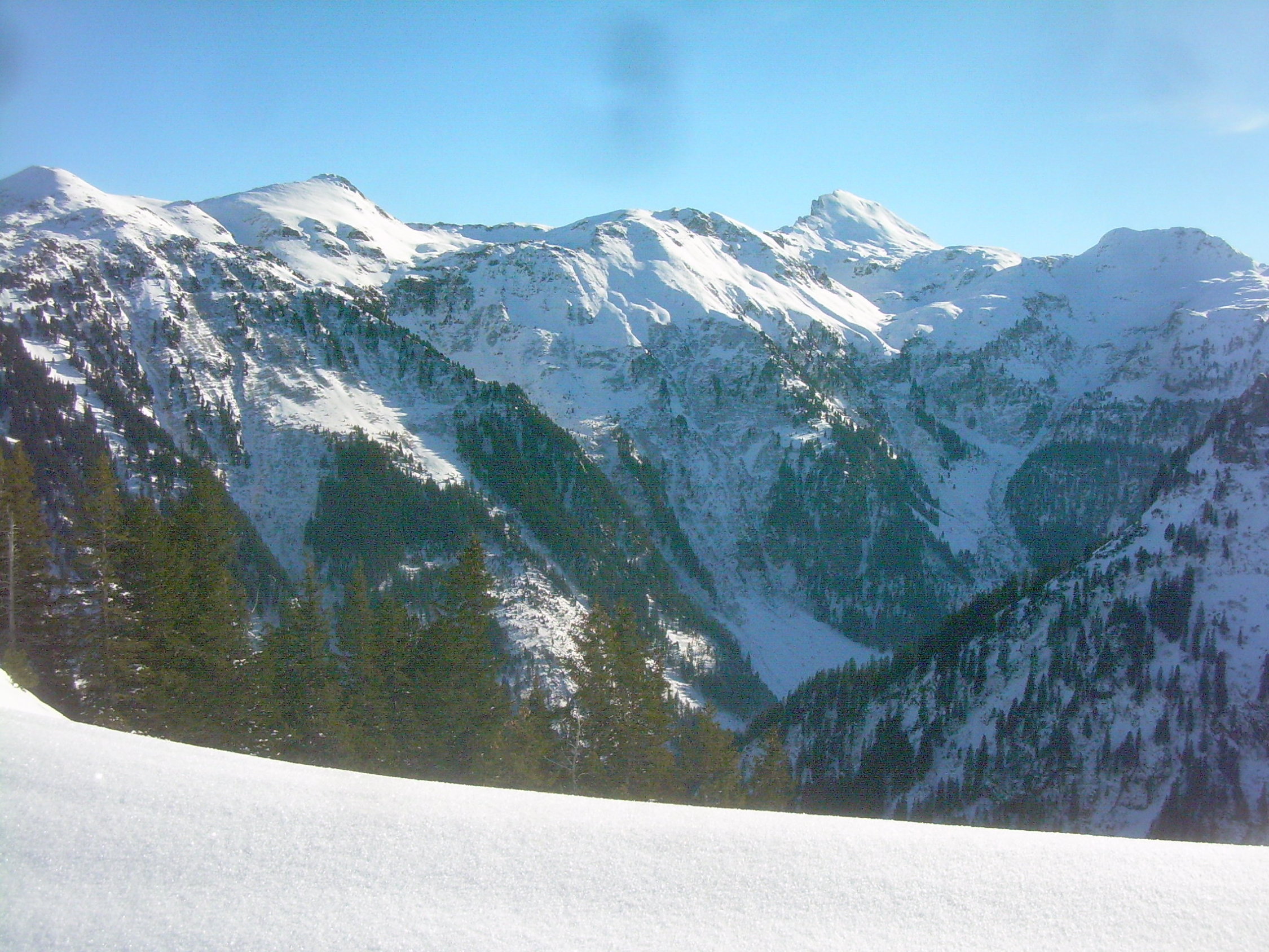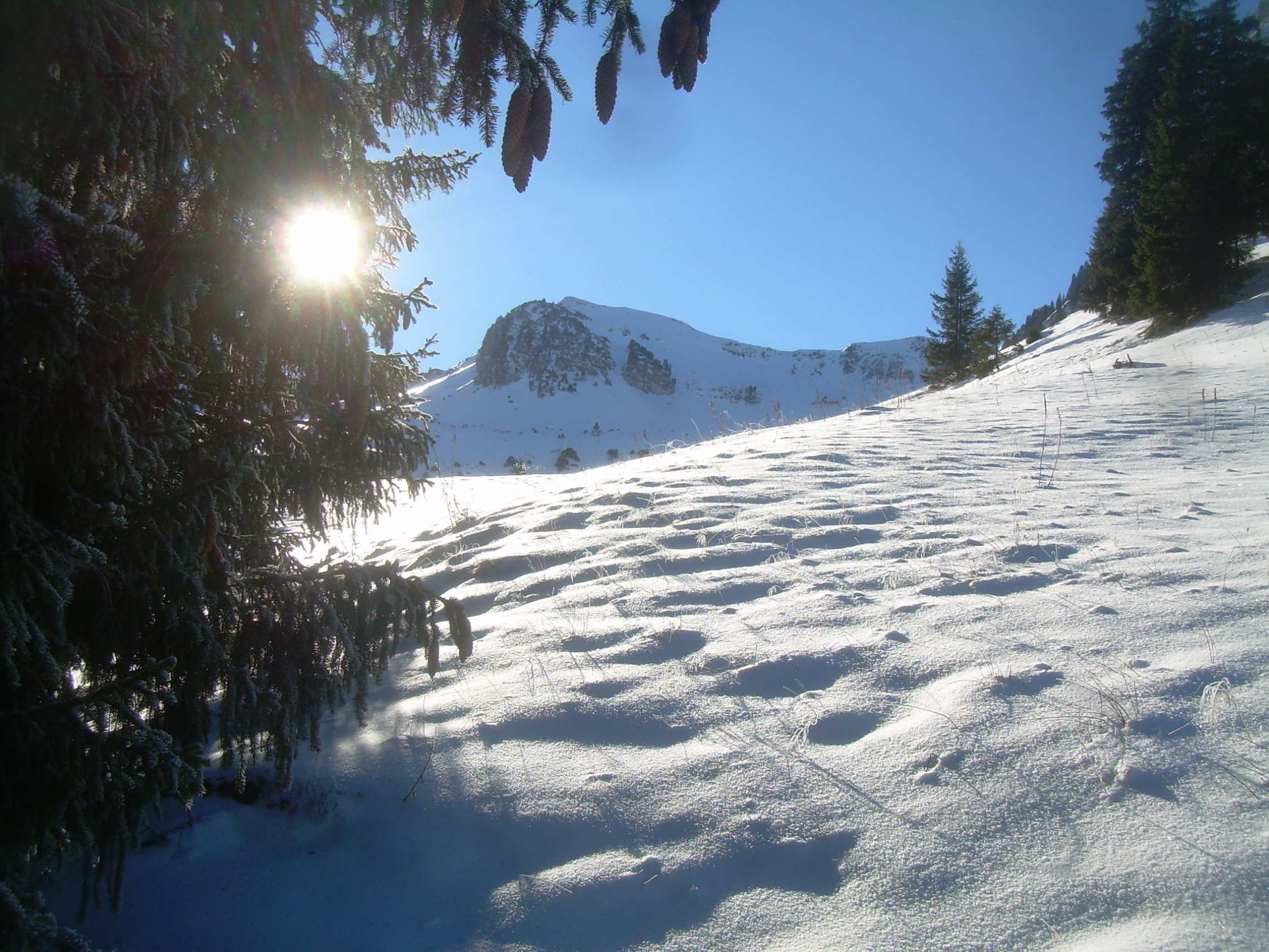 Wie schon am 14.12. bereits in ajay´s Eintrag "Firzstock" vermerkt, sind die Schneehöhen im Gebiet derzeit alles andere als üppig und somit skifahrerunfreundlich. Fast schon eine Garantie, an einem ohnehin nicht zu den Modezielen zählenden Berg Einsamkeit pur zu erleben. Der Nordanstieg hat vor allem im Hochwinter allerdings auch nahezu durchgehende Schattengarantie ...