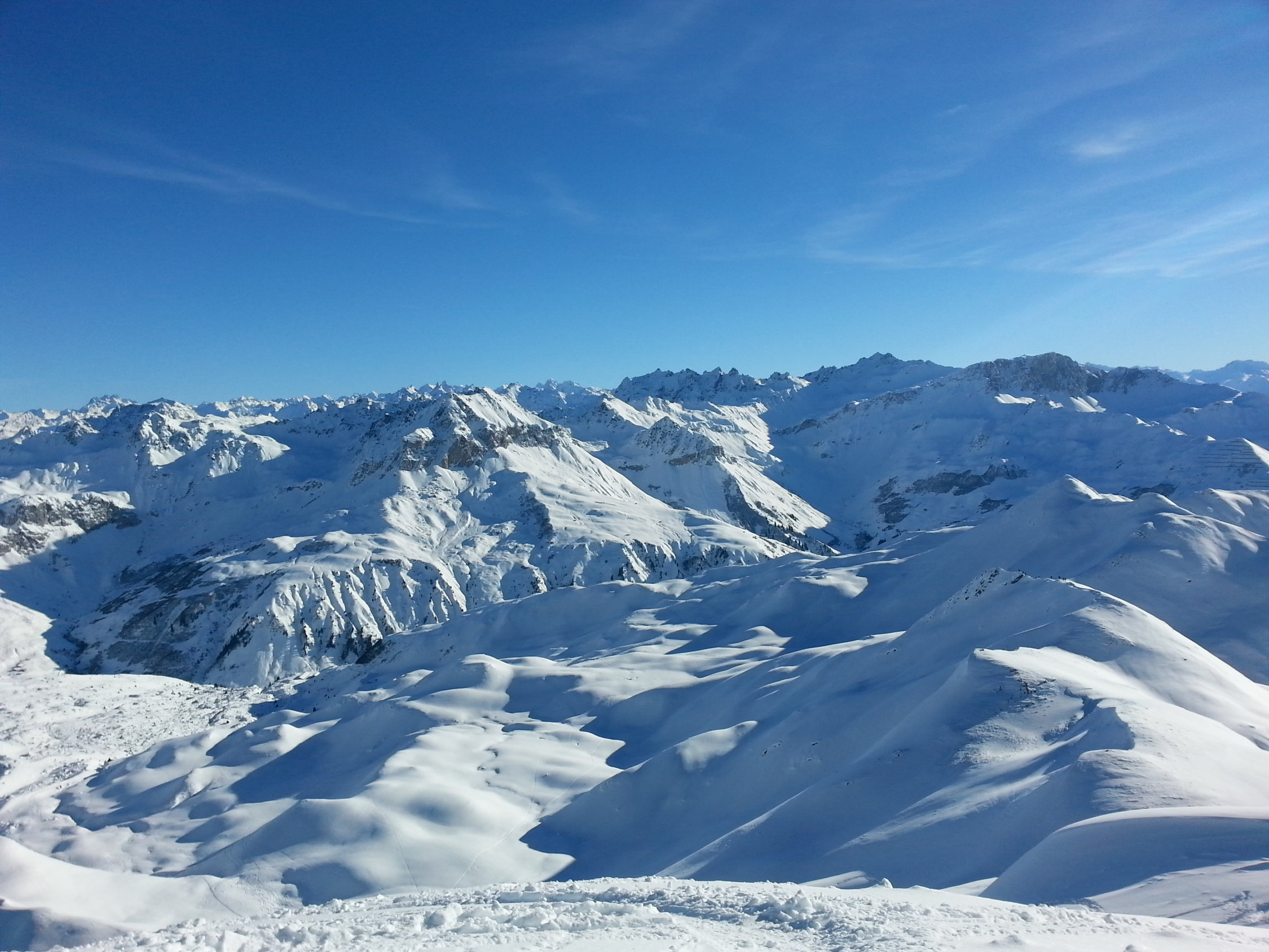 Die paar Zentimeter Neuschnee und der Wind vermochten kaum die vielen Abfahrtsspuren der vergangenen Tage einzuschneien. Je höher desto weniger gut sah man die alten Spuren im Schnee. Der Gipfelhang östlich vom Girenspitz ...immer noch traumhaft abzufahren! Auch der anschliessende Aufstieg zum Schafberg hat sich gelohnt. Im oberen Bereich sind immer noch sehr viel Pulver und unverspurte Hänge anzutreffen. Unten ziemlich zerfahren.