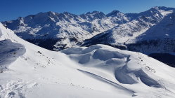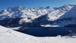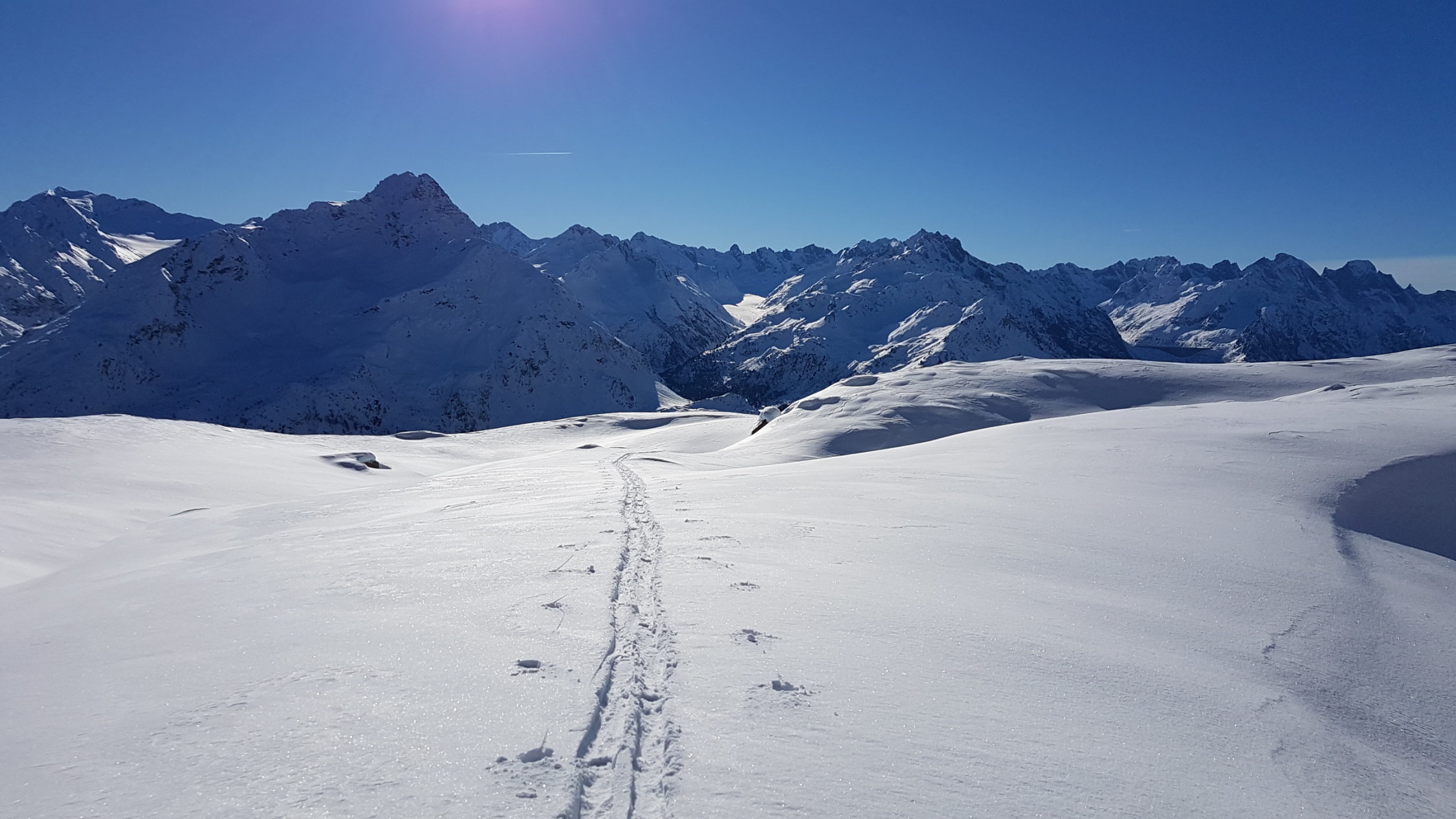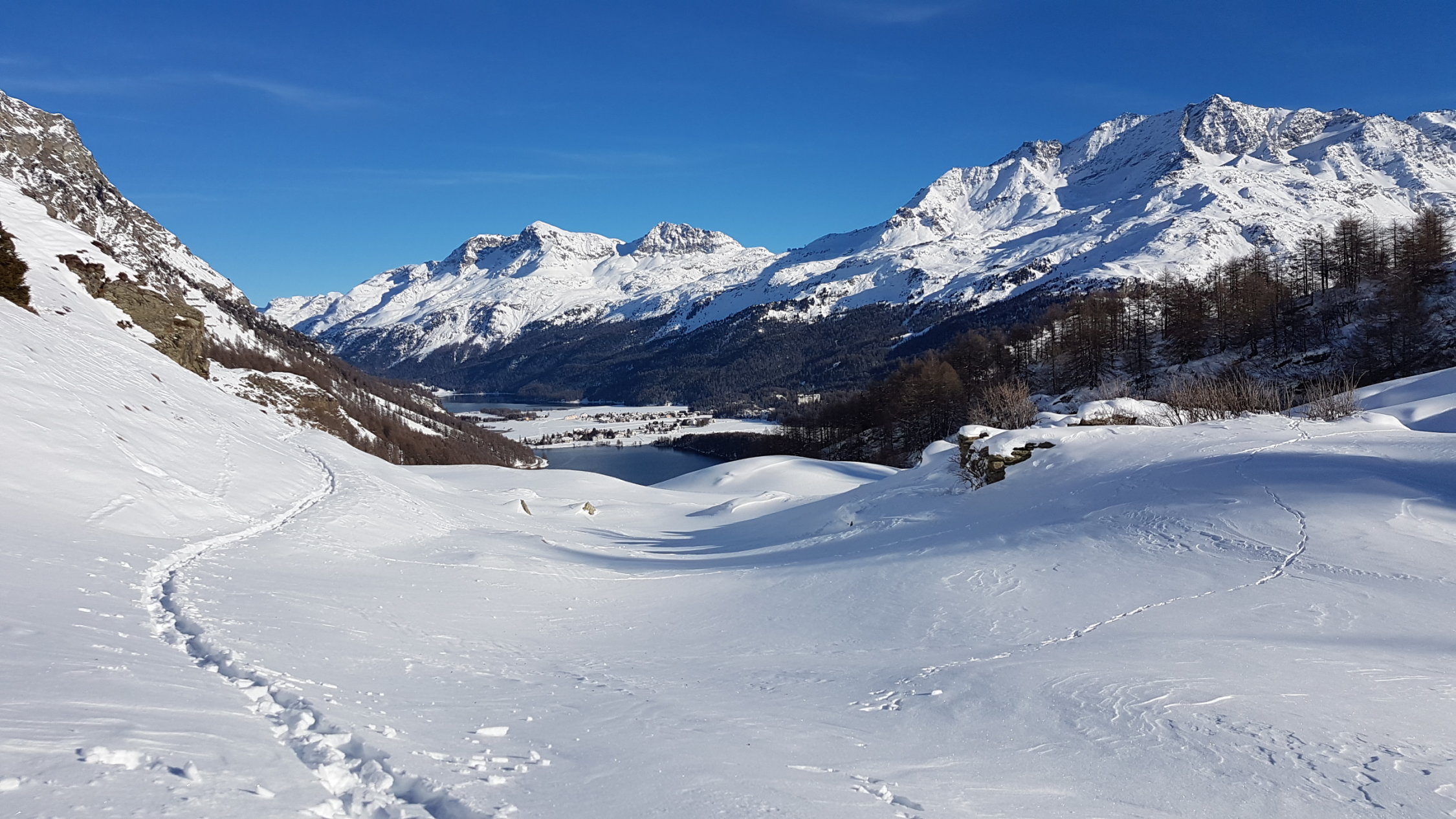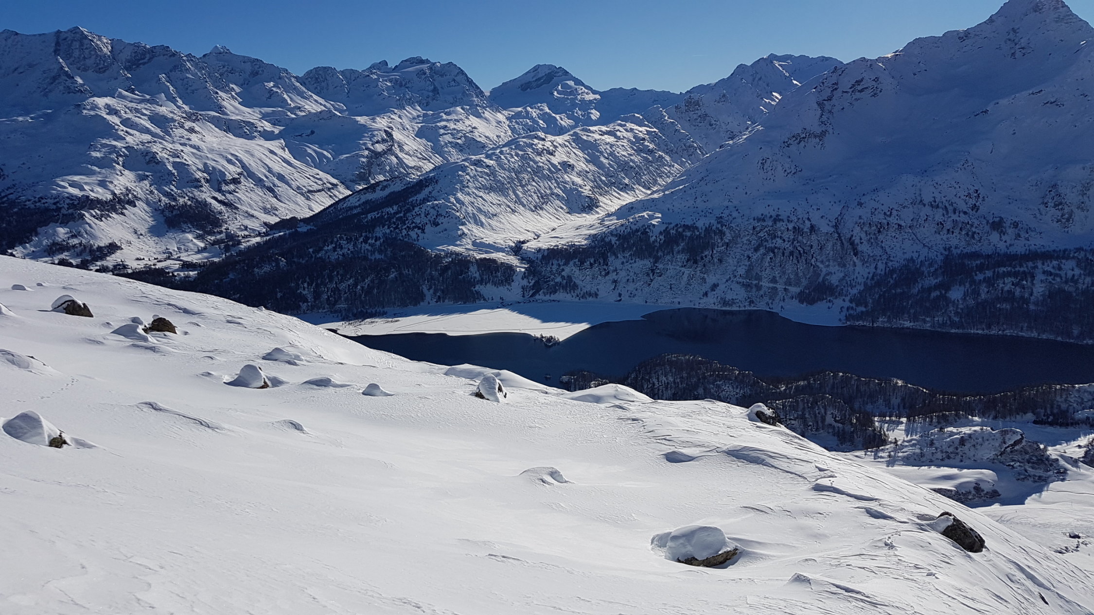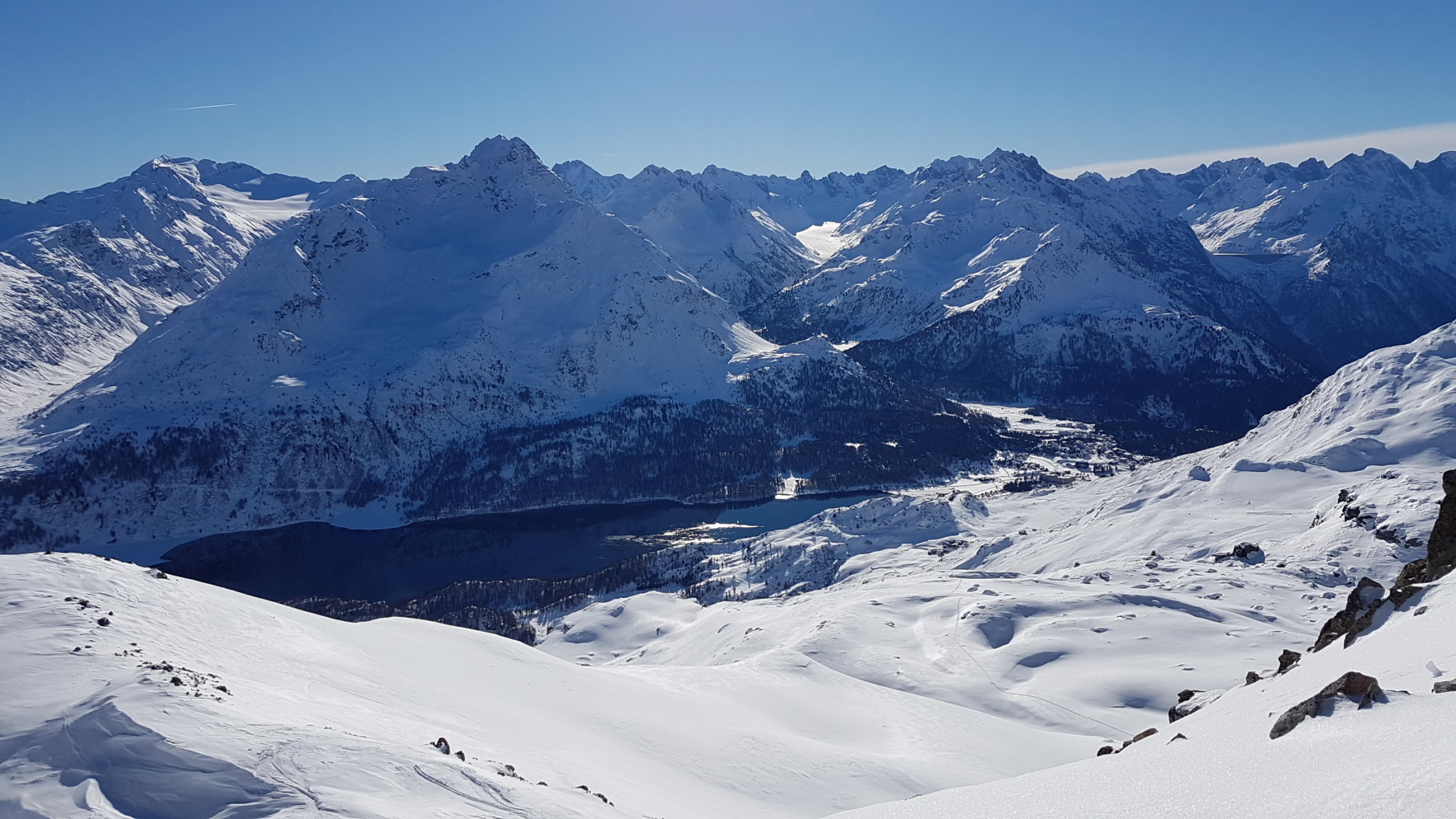 Um 8:45 in Plaun da Lej gestartet bei -12°. Kurz vor Grevasalvas schien die Sonne, da wurde es schnell einige wärmer. Aufstiefsspur war vielleicht etwas eigenwillig gewählt, dafür war ich alleine in unberührtem Gelände. Zu meiner Überraschung sind dann etwas später doch dieser Spur gefolgt. Im Grossen und Ganzen sehr gute Verhältnisse, einige Stellen aber stark abgeblasen und deshalb hart.