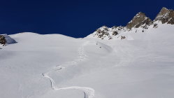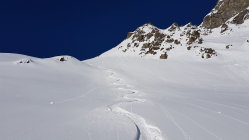 Für die Abfahrt habe ich mich für die Hänge Laviners entschieden. Eine einsame Spur bei sehr guten Verhältnissen, leicht verblasen. Unterhalb ca 2100 lag dann doch etwas wenig Schnee, so dass es einige Male gekratzt hat unter den Skiern. Habe dann unten beim Wanderweg nochmals die Felle angeschnallt und via Grevasalvas zurück nach Plaun da Lej.