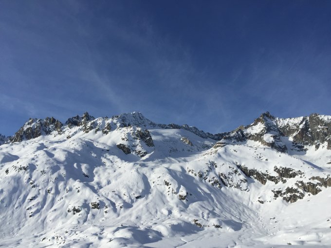 Nach einem Irrweg (siehe unten Persönliches) bin ich am Mittag in Realp gestartet. Gute Spur im steileren Hang bis zum Hotel Galenstock und auch danach. Selbstverständlich ist man hier an so einem schönen Tag nicht allein, am Gipfel war ich es doch, weil alle anderen bereits runterfuhren. Der Gipfel ist ein Aussichtsberg ersten Ranges, man sitzt gleich vis-à-vis vom Galenstock und all den anderen Stöcken, auf der anderen Seite breitet sich die Rotondogruppe aus, hinten das Wallis. Top. Sehr schön auch die Abfahrt, Pulver von oben bis unten, natürlich verfahren, aber man findet noch Platz für eigene Spuren. Doch noch ein gelungener Tag...