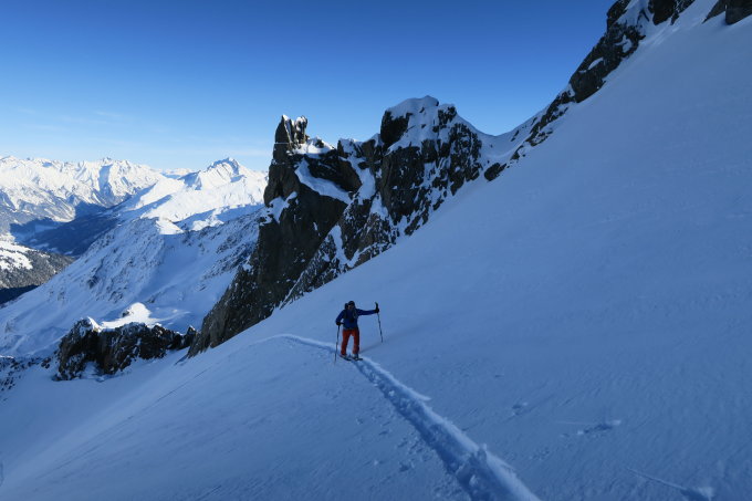 Gingen nicht bis ans Kreuz. Viel Schnee drinnen, Seil bzw. Eisentritte nicht sichtbar - hatten keine Lust zu wühlen.