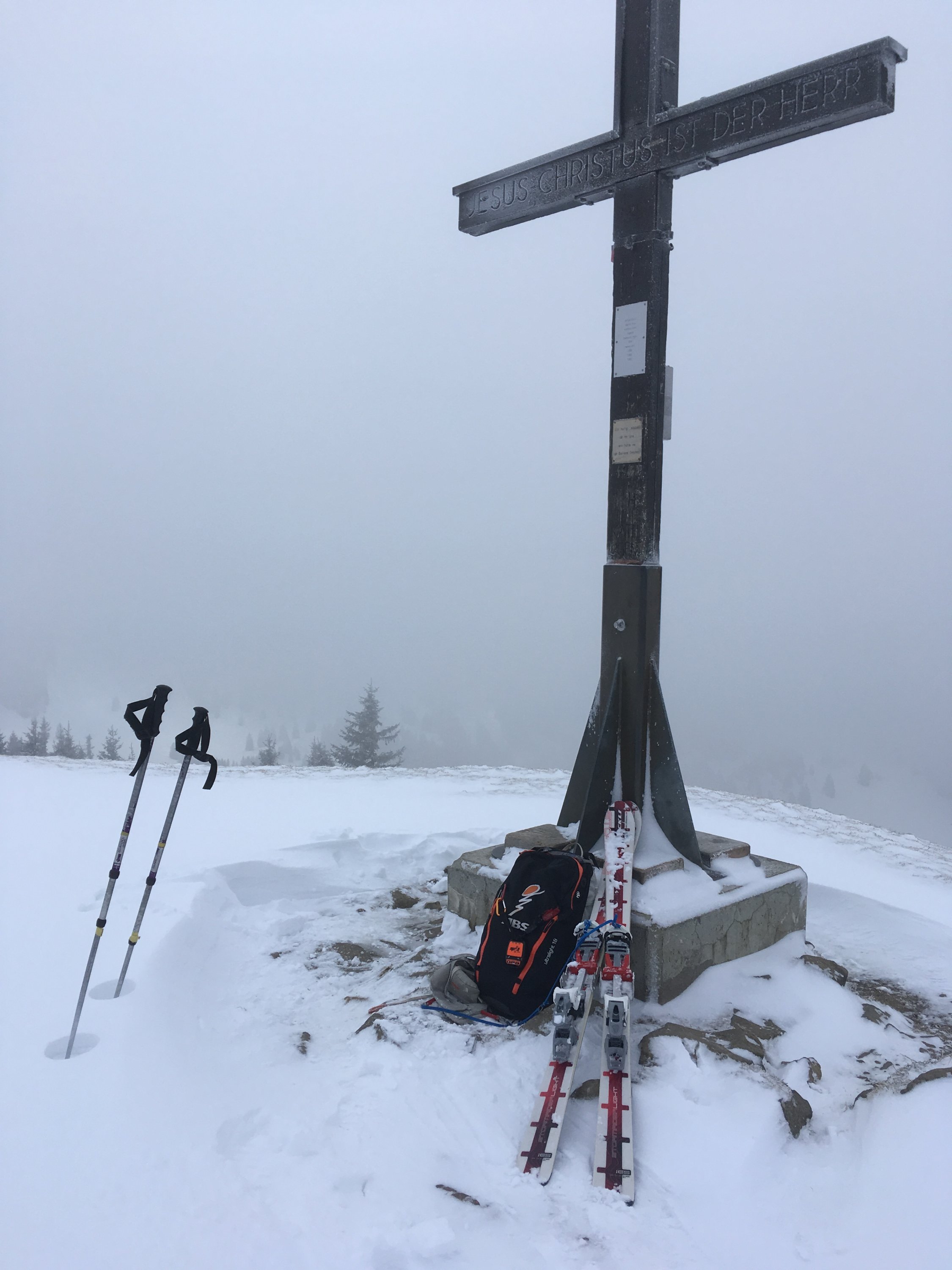 Anfangs feucht ca 200 hm, dann zunehmend trockener. Am Gipfel windig und Nebel