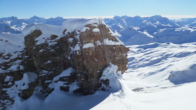 Ab 2769 links vor dem Einstieg zur Leiter den Osthang hinunter... ein Traum... unverfahren und gleichmässig pulverig bis ca P2159 (bis praktisch vor Bachübergang. Es hat noch Platz um die eigene Spur zu ziehen.