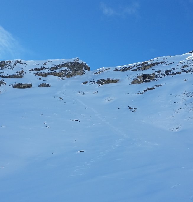 Zwischen Gipfel und P 2769 im steilen Teil am Nachmittag kleine, lokale Schneebretter abgegangen.