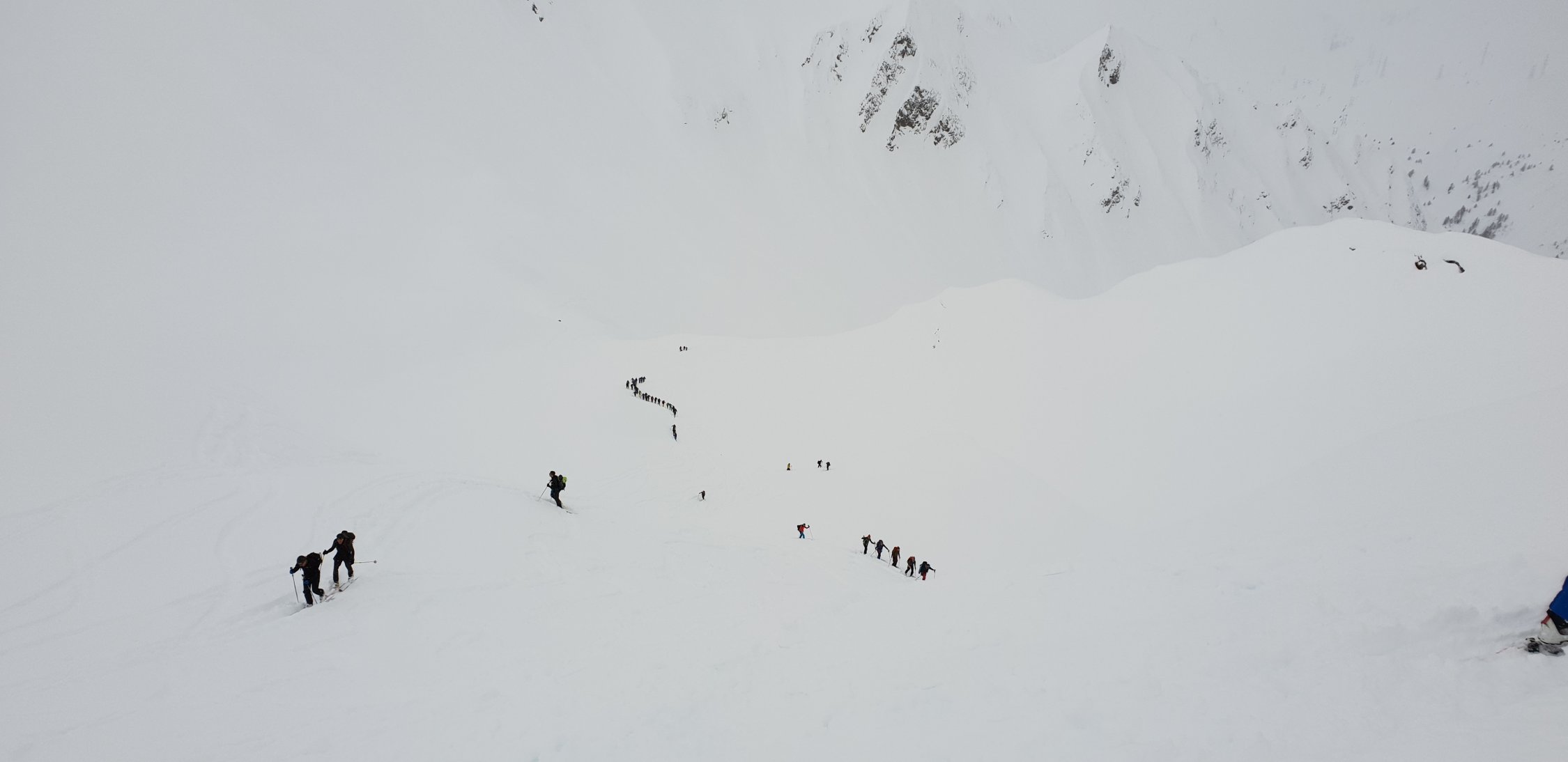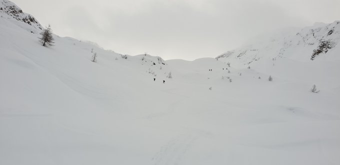 Schnee hat es in All Acqua genug, aber das Wetter und Lawinenverhätnisse wie auch die Schneequalität stimmte heute nicht, sonst könnte man auch in Richtung Chüebodenhorn gehen.