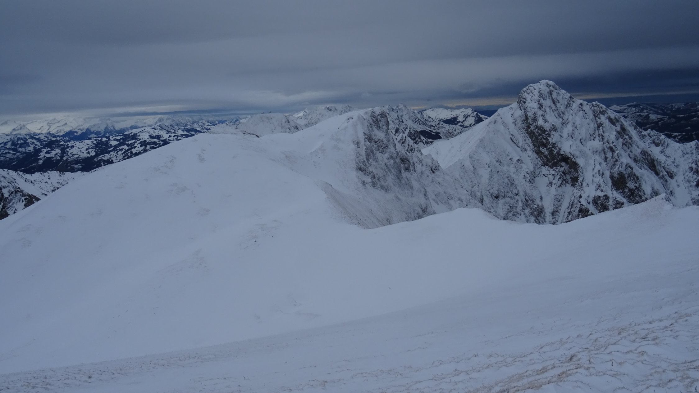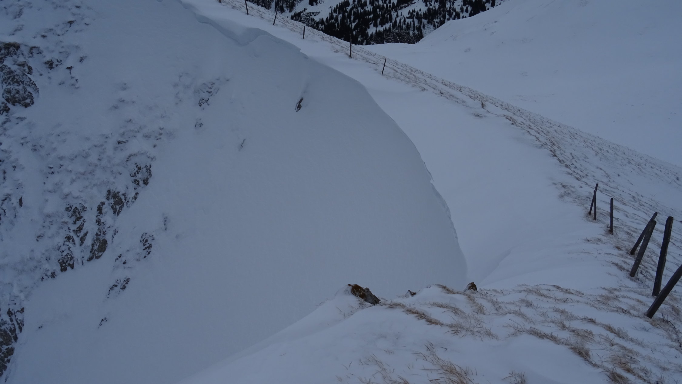 Die Schneedecke ist bis 1800m völlig nass darüber tragend Pulver hart