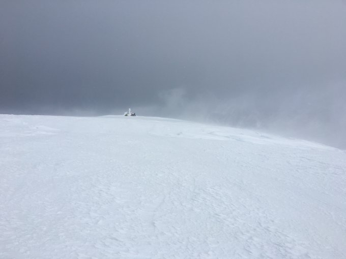 Es ist genügend Schnee vorhanden. Verspurt und leichter Bruchharsch. Starker Wind im oberen Bereich. Der Gipfelhang war pistenähnlich. Bei Abfahrt leider keine Sicht und Schneefall.