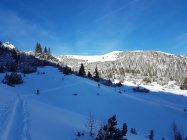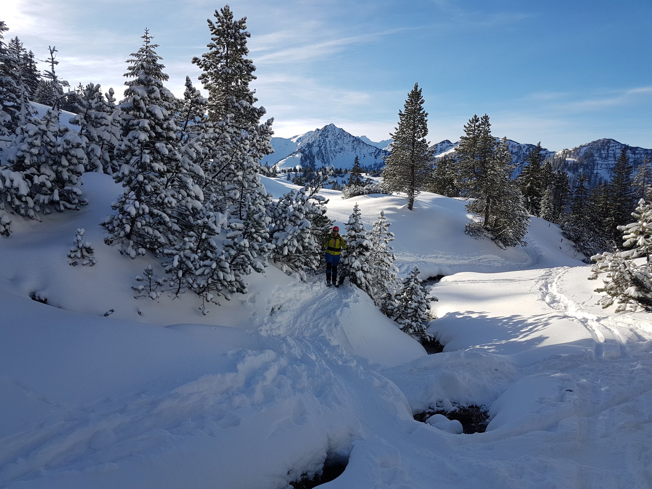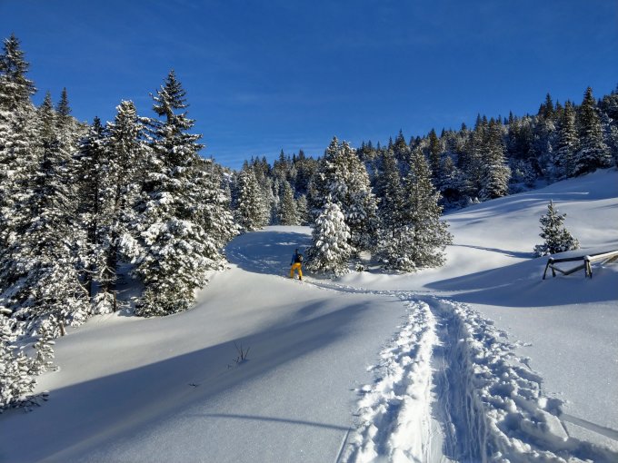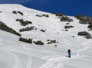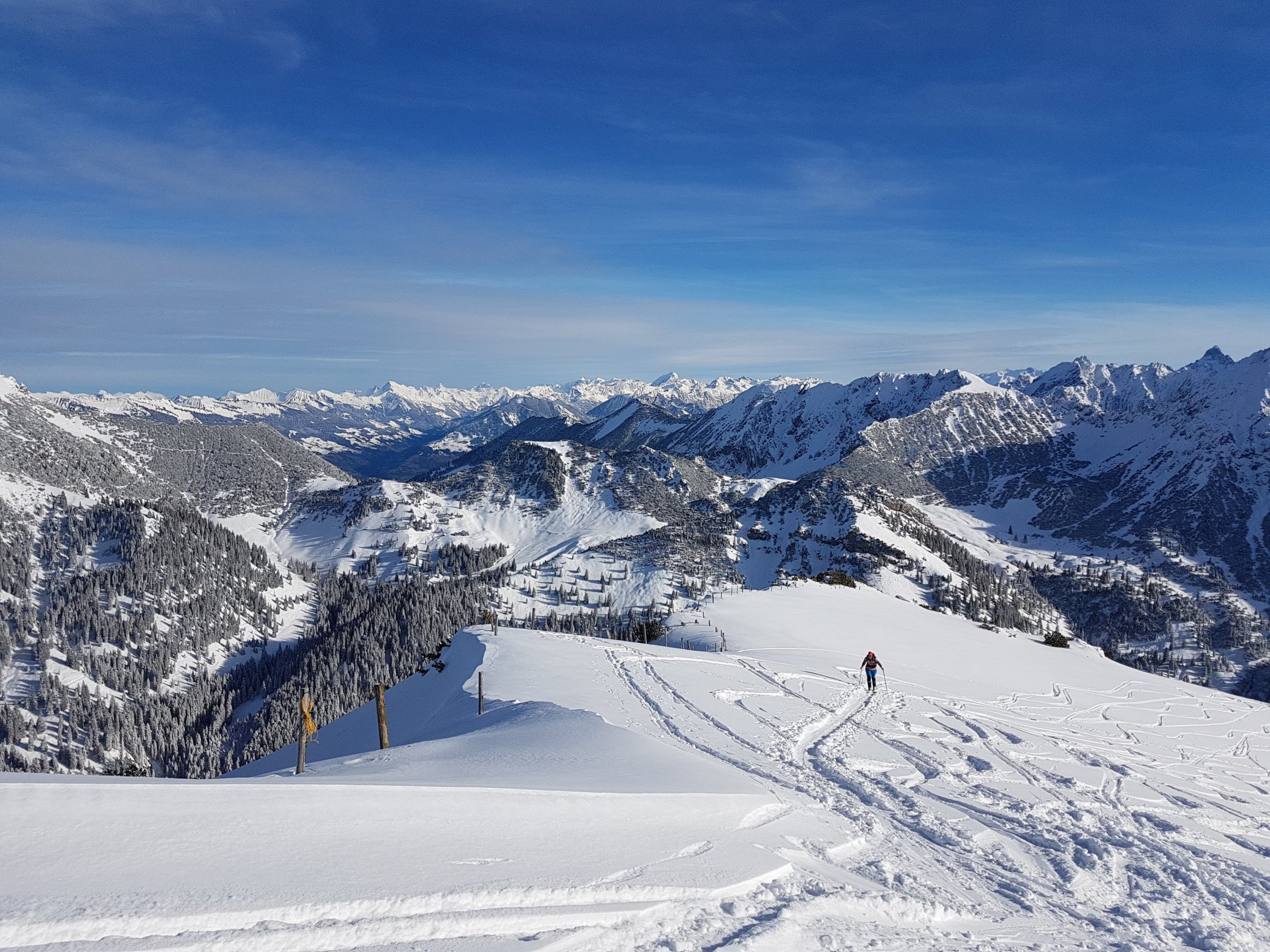 Ab Malbun Skilift ein Stück auf dem Winterwanderweg, danach auf einer bereits gespurten Autobahn übers Sassförkle, zügige Traverse an der Nordseite des Stachlerkopfes und hoch zum Schönberg.