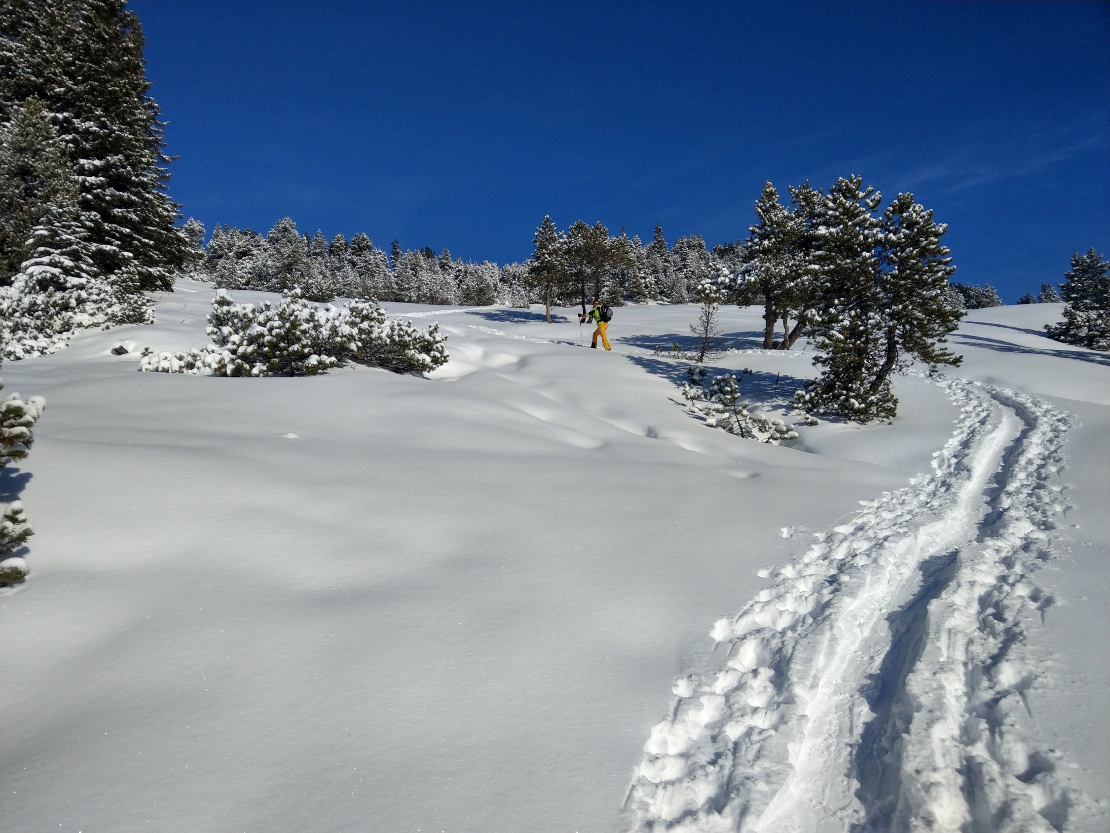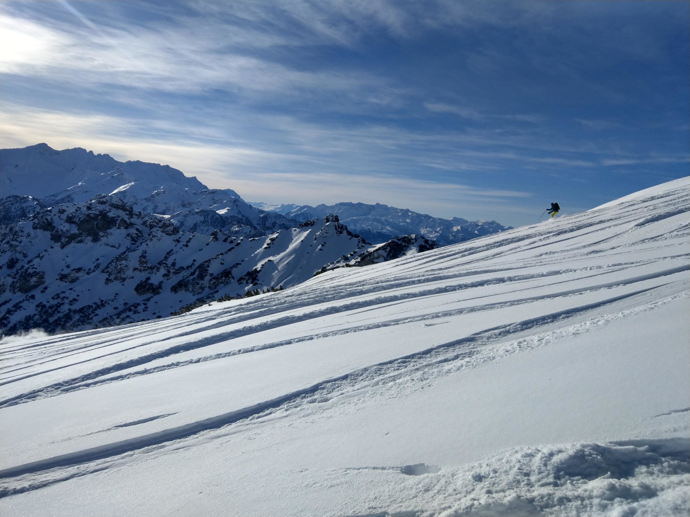 Überall wunderschöner Pulverschnee auf guter Unterlage, sehr schöne Abfahrt.