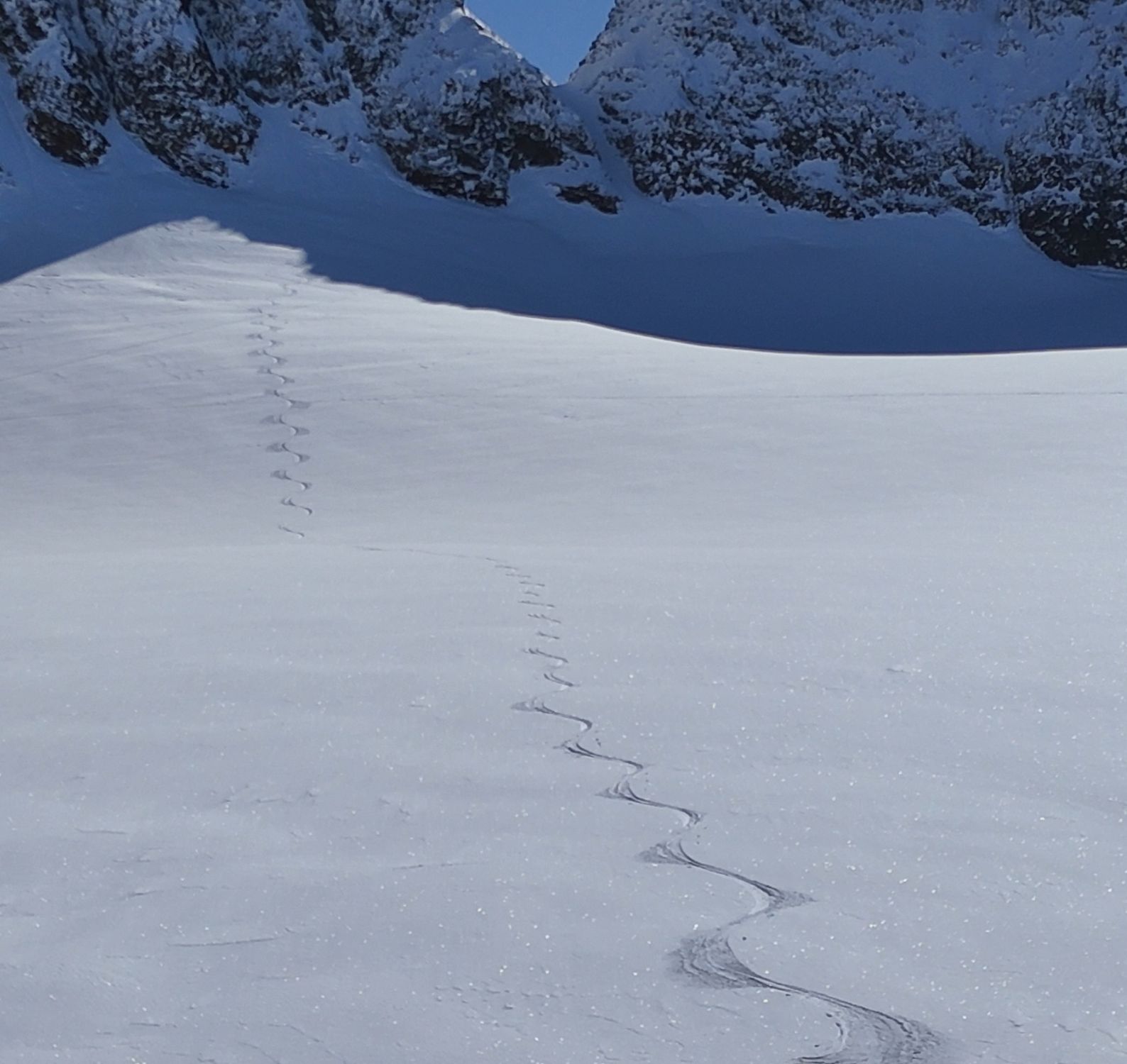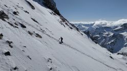 Am Silvrettastausee vorbei Richtung Wiesbadener Hütte und mit einer sehr guten Aufstiegsspur zur Buinlücke-Skidepot. Mit Steigeisen und einer sehr guten Stapfspur hoch zum Gipfel.