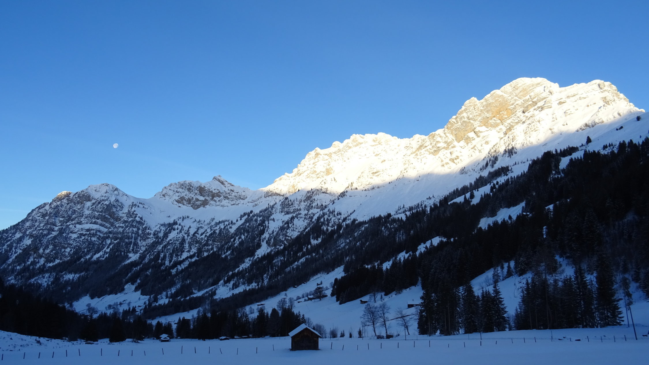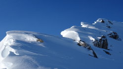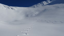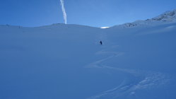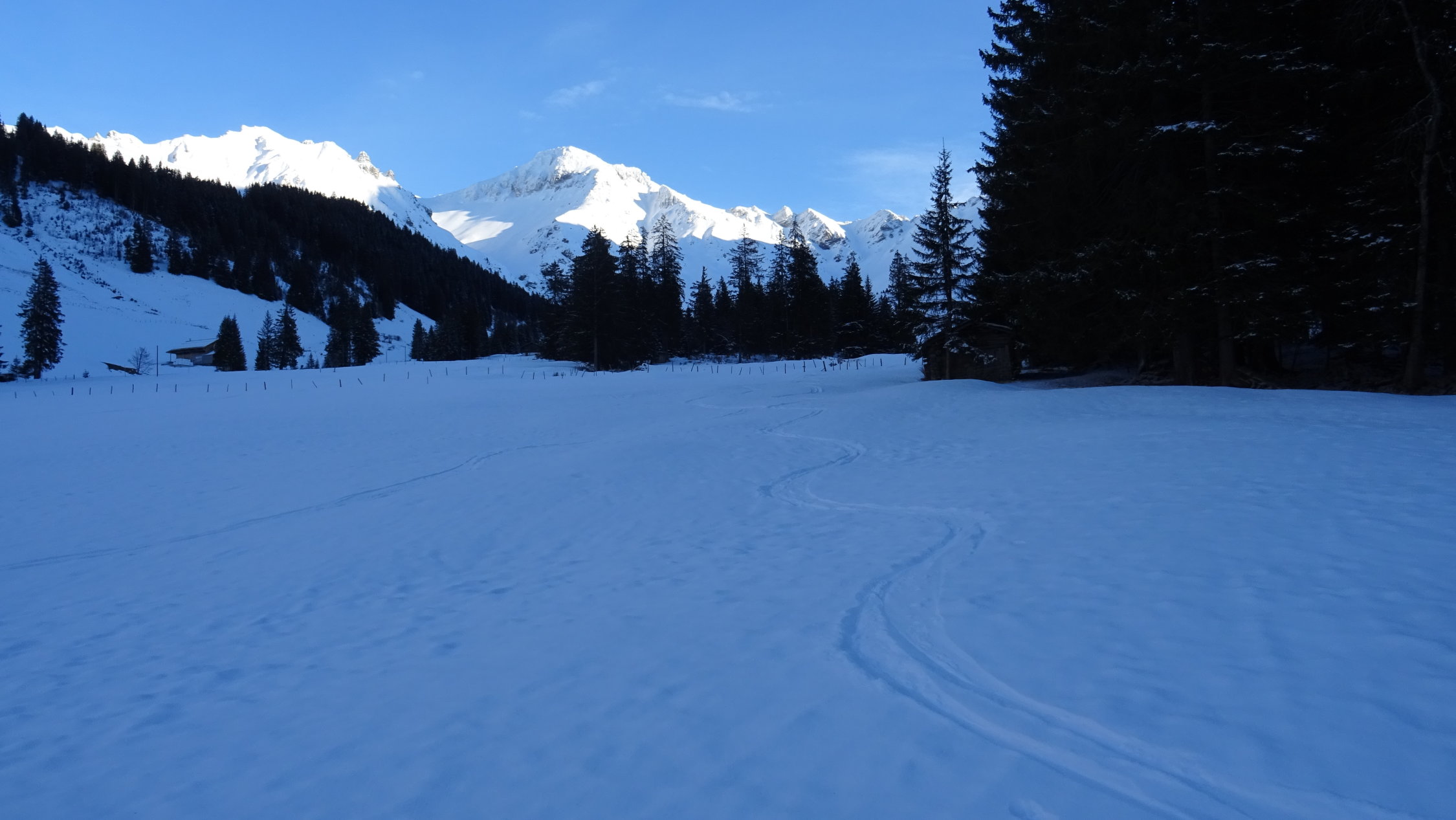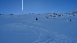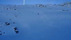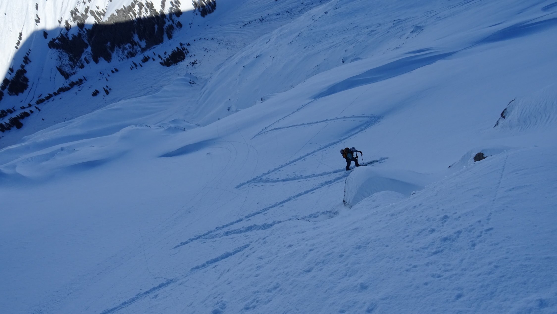 Wir sind heute von Gruebe 1485m gestartet und die Schneedecke war durchgehend tragend mit 5-15cm Pulverschneeauflage.