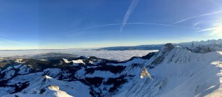 Nordwand hatte eine Abfahrtsspur drin, jedoch nur mit Steinskis zu empfehlen. Es benötigt eine neue Ladung. Bis dahin wird sich der Abfahrtsgenuss in Grenzen halten. Dafür bleibt mehr Zeit um die Sonne und Landschaft zu geniessen!