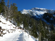 Start in Malbun um ca.7.15, noch in der Morgendämmerung. Der Winterwanderweg zum Sassförkle ist präpariert.