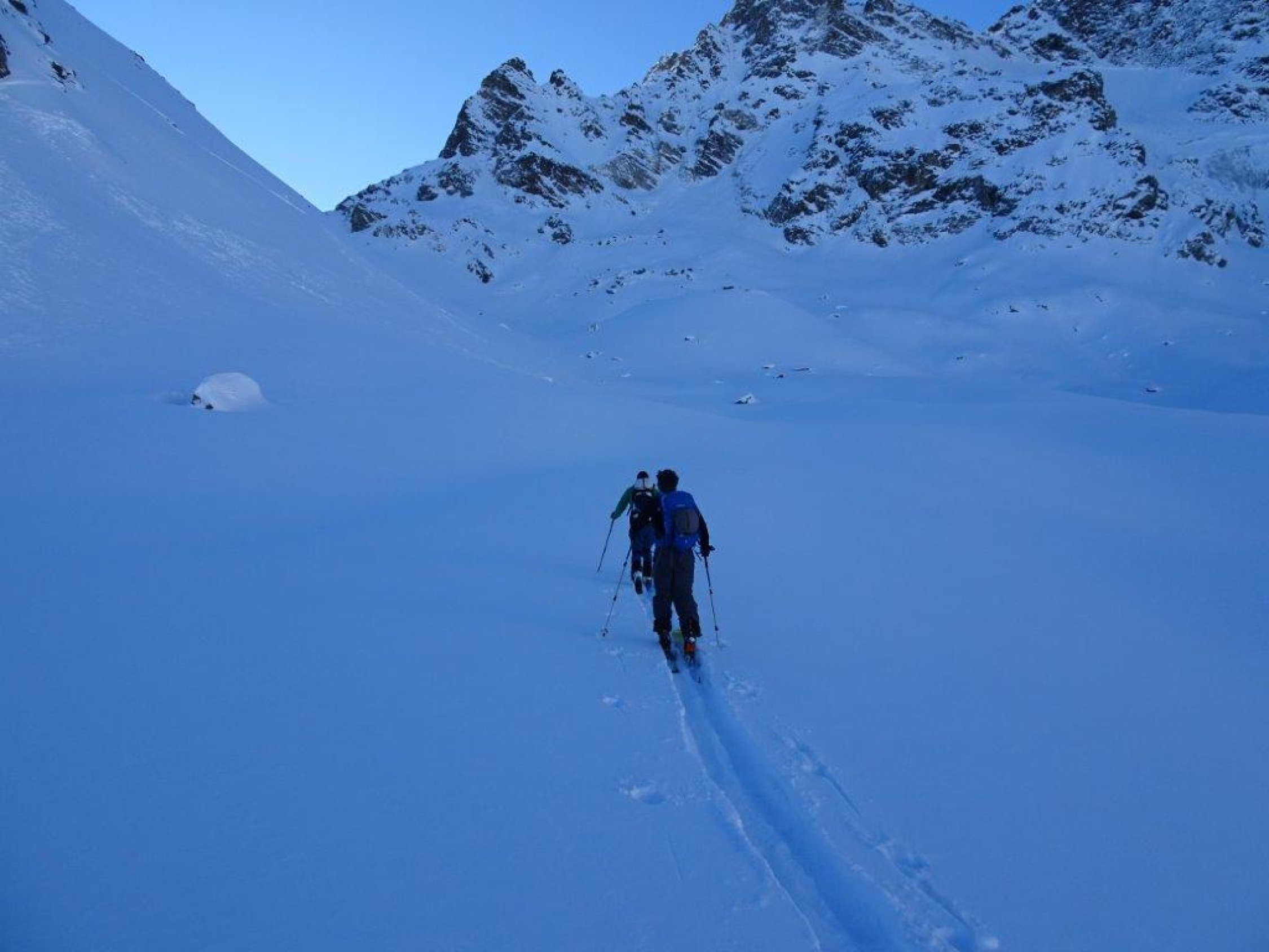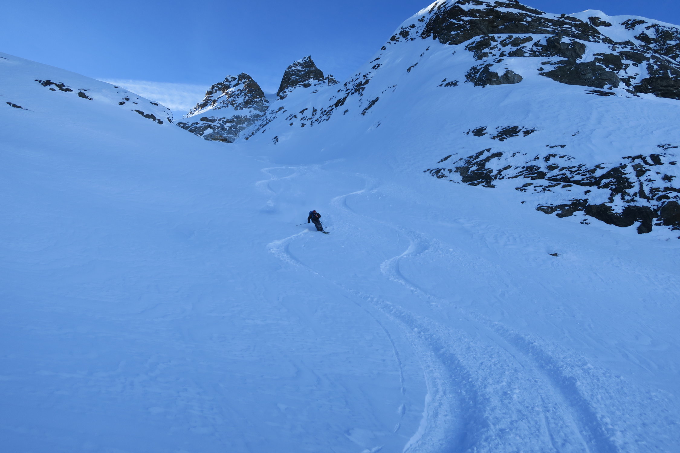 - mehrere ganz kleine spontane Schneebrettabgänge zu erkennen.