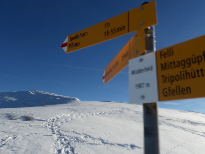 Fahrt mit dem Auto bis oberhalb Lütoldsmatt. Danach zu Fuss bis Märenschlag. Ab dort mit den Schneeschuhen bis aufs Widderfeld.