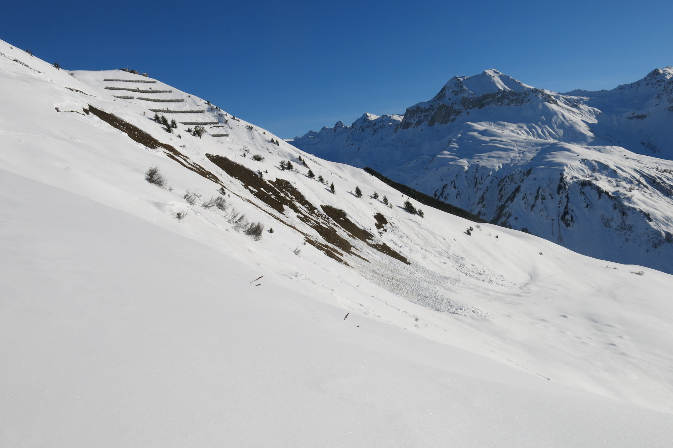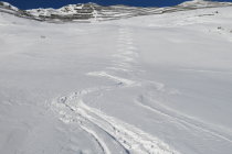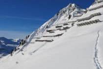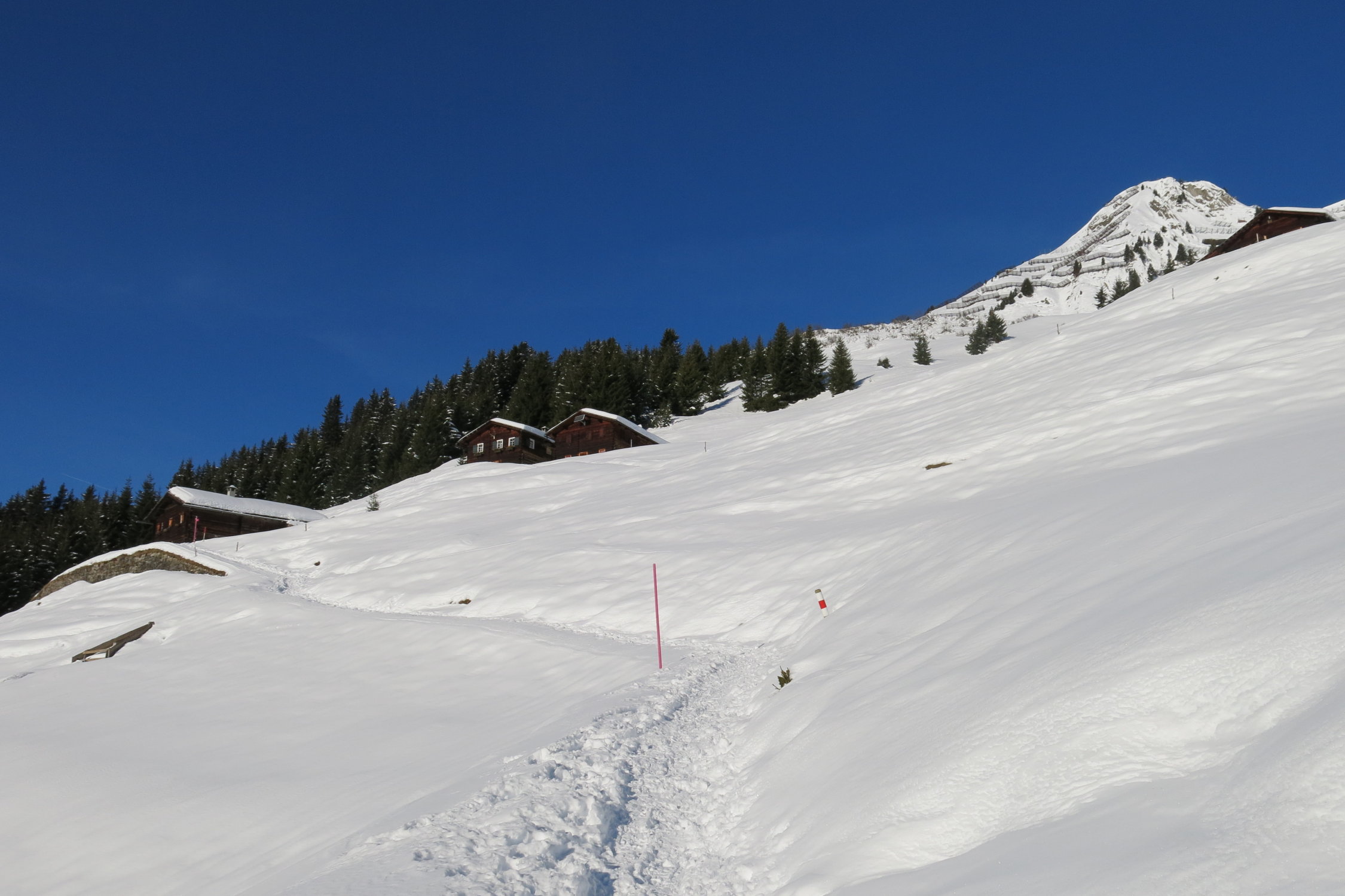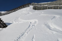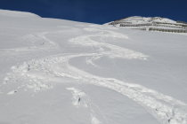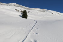 Ausgetretene Schneeschuh-Aufstiegsspur bis Pt. 1956. Danach eine teils verblasene Ski-Aufstiegsspur bis zum Chüenihorn. Eine Dreiergruppe folgte relativ spät ebenfalls dieser Spur und sie sollte nun soweit "ausgebaut" sein! Die Abfahrt erfolgte vom "Horn" um ca. 12:30 Uhr einer alten Spur zwischen den Lawinenverbauungen durch auf die Strasse und (nicht zum Bärgli)dann weiter zu Pt. 1956. Bis hierhin tolle Frühlingsverhältnisse aufgeweichter Schnee auf guter tragfähiger Unterlage!!!