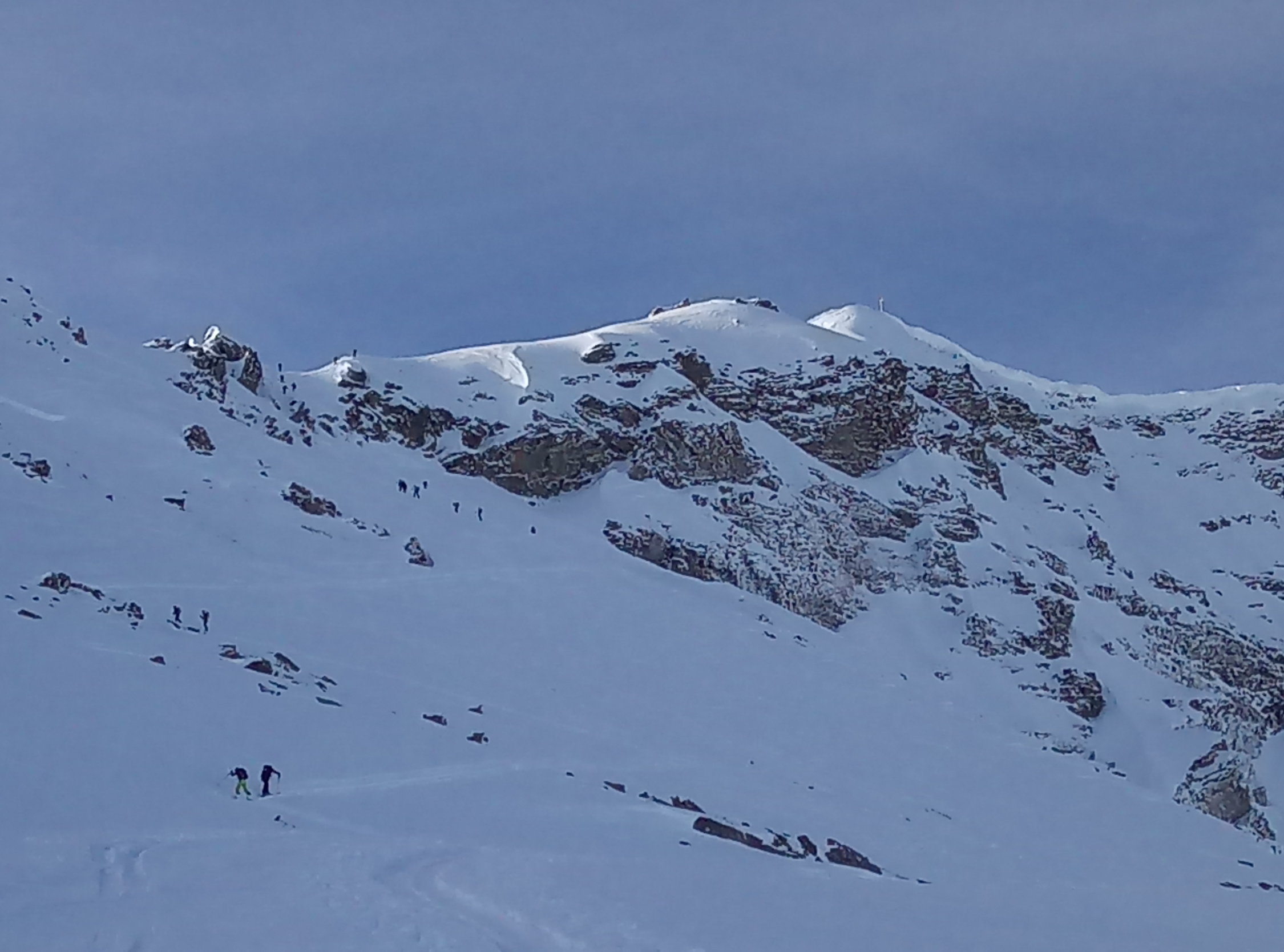 Die Schlüsselstelle wurde heute sowohl zu Fuss aber auch mit Skis im Aufstieg gemacht.