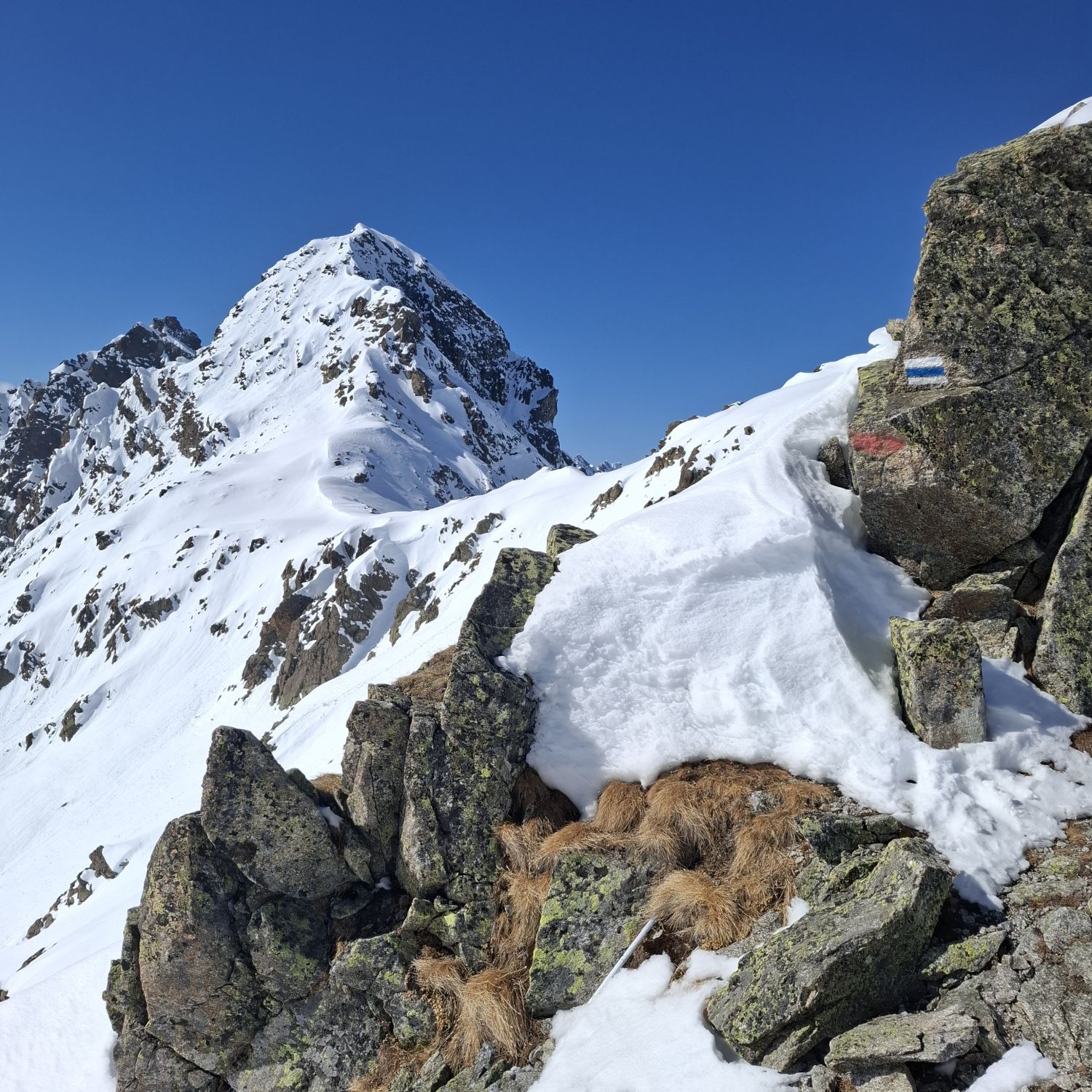 Beim Aufschwung zur Seelücke kann man weit rechts gehen - man kommt hier zum Zollhüttle und muss kurz über den schmalen "Grat" oder die Spur links dann spart man sich den Grat.