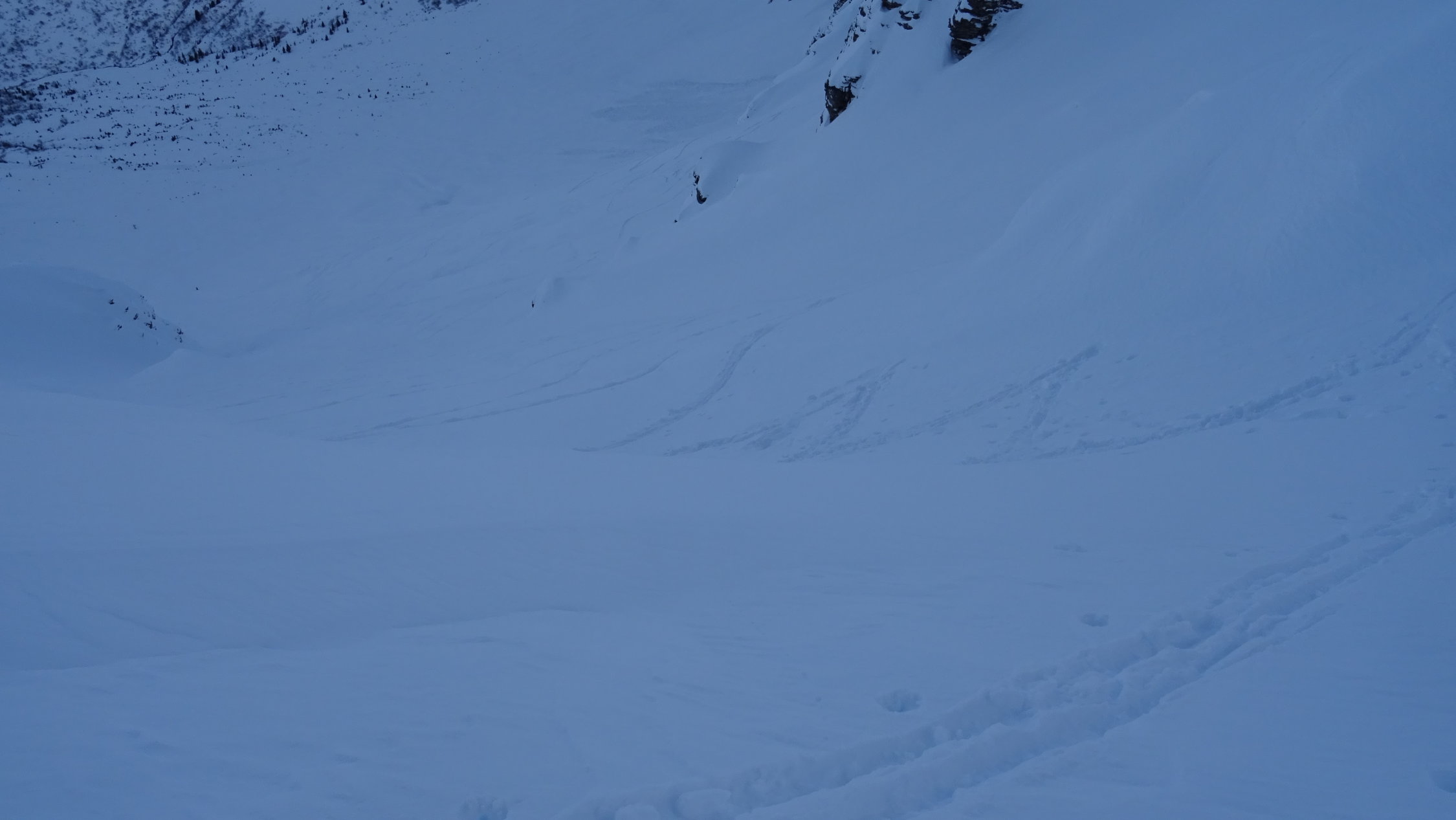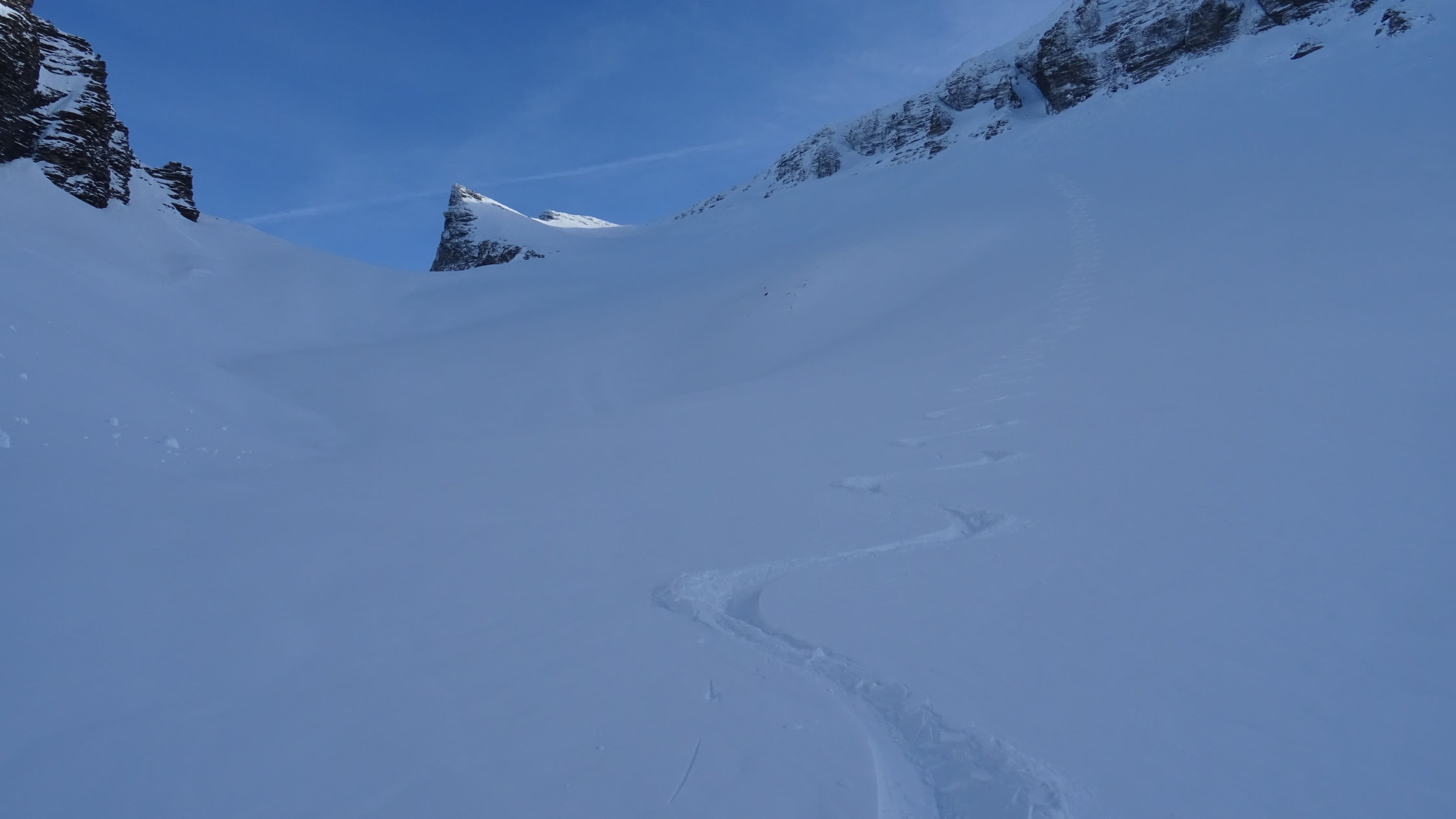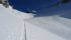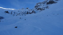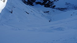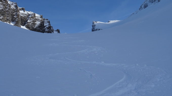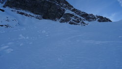 der Ausstieg Wächte war heute schwierig ich musste für 5 Meter die Ski kurz Abschnallen aber es ging problemlos ohne Steigeisen