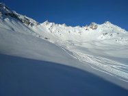 Im Vergleich zum Vortag (siehe Eintrag 98709) war gestern deutlich mehr Betrieb im Vergaldatal. Somit ist am Wormakopf mittlerweile auch alles ziemlich verspurt. Allerdings sind sämtliche anderen Tourengeher nur der Spur auf den Wormakopf gefolgt, ich bin anschließend noch auf den Schneeberg. Dort war wider Erwarten gar nichts los und ich fand noch Traumhänge in der "N-Direttissima" bis zur Rossberghütte vor. Keine Wummgeräusche wahrgenommen trotz teils ordentlicher Triebschneeablagerungen.
