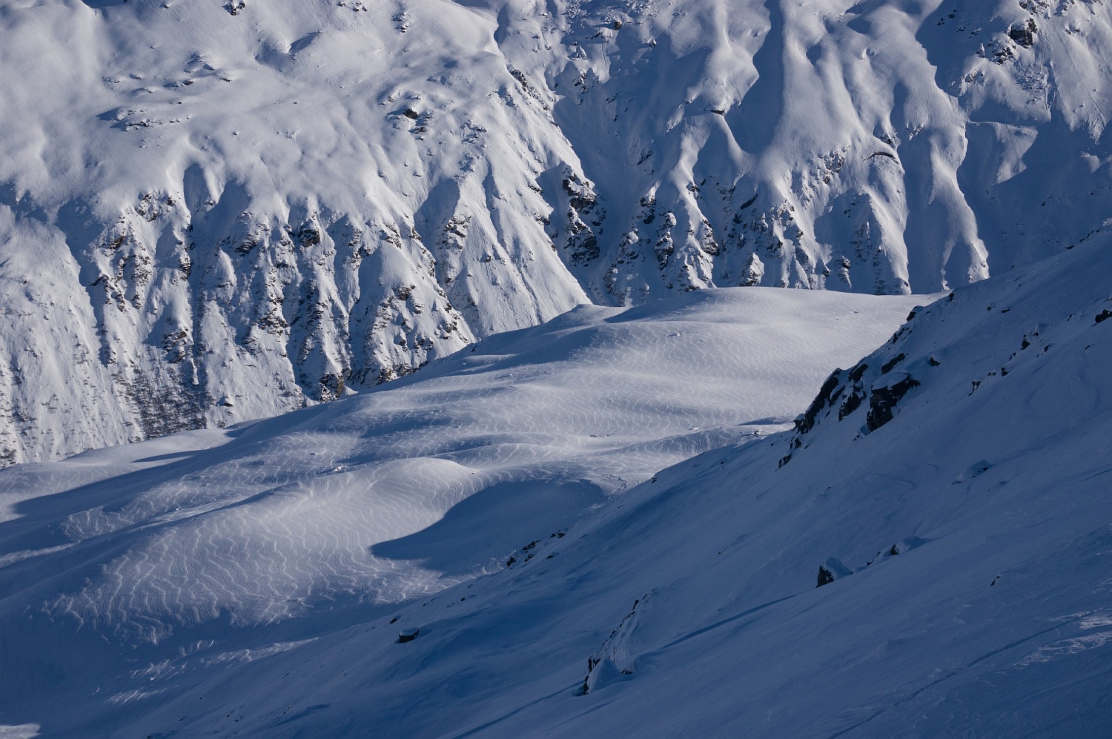 Ganz vereinzelte Gleitschneeabrutsche auf der anderen Talseite