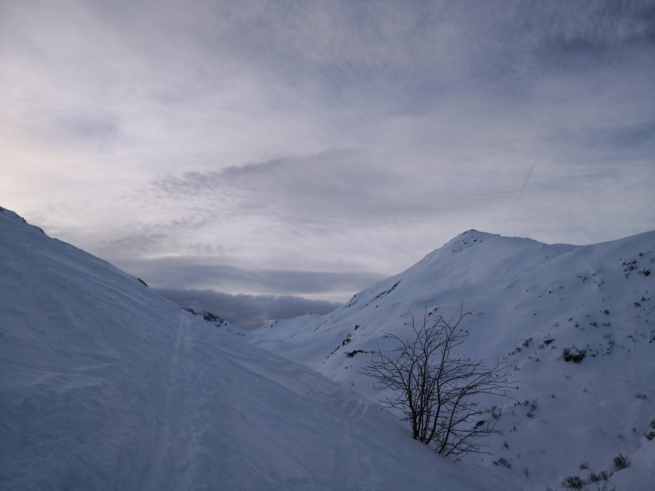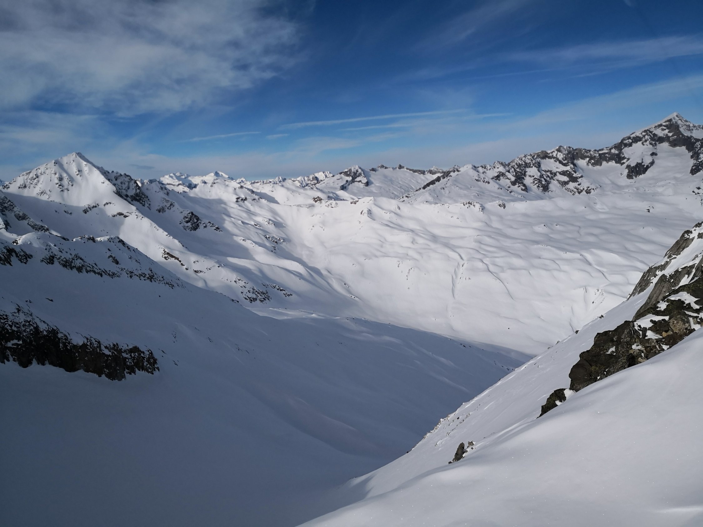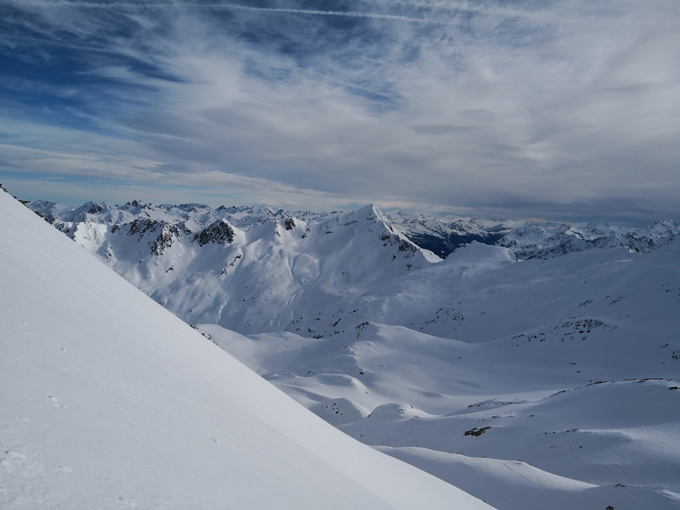 Schnee hats genug ab ca. 2000m, darunter der Strasse entlang wenig Schnee aber ausreichend um bis zum Depot fahren zu können. Recht wenig Leute unterwegs..Richtung Leckipass- Gr.Leckihorn max. 10P. Rottällihorn mit mit insgesamt nur 4P. Das wird morgen Sa sicher anders aussehen...