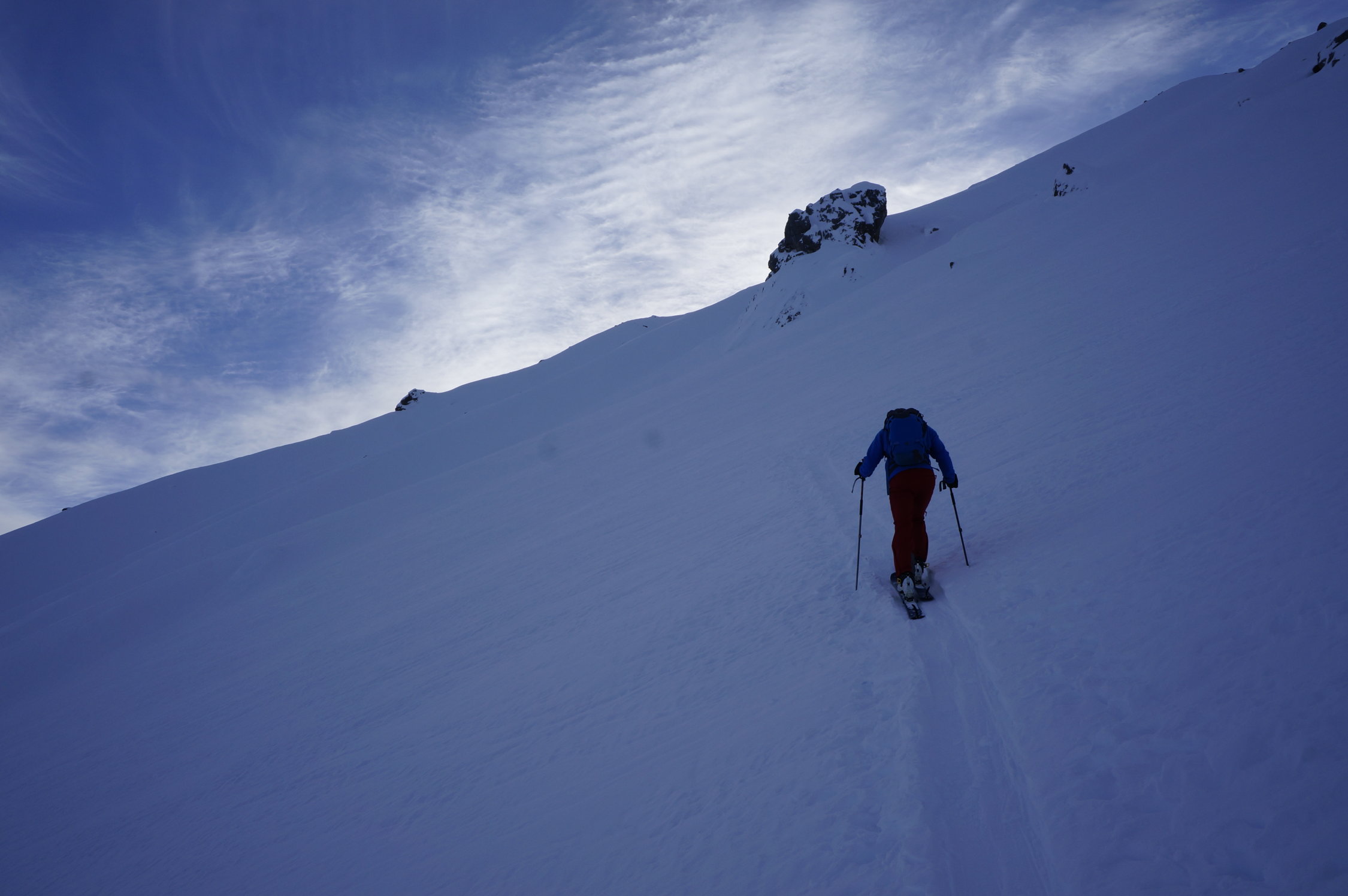 Aufstieg super bis Frühstücksplatz. Der Frühstücksplatz ist in hervorragendem Zustand, im Vergleich zu letztem Jahr um Weihnachten. Bis in die Ebene hoch sind Harscheissen zu empfehlen, ohne war es etwas mühsam, da es im steilen Teil sehr hart war. Bis zum Gipfel dann wieder gute Verhältnisse.