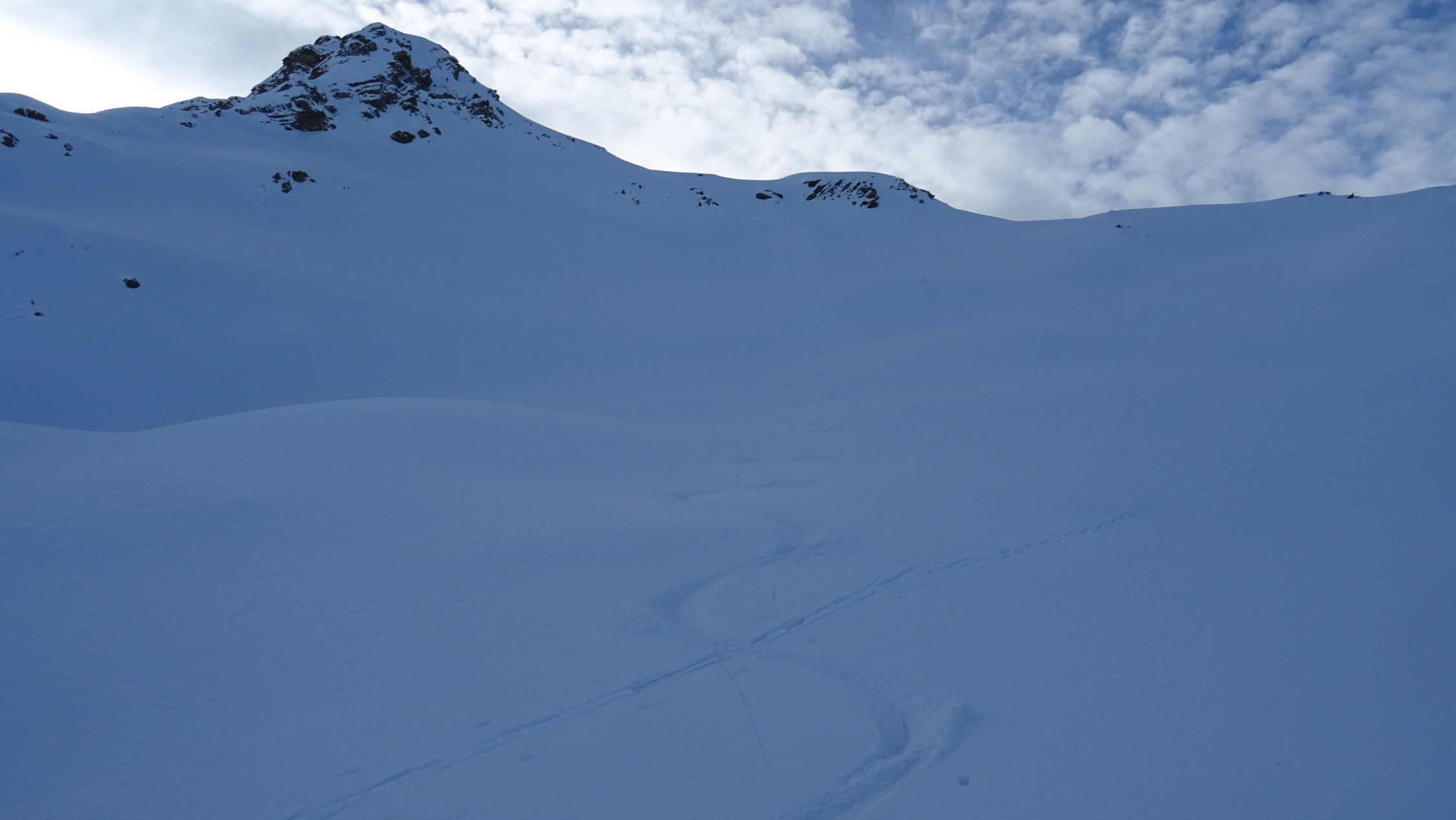 Ob ihrs glaubt oder nicht hab ich in diesem Bereich in der Abfahrt keinen einzigen Stein erwischt da ich mehr oder weniger meiner aufstiegspur entlang gefahren bin.