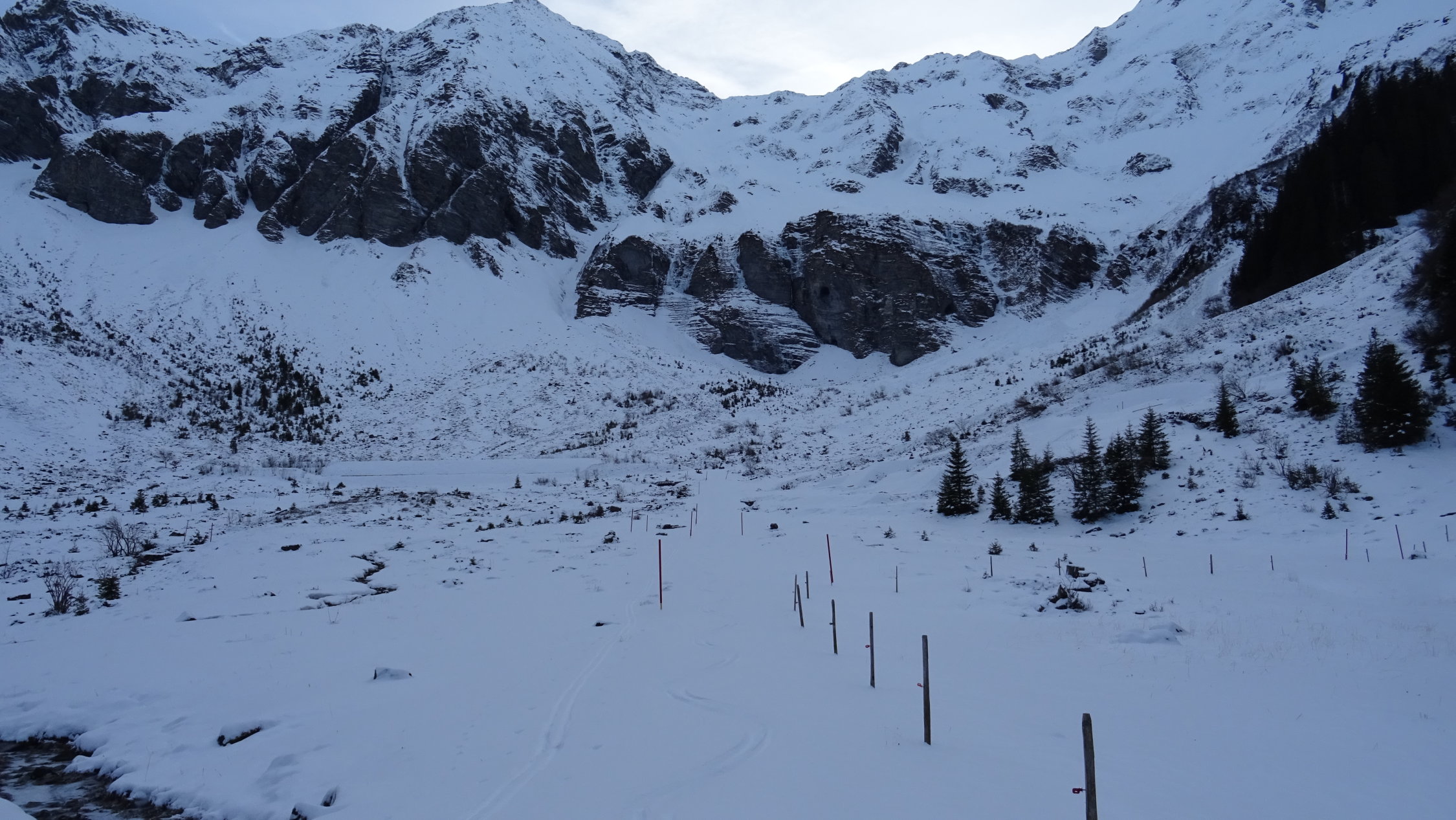 Es müssen im Aufstieg sowie in der Abfahrt ein paar Lawinenkegel gequert werden was aber kein problem ist.