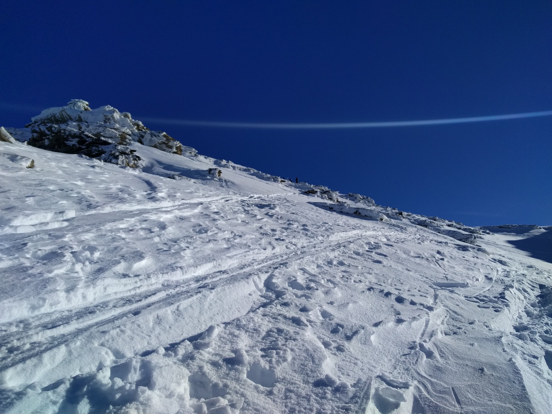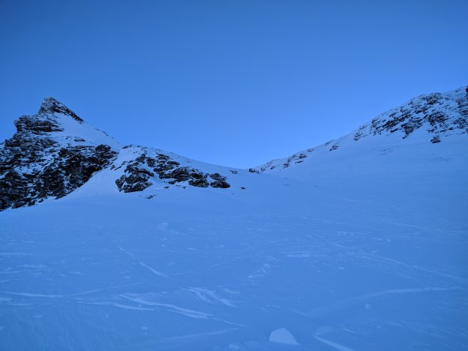 Vom Gipfel bin ich bis 2100 im Rüegge Tälti a gefahren, dann wieder aufgestiegen bis kurz vor dem Gipfel. Die ganze Abfahrt gelang dann ohne Steinkontakt.