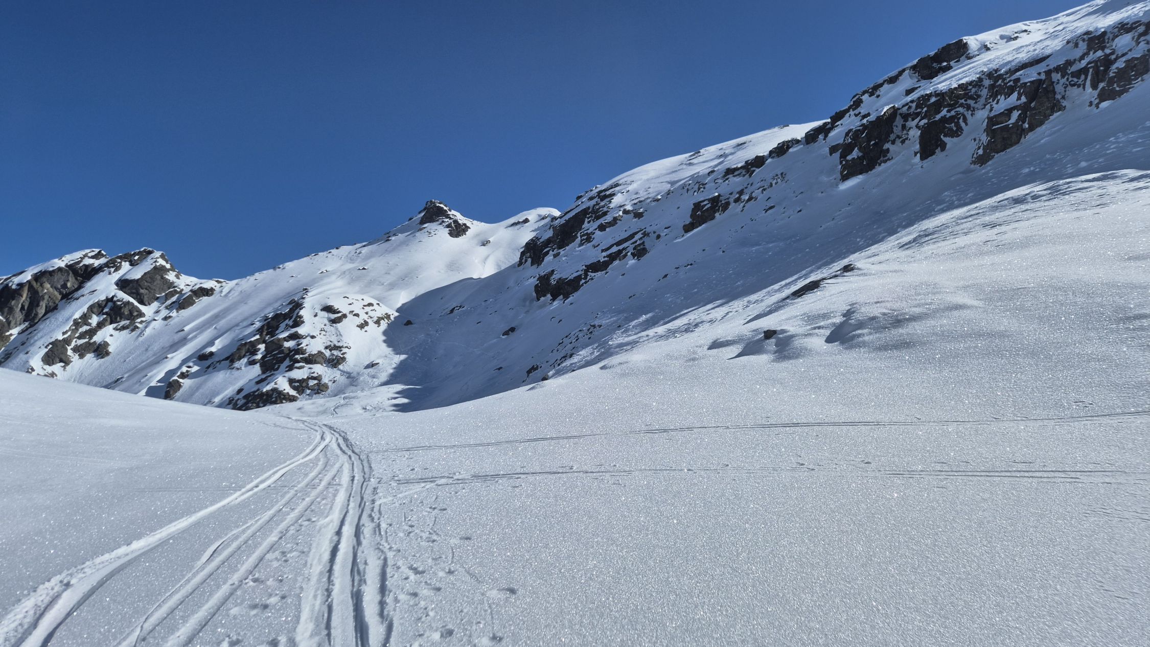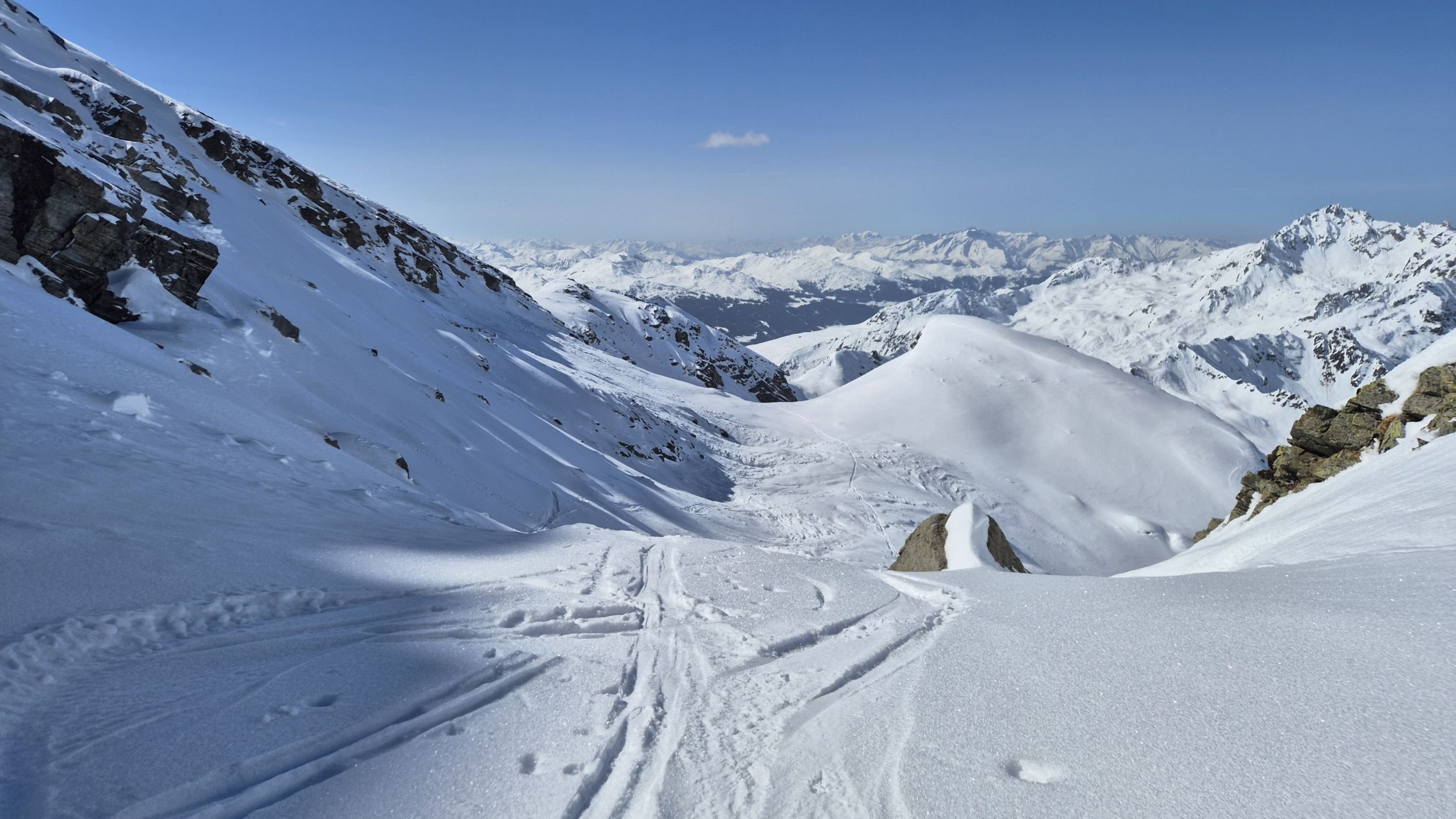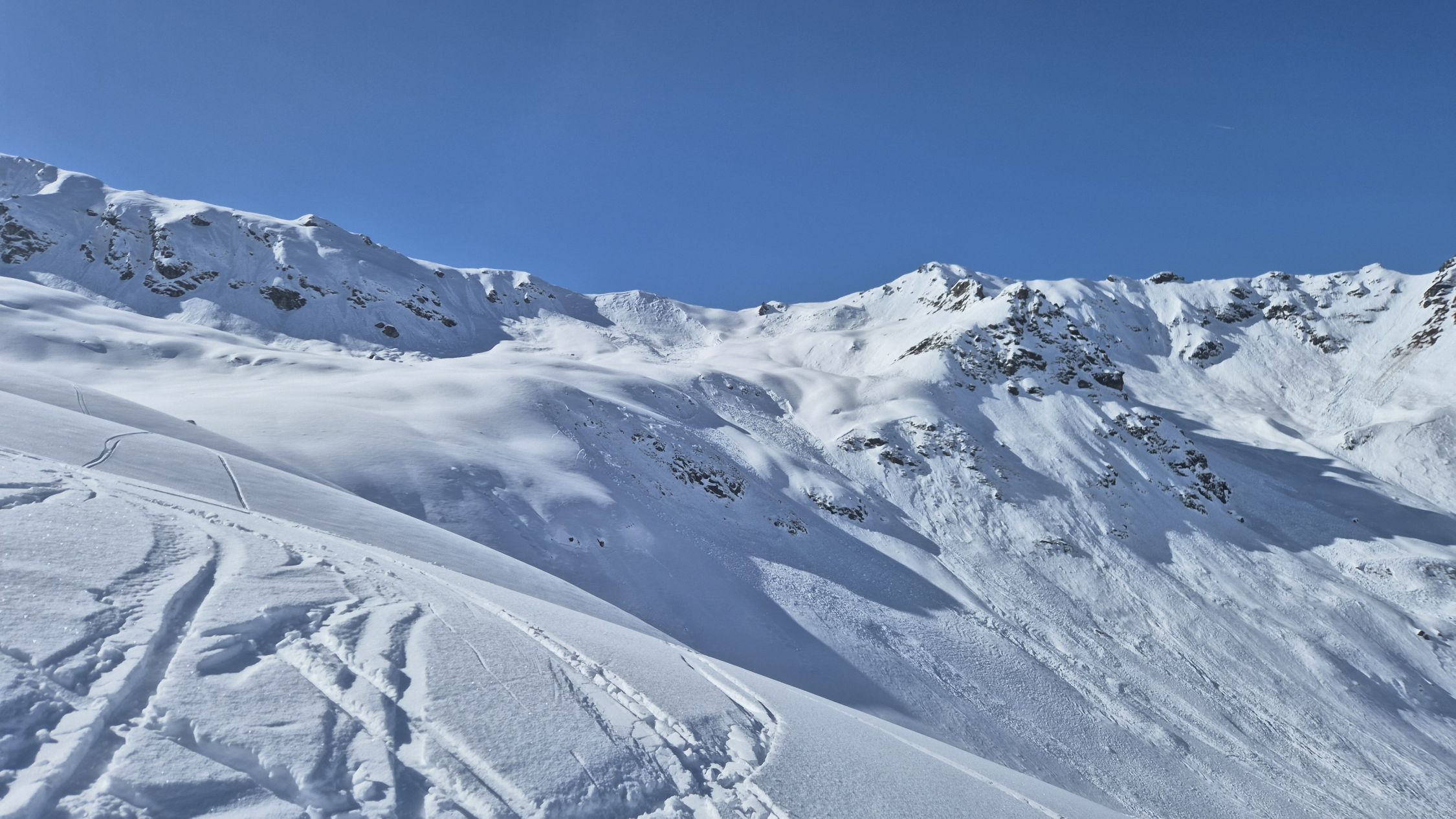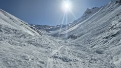 Viel lawinenschnee liegt herum. Der valzifenz wurde noch nicht gemacht, da ist fast der ganze Hang herunter.