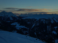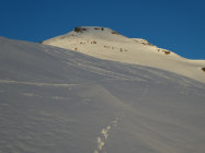 Habe auf der Abfahrt vom Leiterfuss weg die Variantenabfahrt über den Osthang gewählt (nur bei sicheren Verhältnissen!). Der Schnee war vom Gipfel bis zum Leiterkopf ganz oben kurz Powder, dann eher Presspulver mit Ganglien, aber alles gut fahrbar. Weiter unten dann zum Teil eher schwerer Pulver.