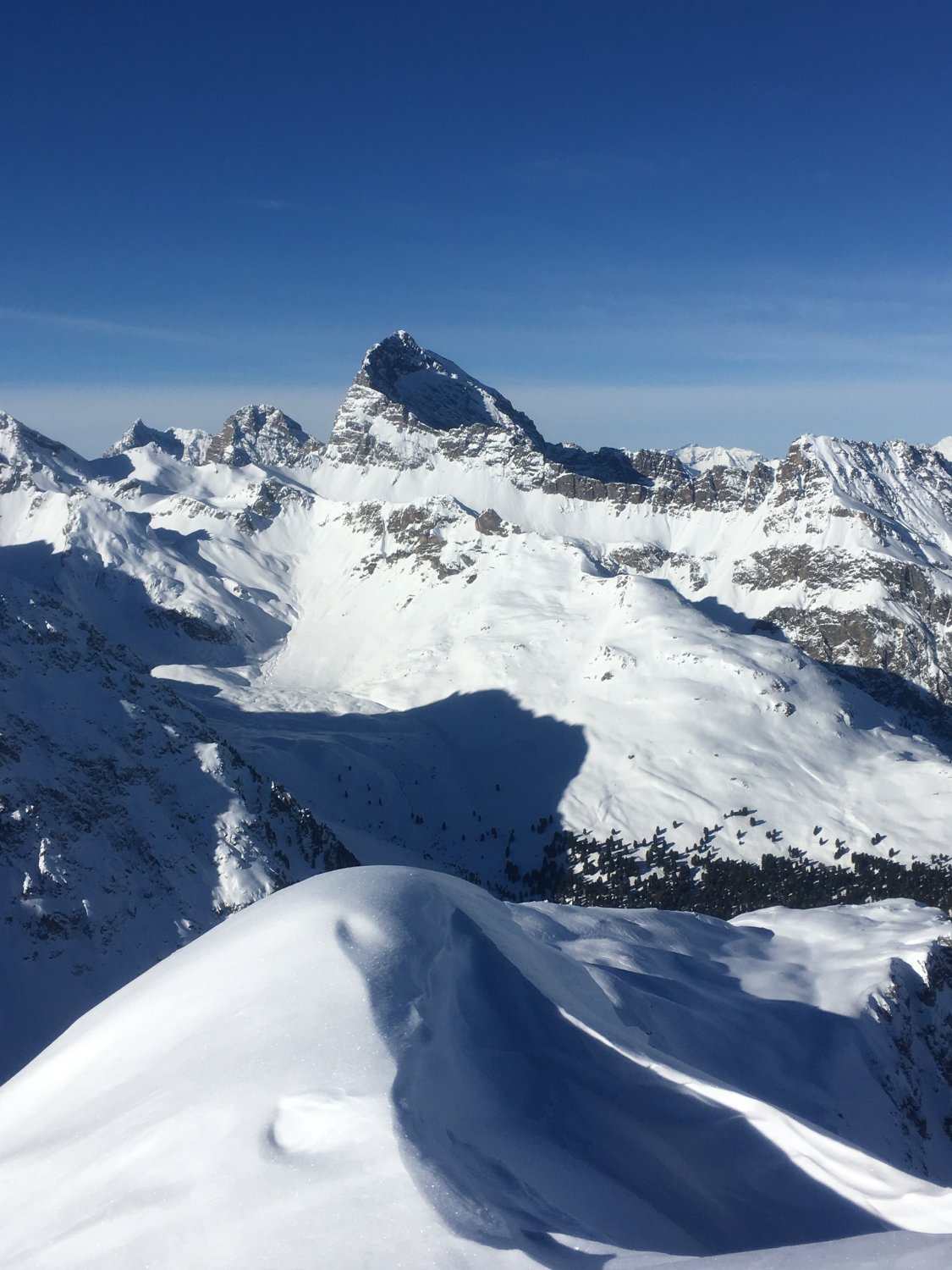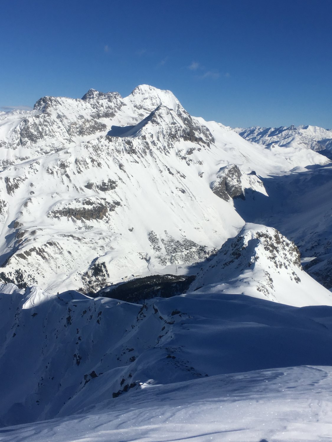 Start Hotel Preda Kulm 08.30, minus 10 Grad, etwas Nordwind. Bis Palpognasee Schneeschuhspur, nachher gute Spur bis Gipfel, es warewn gestern zwei Tourengänger auf dem Gipfel. Leider erst auf dem schönen Gipfel Sonne, dafür toller Schnee in der Abfahrt. Im oberen Teil hie und da etwas vom Wind bearbeitet. Perfektes Skitourengelände, richtige Hammertour mit interessantem Rundblick.